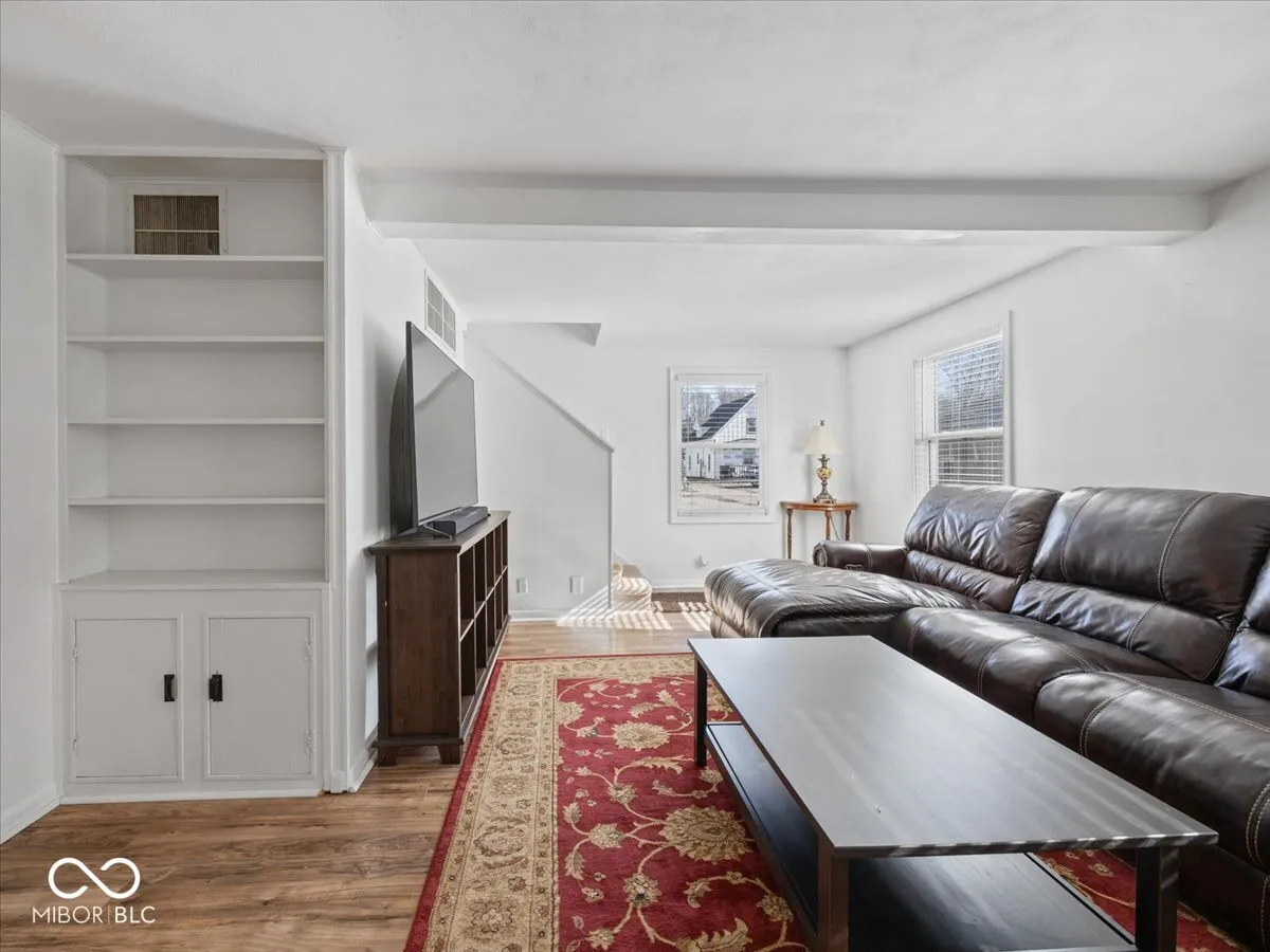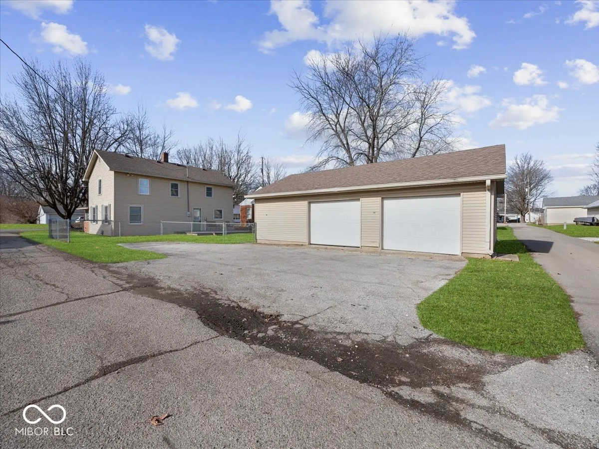 Charming two story home with spacious yard & workshop garage. Welcome to this quaint 3 bedroom , 1 full bath home with kitchen featuring all stainless steel appliances, dining room & large family room space for you to entertain. Two additional rooms can be finished up with your touches anyway you want . All flooring on main level is vinyl hardwood. Outside you will find a fully fenced backyard, ideal for pets, play or private outdoor gatherings. An additional feature of the home is the oversized 2+ car garage, complete with a workshop space, concrete floors & attic access for additional storage. An extra parking space along the fence and alley access from 2 sides. This home is located on a quiet street in Knightstown & has nearby amenities. Downtown Knightstown has boutiques, restaurants, antique shops, festivals & a canoe launch. Home is being Sold As-Is & looking for new owners- Book your showing today.