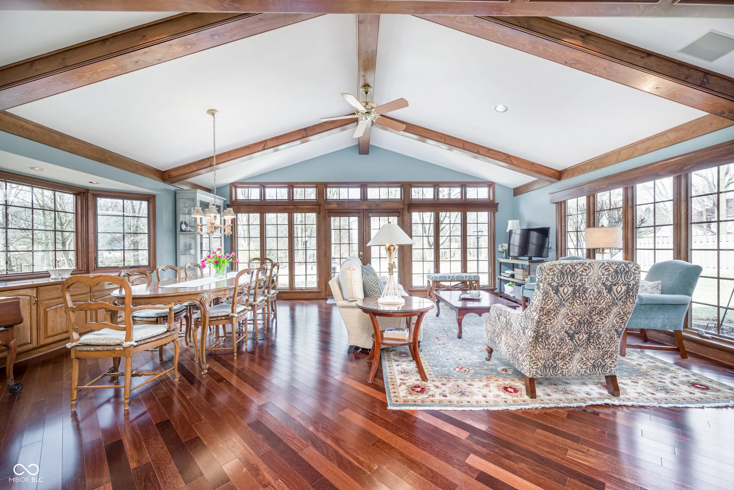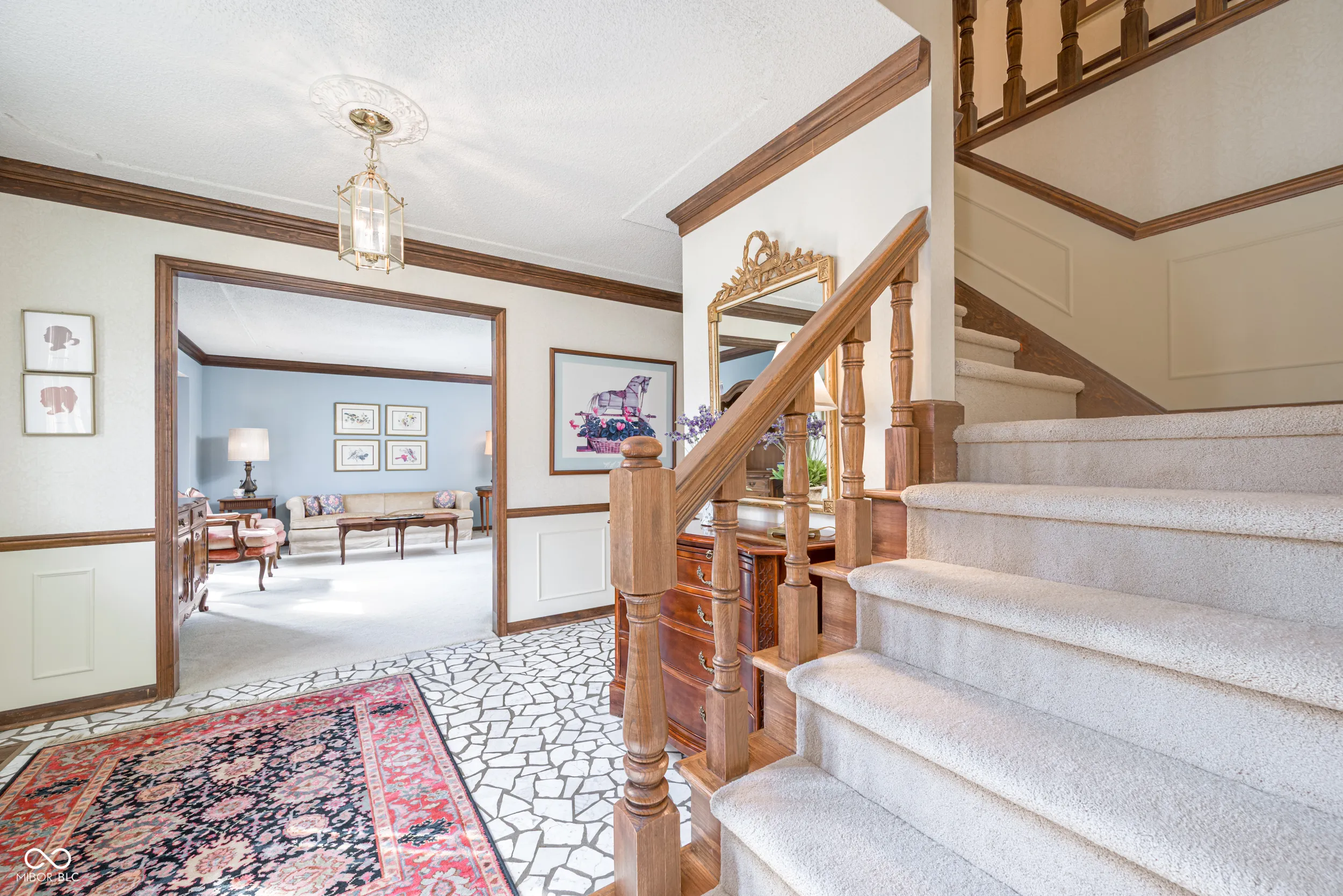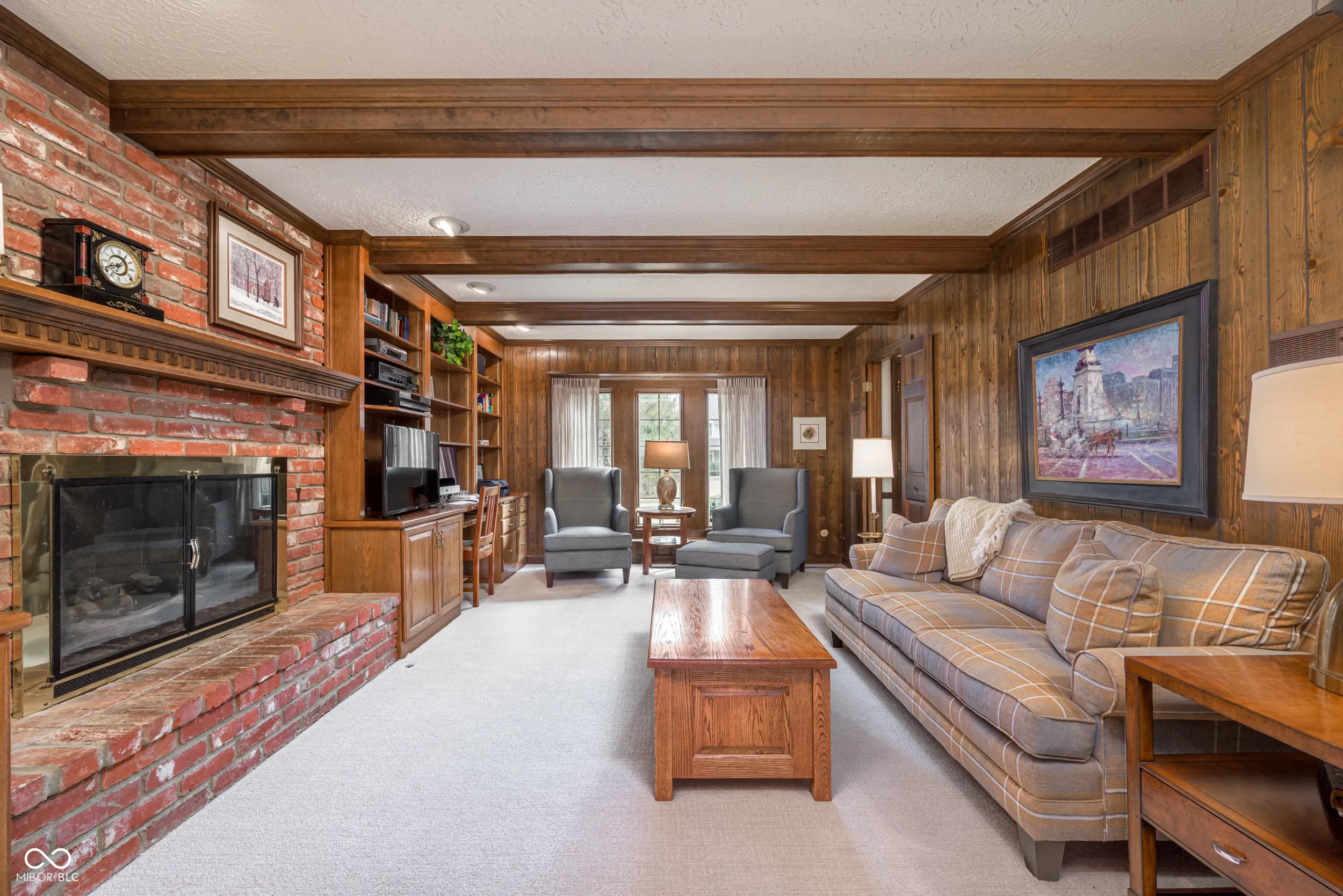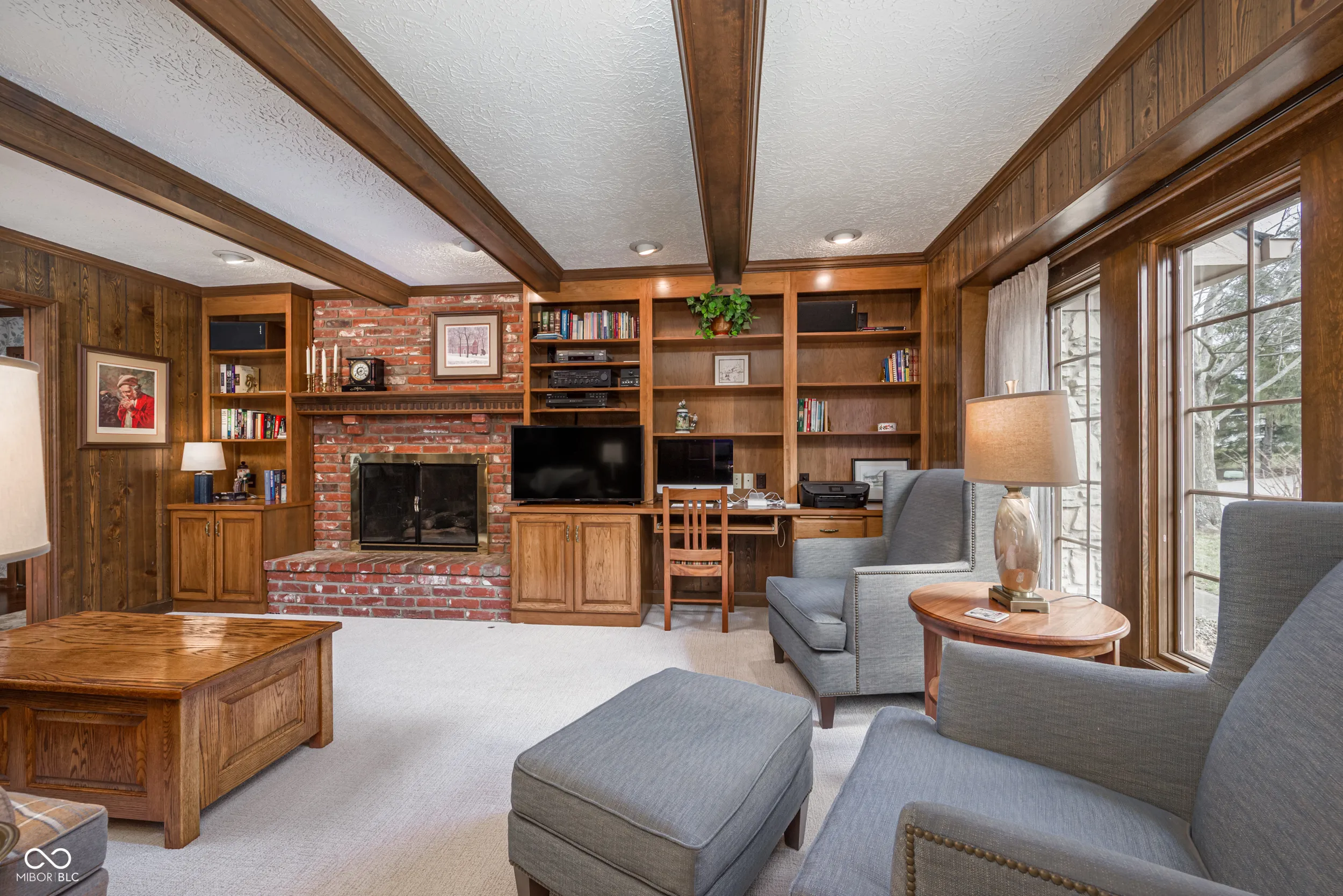 If a house filled with charm makes the best setting for a lifetime of memories, this 4 bedroom home in Zionsville’s Sugarbush Hill neighborhood is where your next chapter begins. Relish the rich, dark wood accents, wainscoting, chair rails — the architectural attention to detail has been lovingly preserved in time. The kitchen boasts plenty of cabinet and pantry space, double ovens and an elongated center island with electric cooktop and room for seating. The library/den is the perfect, cozy retreat with its gas fireplace, wood paneling and built-in bookshelves. The great room is a showstopper with its exposed beam vaulted ceilings, hardwood floors, floor to ceiling windows with views of the backyard, and built-in buffet cabinet. The adjacent wet bar provides added convenience for large gatherings of family and friends. Upstairs, the spacious primary bedroom soars to new heights with its own vaulted ceiling, walk-in closet, and ensuite bath. Three additional good-sized bedrooms share the full, hall bathroom along with NEW carpet throughout the 2nd floor. A finished basement with half bathroom is waiting to host movie & family game nights while providing added storage space. Above the garage, you’ll find a 15×15 functional unfinished attic, ready to be transformed into a personalized space. The backyard patio is embraced between areas of thoughtful landscaping and is illuminated by post lights; while mature trees provide shade and a sense of privacy. Enjoy direct neighborhood access to Starkey Park and Trails and close proximity to the Zionsville Village.