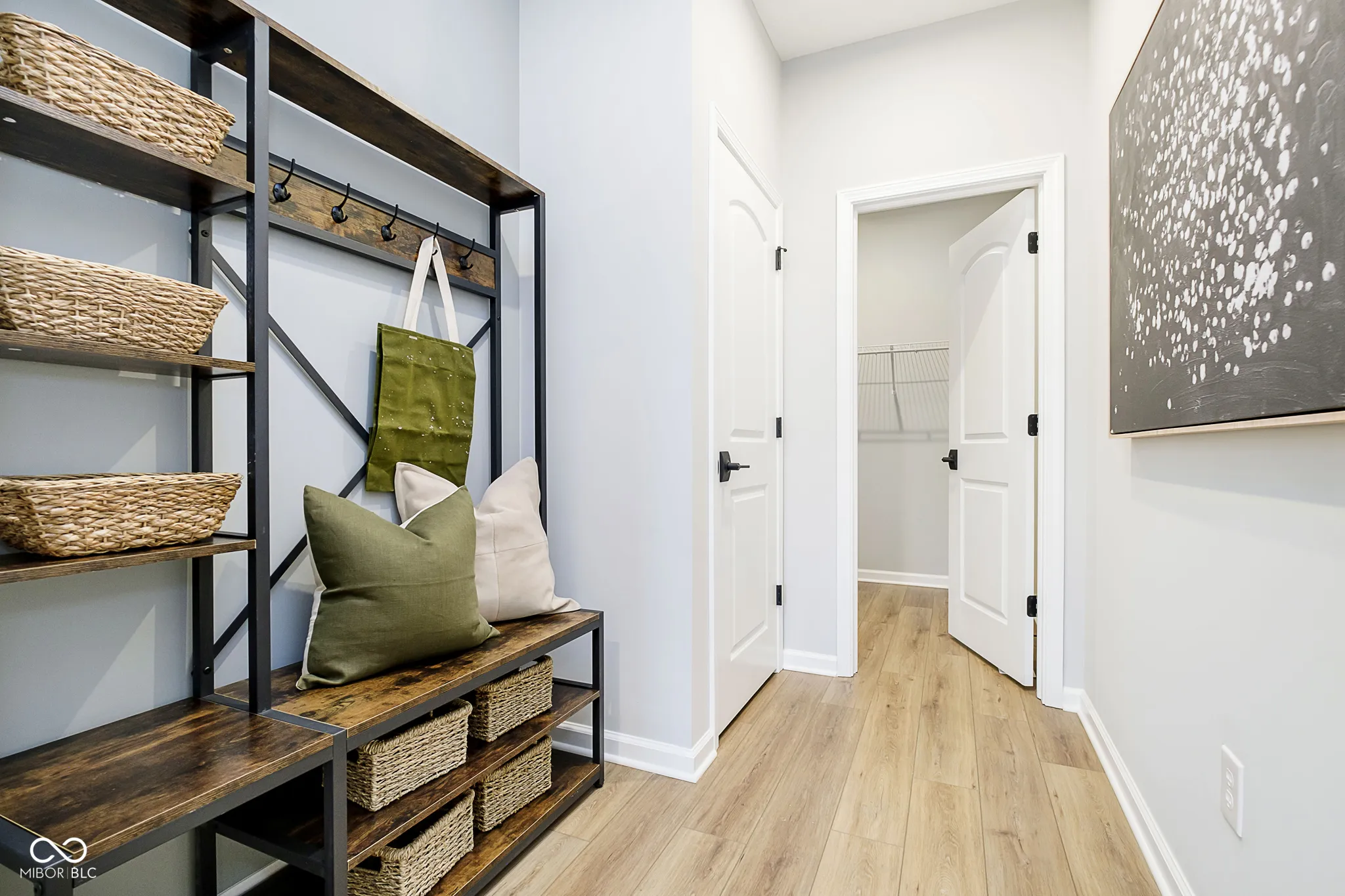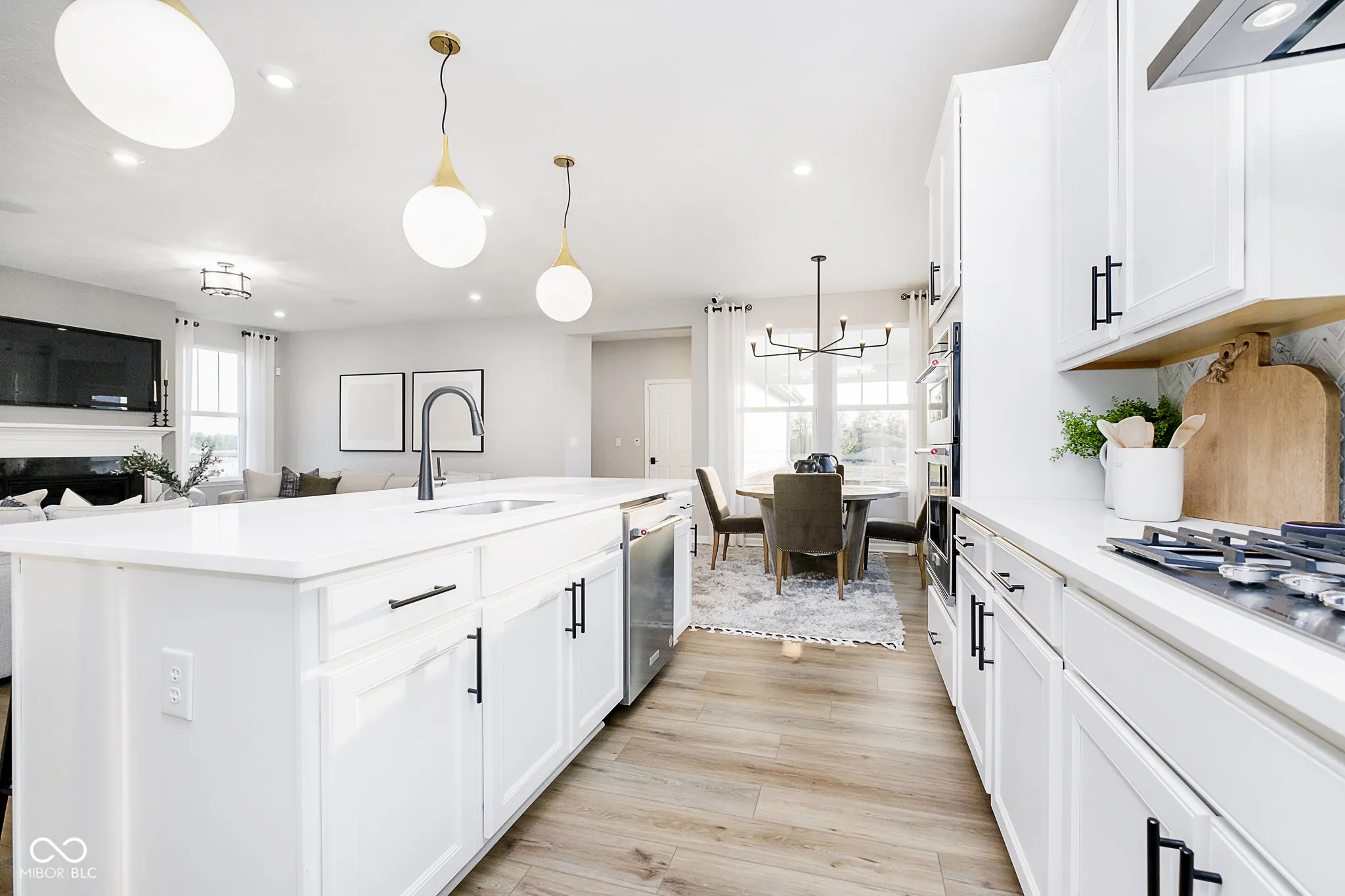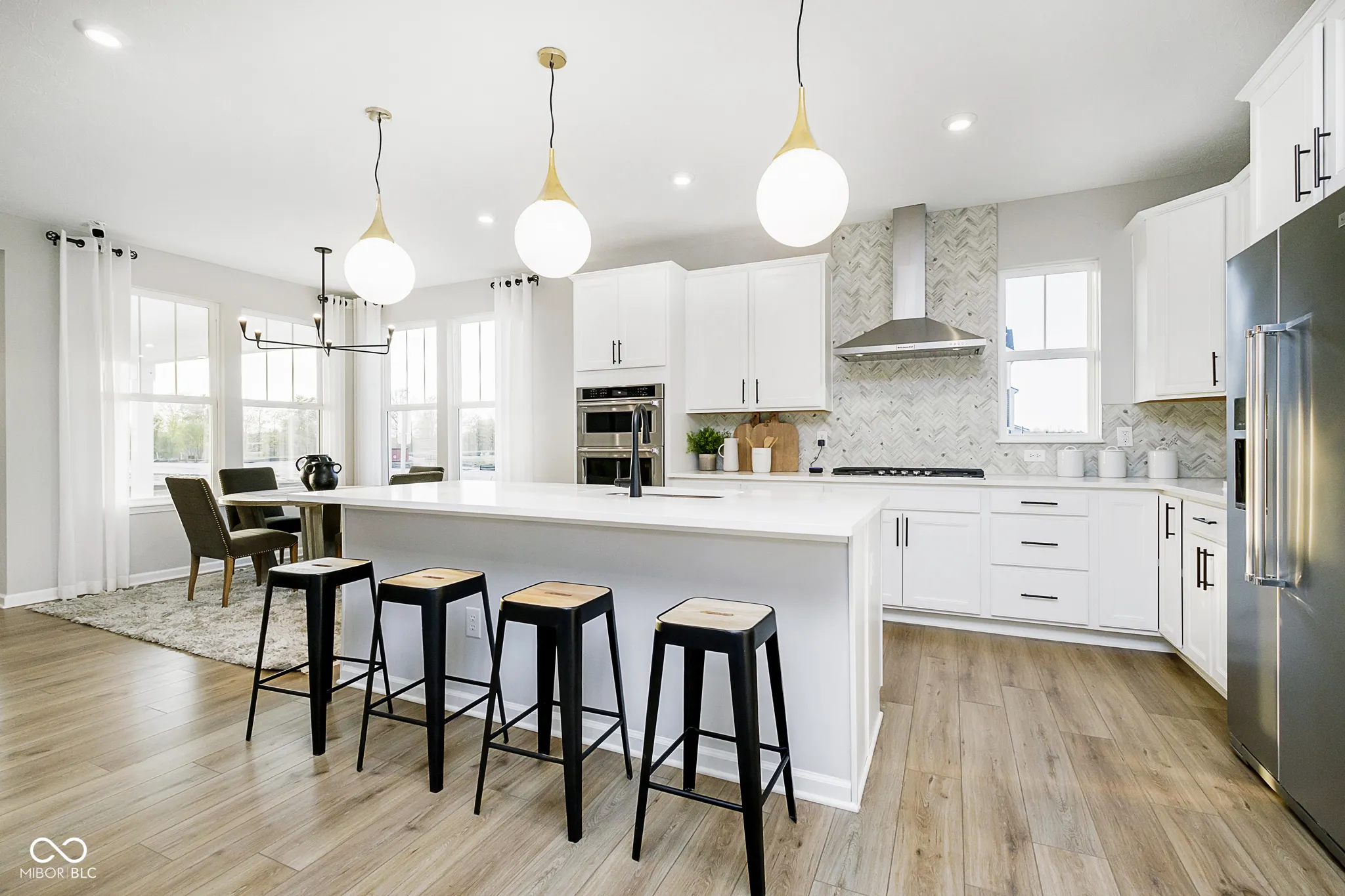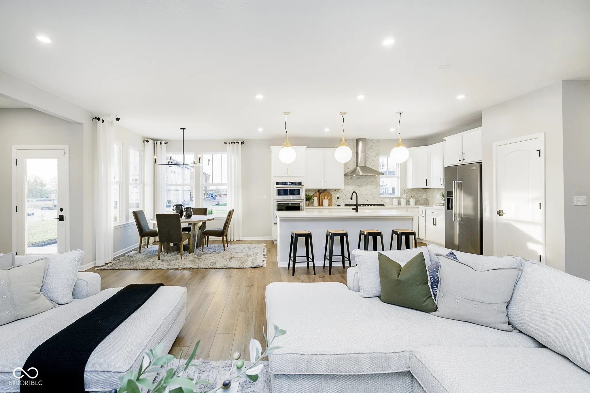 Welcome to the Portland floor plan, nestled in the highly desirable Ambleside neighborhood. From the inviting front porch, step inside to discover a thoughtfully designed main level that blends comfort and functionality. At the heart of the home, the gourmet kitchen is a chef’s dream, featuring Calacatta Elysio 3 cm quartz countertops, a built-in wall oven and microwave, a 36″ gas cooktop, a 36″ vented canopy hood, and 42″ white cabinetry. The adjacent gathering room offers a cozy ambiance with its fireplace and granite surround, creating the perfect space for relaxation or entertaining. A formal dining room provides an elegant setting for meals, while the flex room-complete with doors-offers a quiet retreat for work or hobbies. Step outside to a covered patio, ideal for year-round outdoor enjoyment. Upstairs, four generously sized bedrooms provide ample space for rest and retreat. The owner’s suite is a luxurious sanctuary, featuring a tray ceiling, an oversized tiled shower, a comfort-height vanity with sparkling white polished quartz countertops, and a spacious walk-in closet. Bedroom 4 boasts its own ensuite bath and walk-in closet, while Bedrooms 1 and 2 share a conveniently located full bath. The unfinished basement presents endless possibilities for customization and includes a bath rough-in for future expansion. Additional highlights include an extended garage for extra storage or workspace and an irrigation system to maintain a lush lawn. This top West Carmel location is minutes to everyday conveniences, shopping, dining and entertainment along US-31, Clay Terrace and Michigan Road with easy access to I-465 via US-31 and US-421.