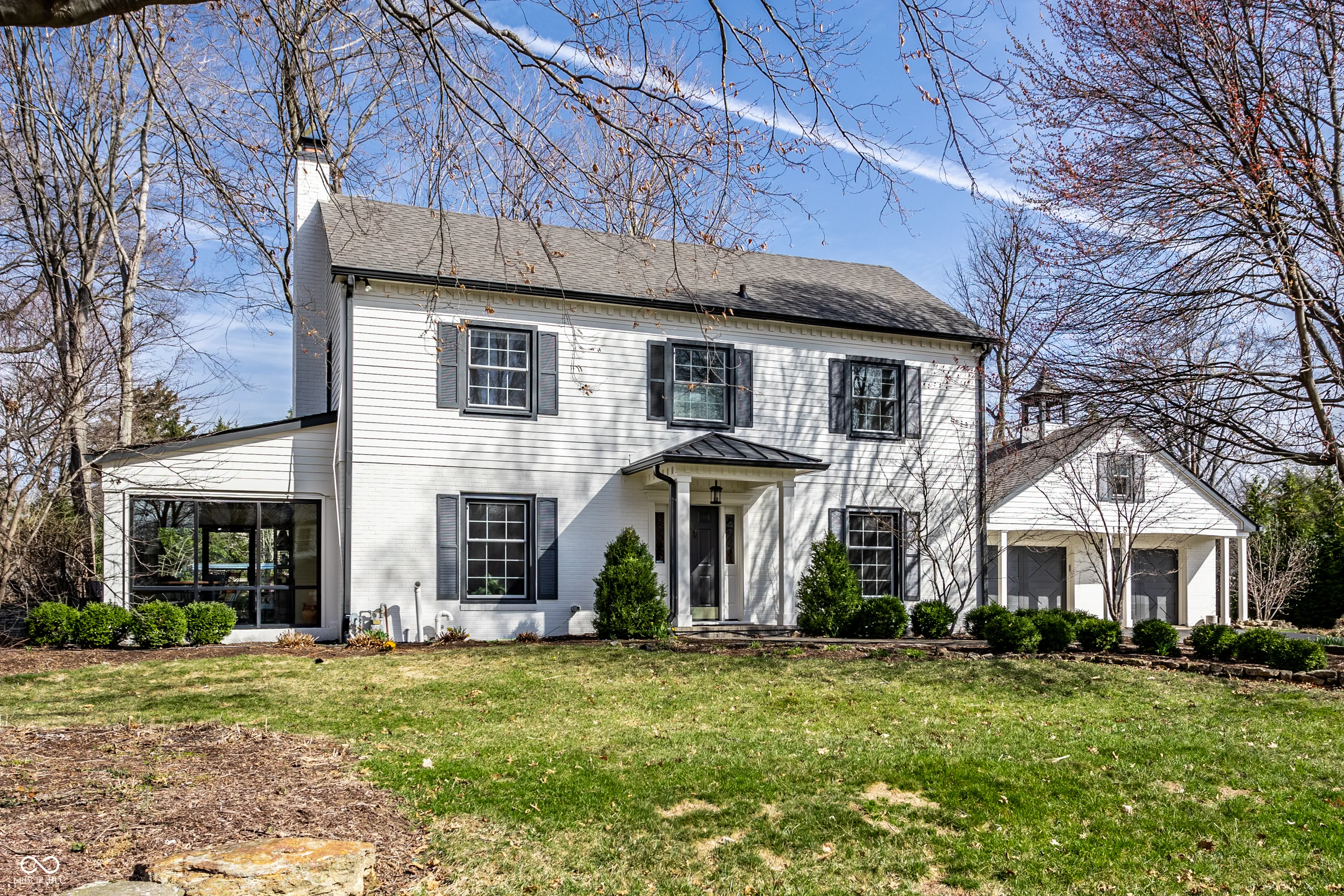 Nestled in the highly coveted Wellington neighborhood of Meridian Hills, this stunning home is just a short walk from the Meridian Hills Country Club and Holliday Park-home to a newly completed $6 million playground renovation, a nature center, and scenic trails. Thoughtfully updated throughout, this home blends timeless charm with modern elegance. The kitchen, featuring inset cabinetry and stainless steel appliances, is designed for both functionality and style-seamlessly connecting to the dining area and an inviting outdoor patio. The living room provides warmth with rich hardwood floors, crown molding, and a cozy fireplace, leading effortlessly into the sunroom-an ideal retreat for a morning coffee or a good book. The paneled den, complete with built-ins and an additional fireplace, provides the perfect space to unwind. The spacious primary suite offers double vanities, marble floors, and classic subway tile. The finished basement, featuring an additional full bathroom, is the ultimate spot for game-day gatherings or movie nights. Outside, the .36-acre lot is perfect for entertaining-complete with a patio and firepit, ideal for making lasting memories with friends and neighbors. Additional highlights include an oversized two-car garage and walk-up attic storage in both the main house and garage. Don’t miss this exceptional opportunity to own a piece of Meridian Hills charm!