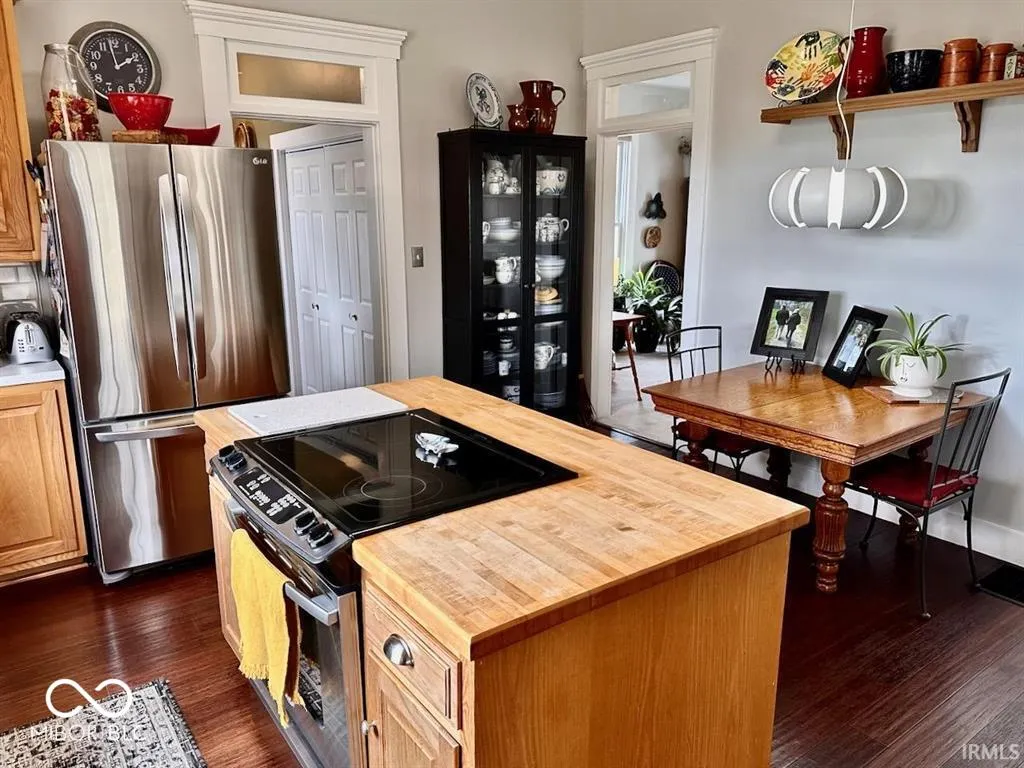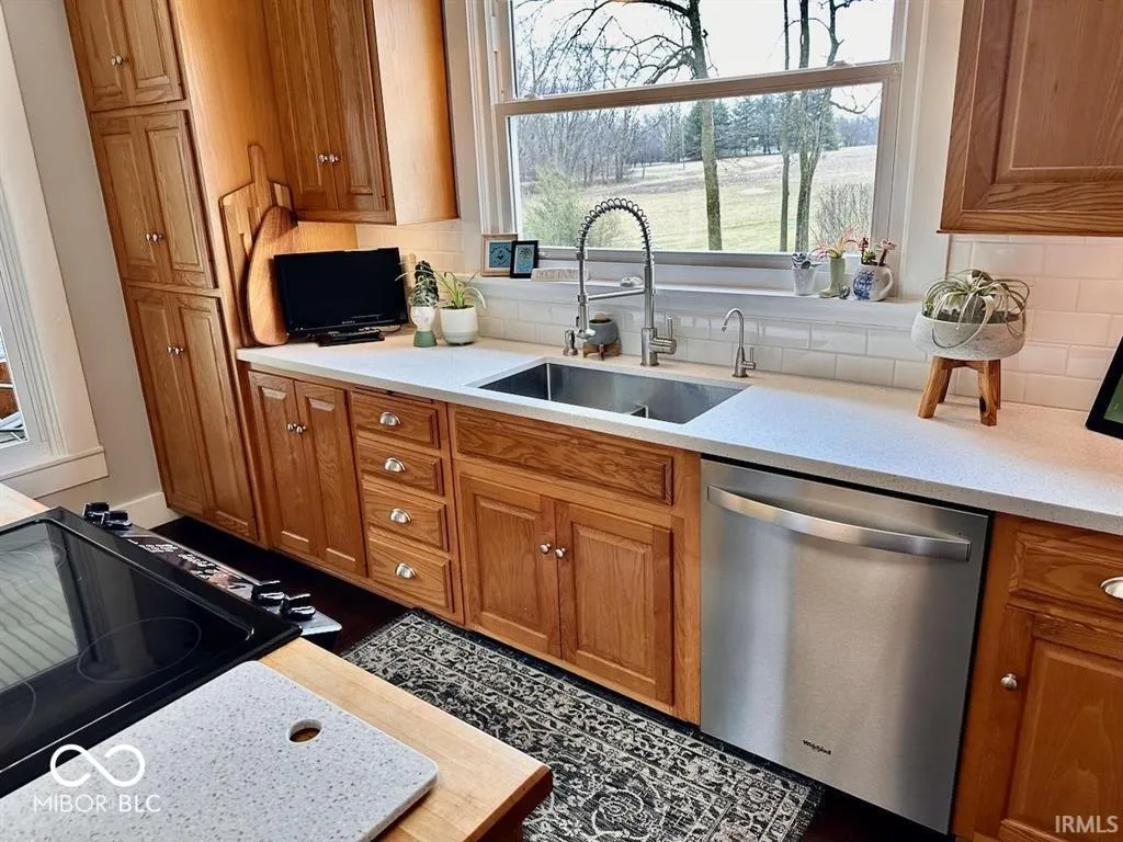 This charming home offers 2,362 square feet of updated living space with 3-4 bedrooms, 2 full baths, a spacious living room, and a vaulted-ceiling family room that was previously used as a 4th bedroom. The heart of the home is the stunning remodeled kitchen featuring Corian countertops, updated appliances (2021), and eye-catching bamboo flooring. Recent upgrades over the past 10-15 years include a newer roof (~15 yrs), two 3-ton geothermal HVAC systems, updated windows, a remodeled upper-level shower (2015), updated lower bath (2018), whole-house paint (2021), and a 200-amp electrical service. The property includes a detached 2.5-car garage with a partial concrete floor and a screened porch with access to the basement. Additional perks: the children’s play equipment and SimpliSafe security system can stay, and the driveway has a recorded easement to the second lot. (Note: water heater and softener are rented.) Enjoy country living with the convenience of being just minutes from downtown Albany and only 20 minutes to most of Muncie.