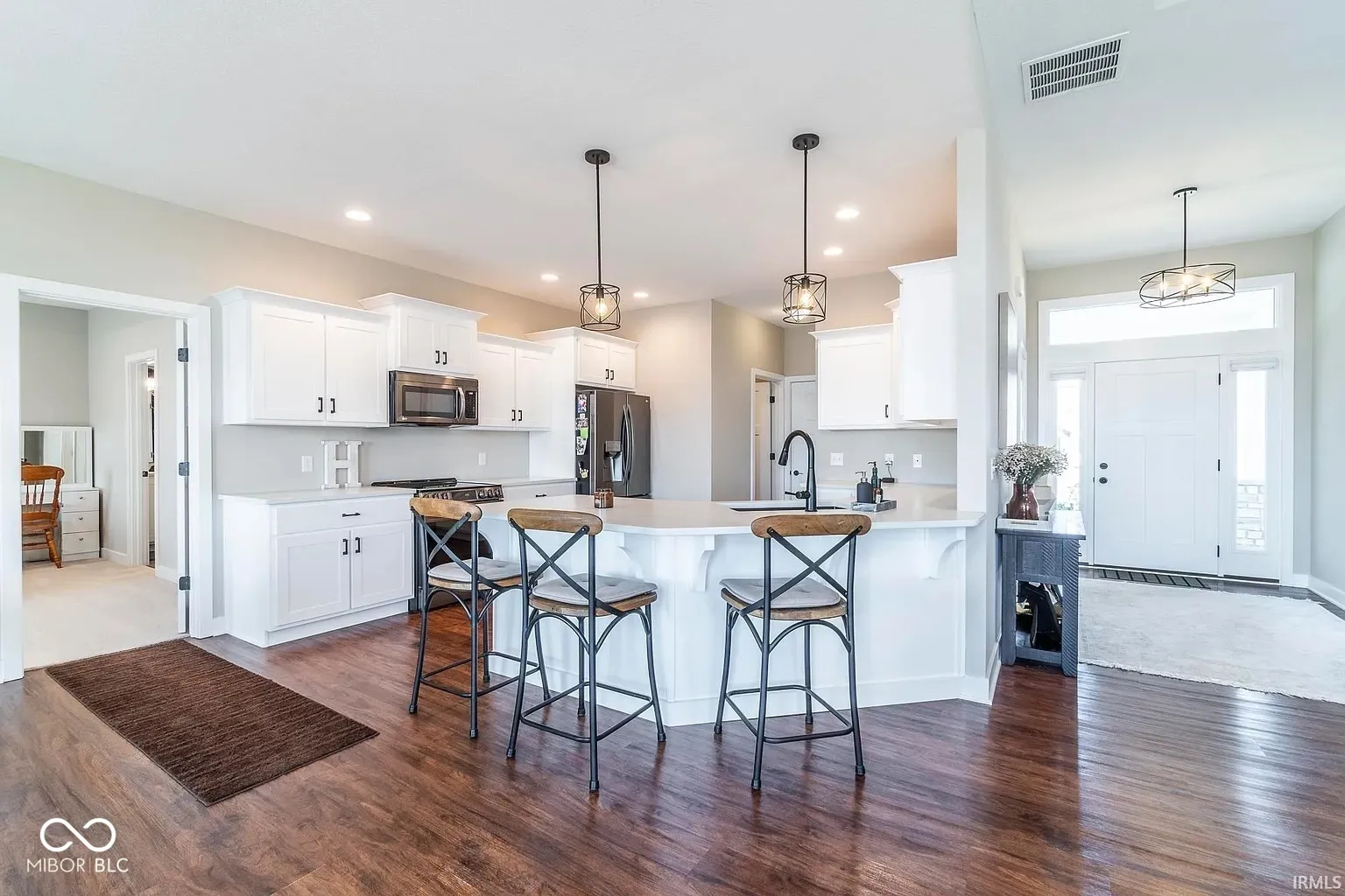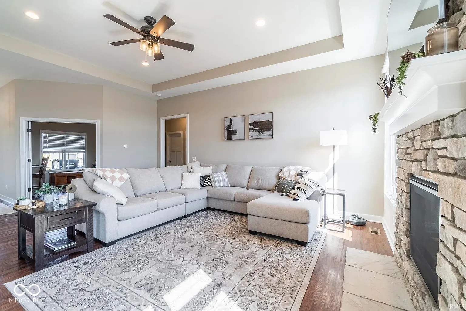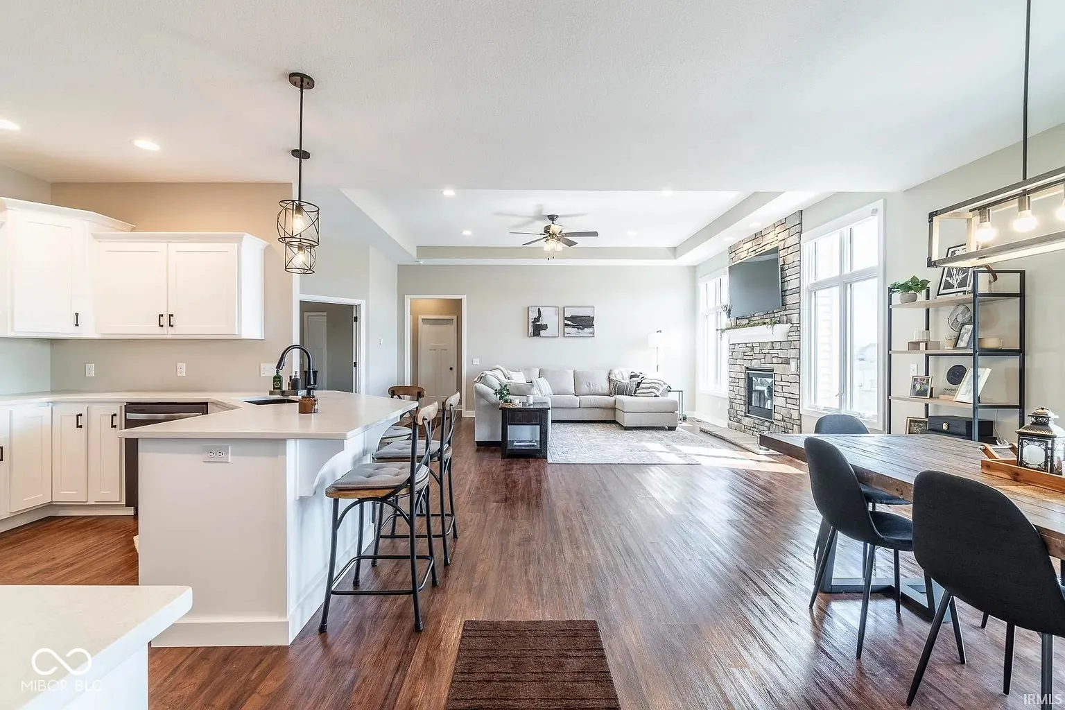 Step into a modern, sophisticated ranch home nestled in the coveted Northwest Allen County School District-where every detail has been thoughtfully designed for an unparalleled living experience. From the moment you cross the threshold, you’ll feel the warmth and elegance of a one-owner home that’s only two years young, boasting over 2,000 square feet of single-story brilliance. Imagine an open-concept layout that welcomes you with expansive natural light pouring through large windows. The inviting living area is anchored by a striking floor-to-ceiling fireplace, creating a dramatic focal point that seamlessly blends contemporary style with timeless charm. Adjacent to this space is a beautifully appointed kitchen/dining/living area featuring high-end stainless steel appliances (all included, though not warranted) that effortlessly combine form and function.The home’s split bedroom plan ensures both privacy and flexibility. Unwind in your HUGE en suite master bedroom complete with a generous walk-in closet and a spa-like master bath, featuring a large tile walk-in shower and double vanities. An additional office space-easily adaptable into a fourth bedroom with its own closet-offers a perfect solution for guests or a growing family.Step outside into your private oasis. The backyard is your own retreat, boasting a covered concrete patio that overlooks a tranquil five-acre pond-a serene backdrop for evening relaxation or lively gatherings. Additional modern conveniences enhance everyday living, including upgraded electrical features with can lights and dimmer switches (complete with fans) in every bedroom, extra outlets throughout, a generator outlet in the garage, exterior LED lighting, a Ring doorbell, and motorized window blinds. Beyond your doorstep, discover a community bursting with hyper-local activities that enrich everyday life. Enjoy morning walks along scenic trails, savor locally crafted flavors at nearby restaurants and cafes, or explore community parks an