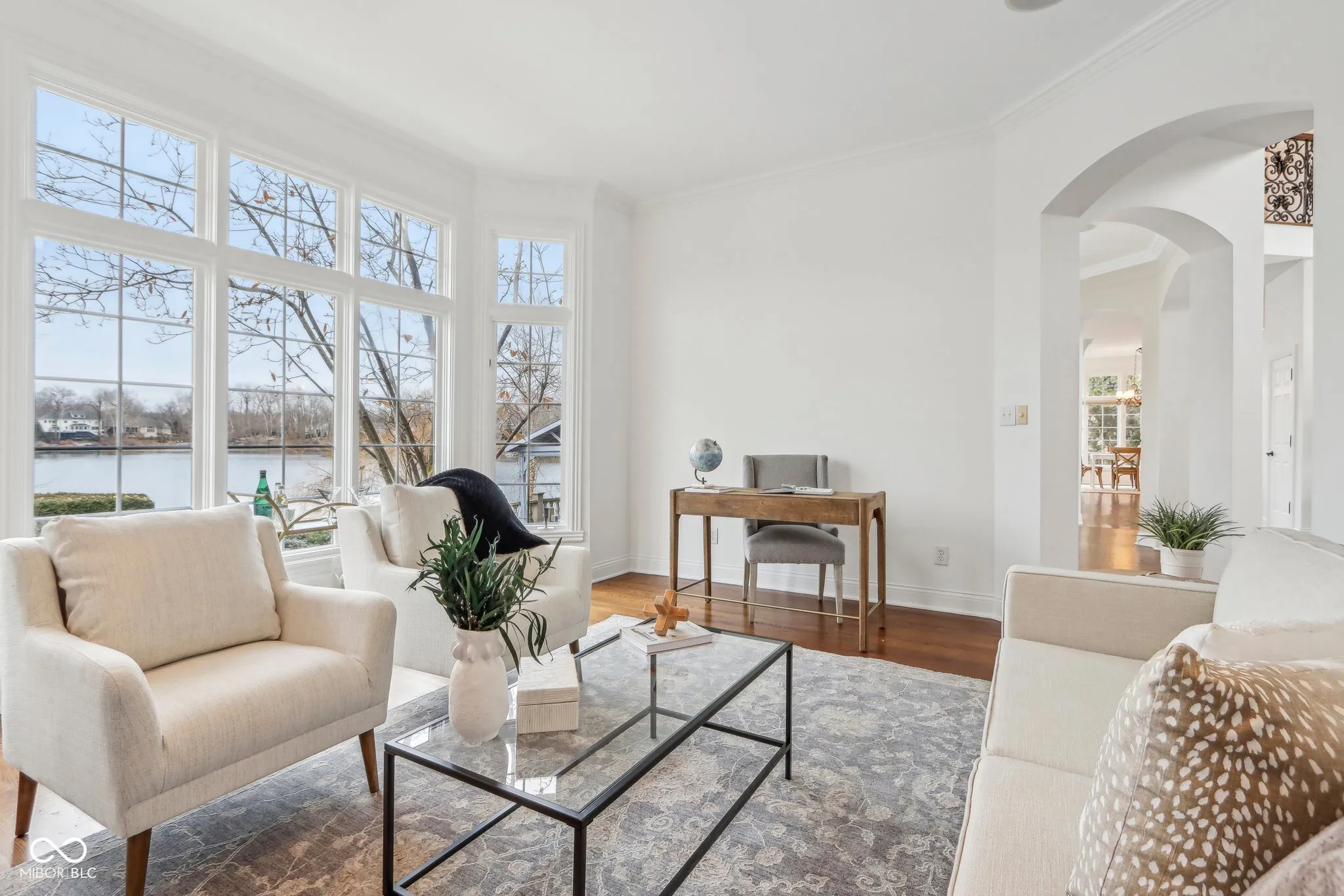 Welcome to your own private oasis in the desirable gated community of Oxbow Estates! This gorgeous lakefront property offers breathtaking lake views, lush landscaping, and a serene atmosphere that makes it feel like a true retreat. Enjoy mesmerizing sunsets from your back patio or soak in the natural beauty from an abundance of windows that flood the home with natural light. Experience the warmth of this sanctuary. The inviting gourmet kitchen complete with SubZero and Wolf appliances overlooks the family room and shines with a striking wall of windows. The spacious primary suite and office are thoughtfully positioned opposite the gathering spaces and provide the perfect escape. A remarkable pub-style bar and a huge recreation room are upstairs-ideal for entertaining guests or unwinding after a long day. Located in a central area with easy access to the Monon Trail, river and community trails, and just moments away from local restaurants and shops, this home combines the best of both convenience and tranquility. Plus, with great neighbors and a tight-knit community, you’ll experience a welcoming atmosphere that truly makes this property feel like home. Don’t miss your chance to own this exceptional waterfront property that offers the perfect blend of nature, luxury, and convenience. Schedule your tour today!