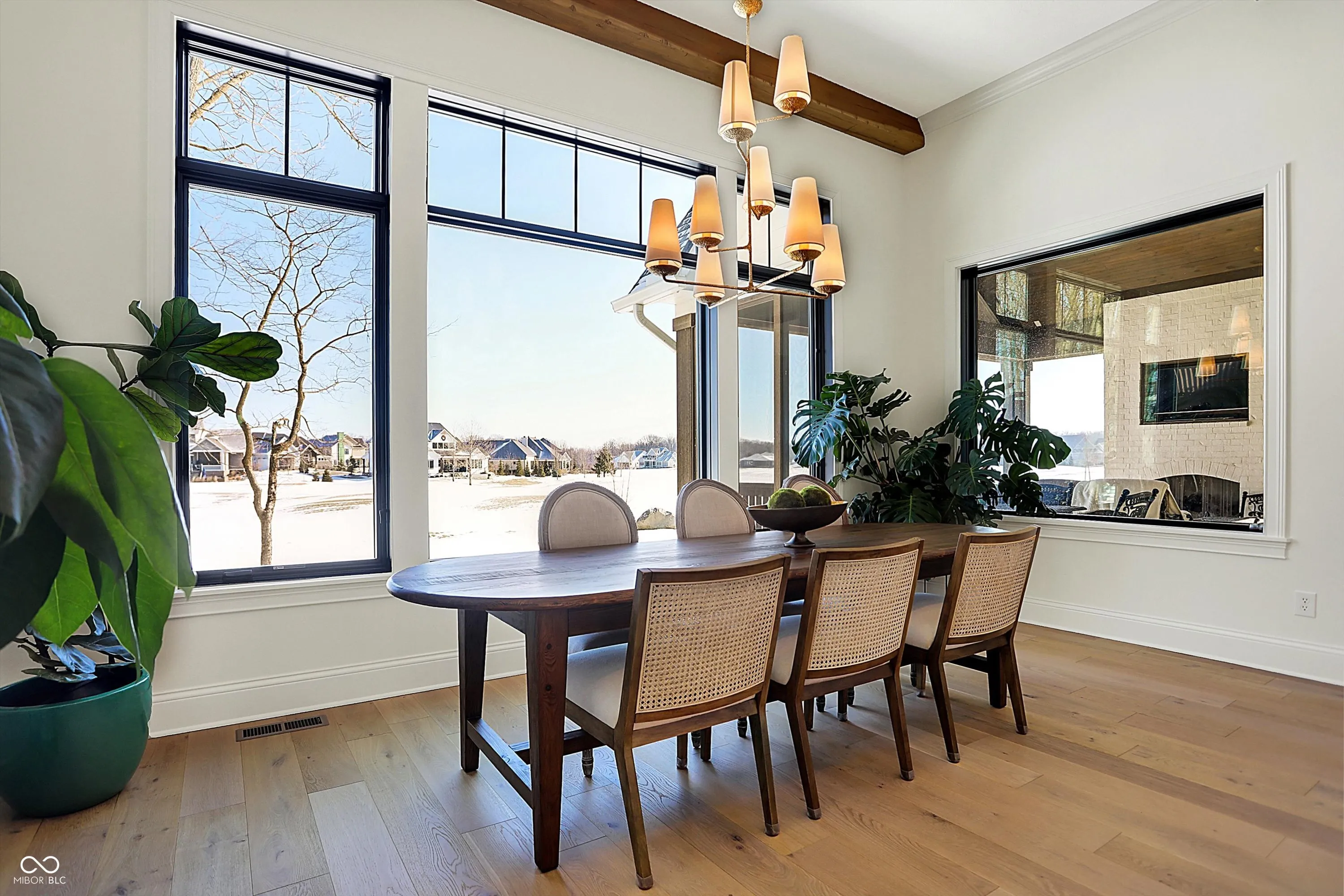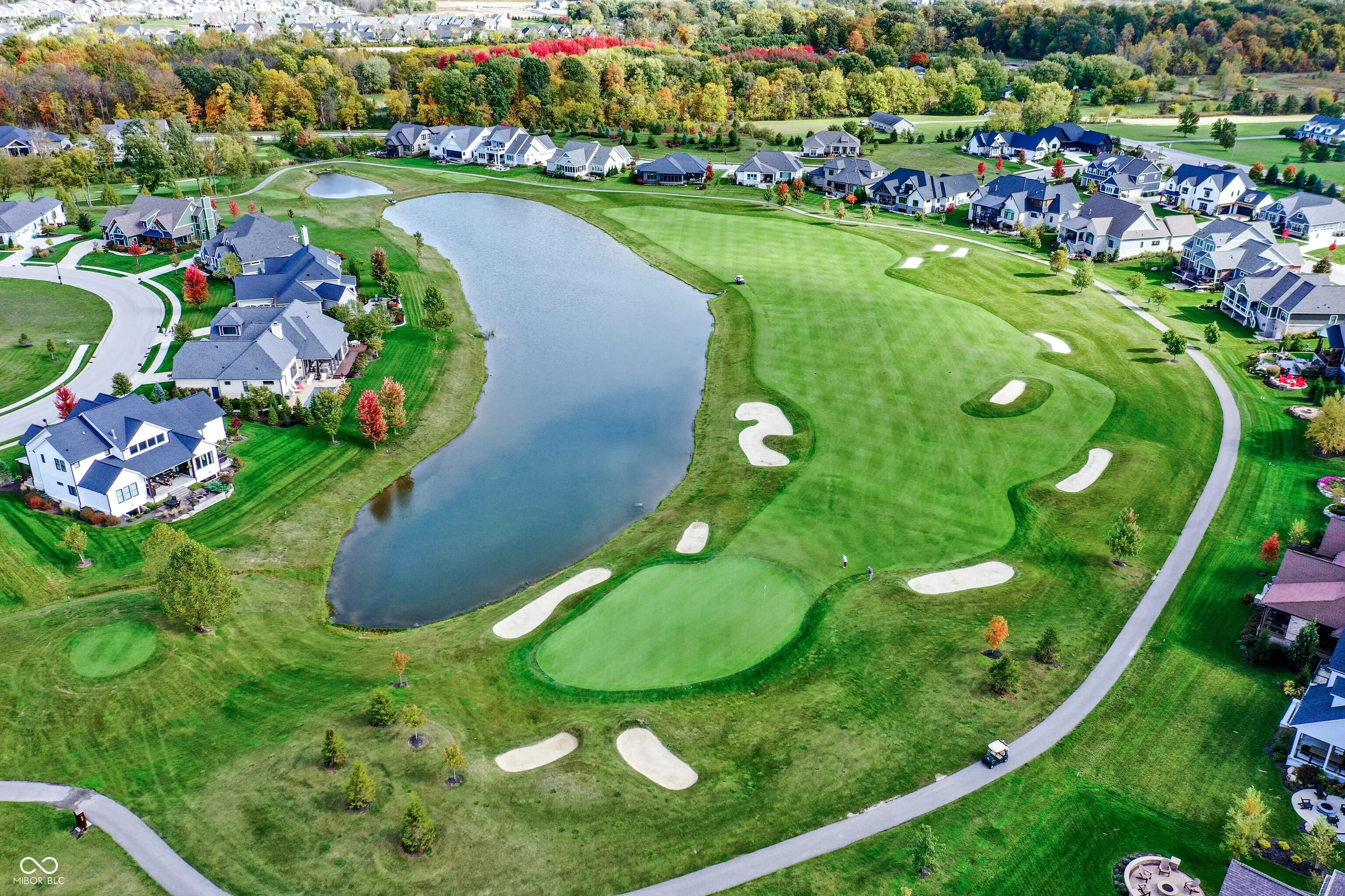 Step into luxury with this stunning five-bedroom home, where elegant design and modern amenities create the perfect living experience on the golf course. The open floor plan welcomes you with a spacious great room featuring a fireplace and an adjacent harvest room, ideal for intimate gatherings. A gourmet eat-in kitchen serves as the heart of the home, complete with a large island for additional seating, high-end stainless steel appliances, and a butler’s pantry equipped with a beverage fridge, wine fridge, and an additional sink. Expansive sliding glass doors lead to a covered lanai, offering seamless indoor-outdoor living. The main-floor primary suite is a private retreat, showcasing a tray ceiling detail, a spa-like ensuite with a double sink vanity, a beautifully tiled shower, and a generous walk-in closet that conveniently connects to the laundry room. Upstairs, a spacious loft, a stylish office with custom wall details and built-ins, and three guest bedrooms provide comfort and versatility, with two bedrooms sharing a well-appointed Jack and Jill bathroom. The finished lower level is an entertainer’s dream, boasting an open-concept entertainment area with a sleek wet bar, an additional guest bedroom, and a full bathroom. A large unfinished storage space offers ample room for organization. Social member ship included with home purchase.