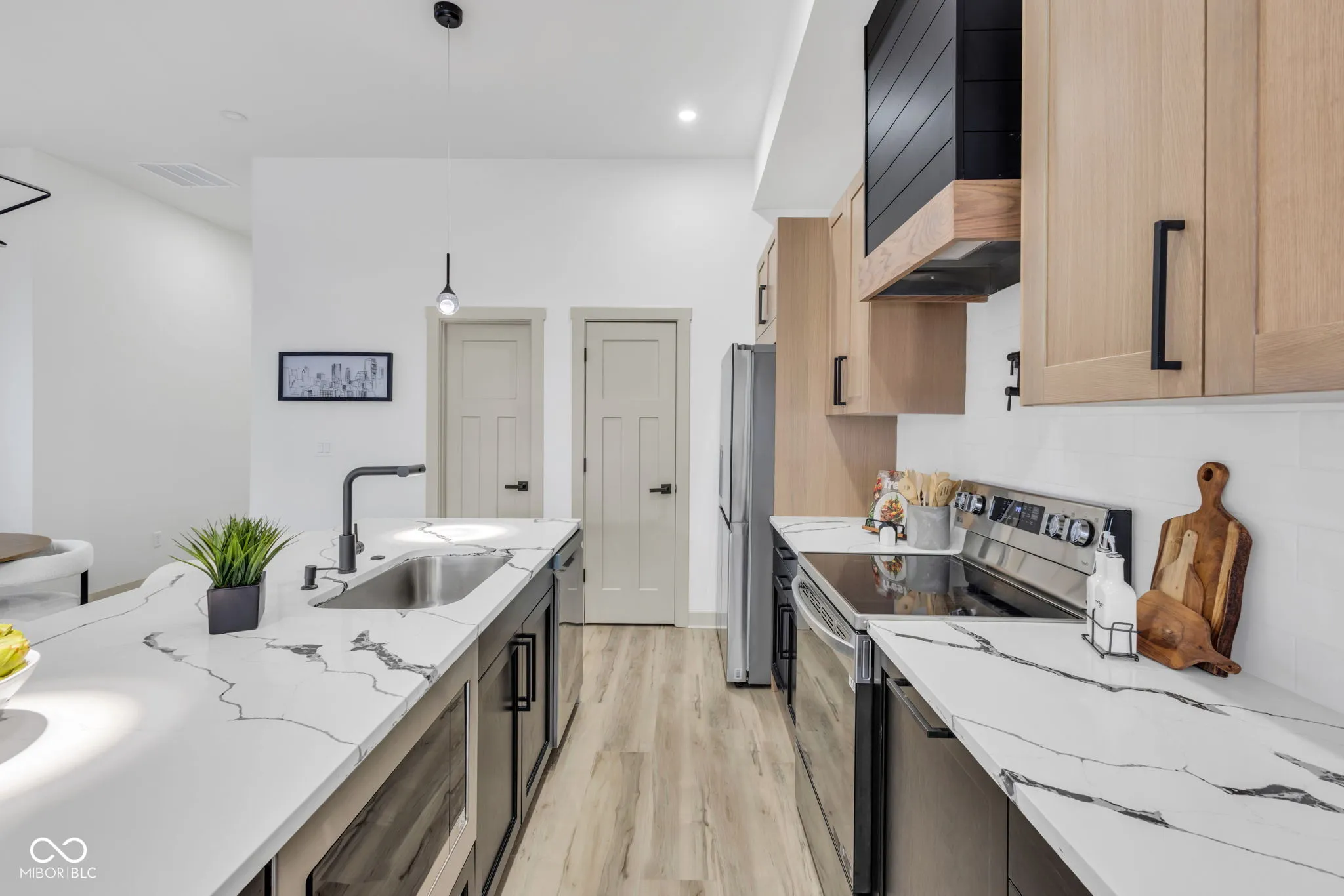 Discover this exquisite 4-bedroom, 2.5-bathroom New Construction Home, offering unparalleled access to Indy’s best dining, shopping, and entertainment. Designed with both style and functionality in mind, this home features an open-concept layout filled with natural light and high-end finishes throughout. The gourmet kitchen is a chef’s dream, boasting quartz countertops, stainless steel appliances, and a spacious center island with a breakfast bar, perfect for entertaining. Retreat to the first-floor primary suite, where you’ll find a custom-tiled shower, dual vanity, and an expansive walk-in closet. Upstairs, three additional bedrooms, a versatile loft or office space, a stylish full bath, and a private balcony provide endless possibilities for relaxation, work, or hosting guests. Outside, enjoy a fully fenced backyard on an oversized lot, ideal for gatherings and outdoor enjoyment. Additional features include a two-car detached garage, rough-in plumbing for a water softener hookup, and more. Located just minutes from Downtown Indy’s top restaurants, sports venues, and cultural attractions, this home delivers the ultimate urban lifestyle. Don’t miss out-schedule your private tour today!