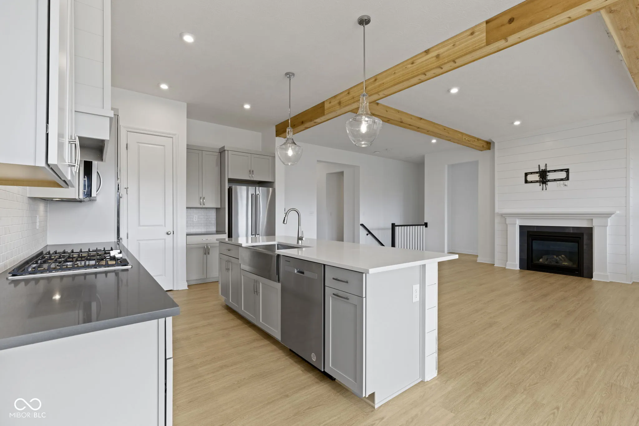 This newly built home truly feels like a place where memories are made. With 4 cozy bedrooms and 3.5 baths, it’s designed to be the perfect setting for family life. The great room, where a built-in fireplace and exposed wood beams add a warm, welcoming touch, is the perfect spot to curl up with a book or gather around with friends. Meanwhile, the kids can enjoy their own space in two bedrooms that share a charming Jack and Jill bathroom-perfect for busy mornings. The master suite is a private getaway nestled right at home. Its spacious layout offers a great space for relaxation, and the walk-in closet, with its thoughtful, custom-built shelving keeps everything perfectly organized. Add on a modern bathroom with double-sinks and a large walk-in shower, and this primary bedroom truly has it all. The office is a standout feature, with rich paneled walls that give the space a sophisticated feel. With plenty of room for a desk, bookshelves, or even a reading nook, this office offers a quiet retreat. Downstairs, the basement offers a flexible space to make your own-whether it’s a playroom for the kids, a movie theater, or a game room, it’s sure to stand out. Outside, the brick and stone exterior create a luxurious look, and the covered patio and porch make it perfect for enjoying sunsets or a quiet morning coffee. The yard is equipped with an irrigation system, ensuring your landscaping stays vibrant, while the mature trees planted along the perimeter create a private backyard oasis. This home is not just a place to live; it’s a place where you can truly relax and feel at ease.