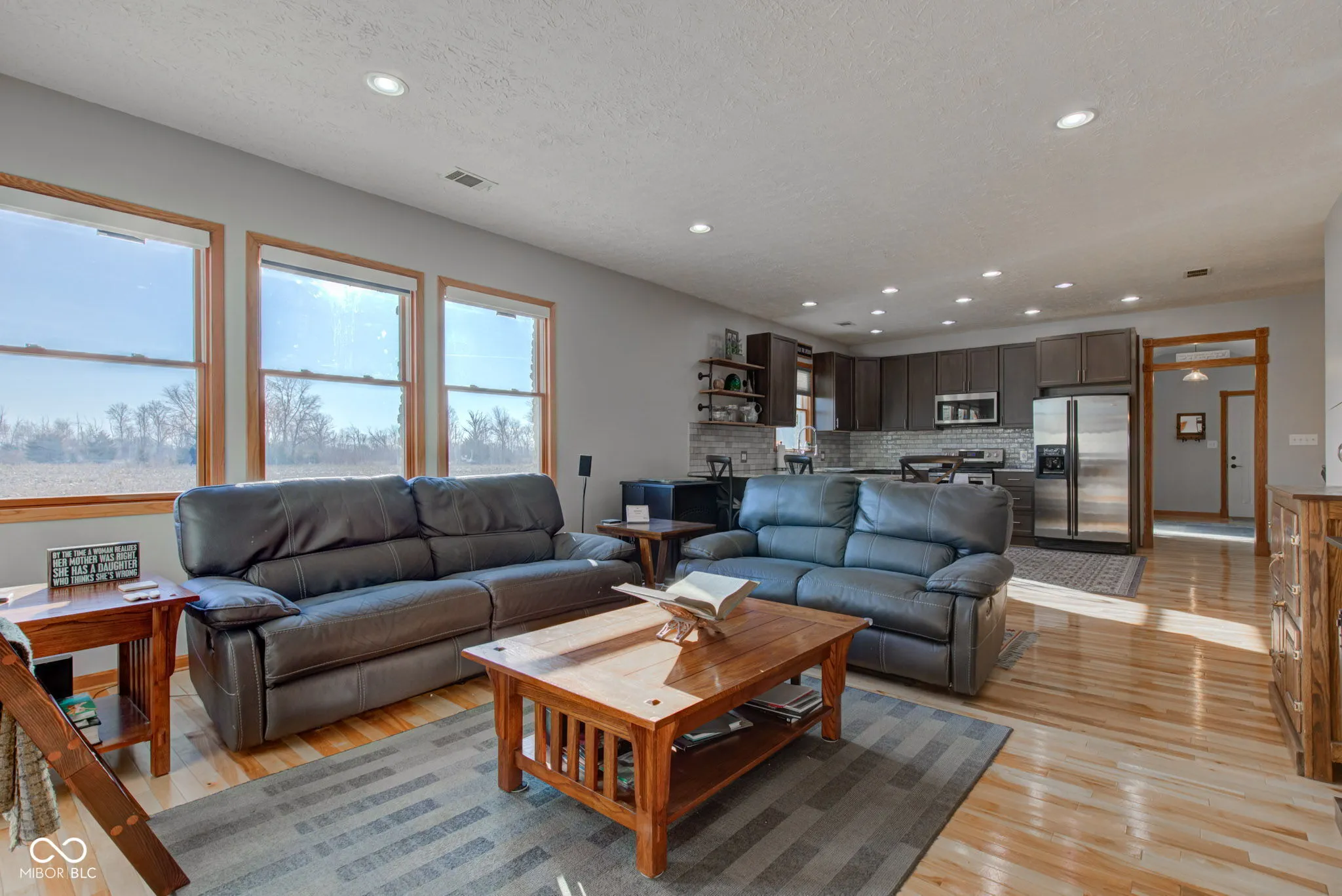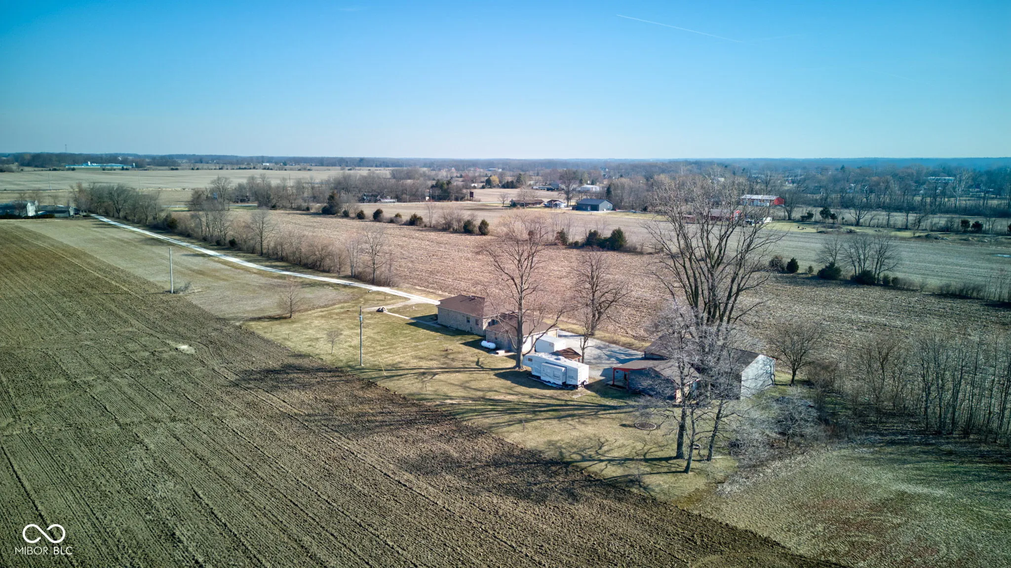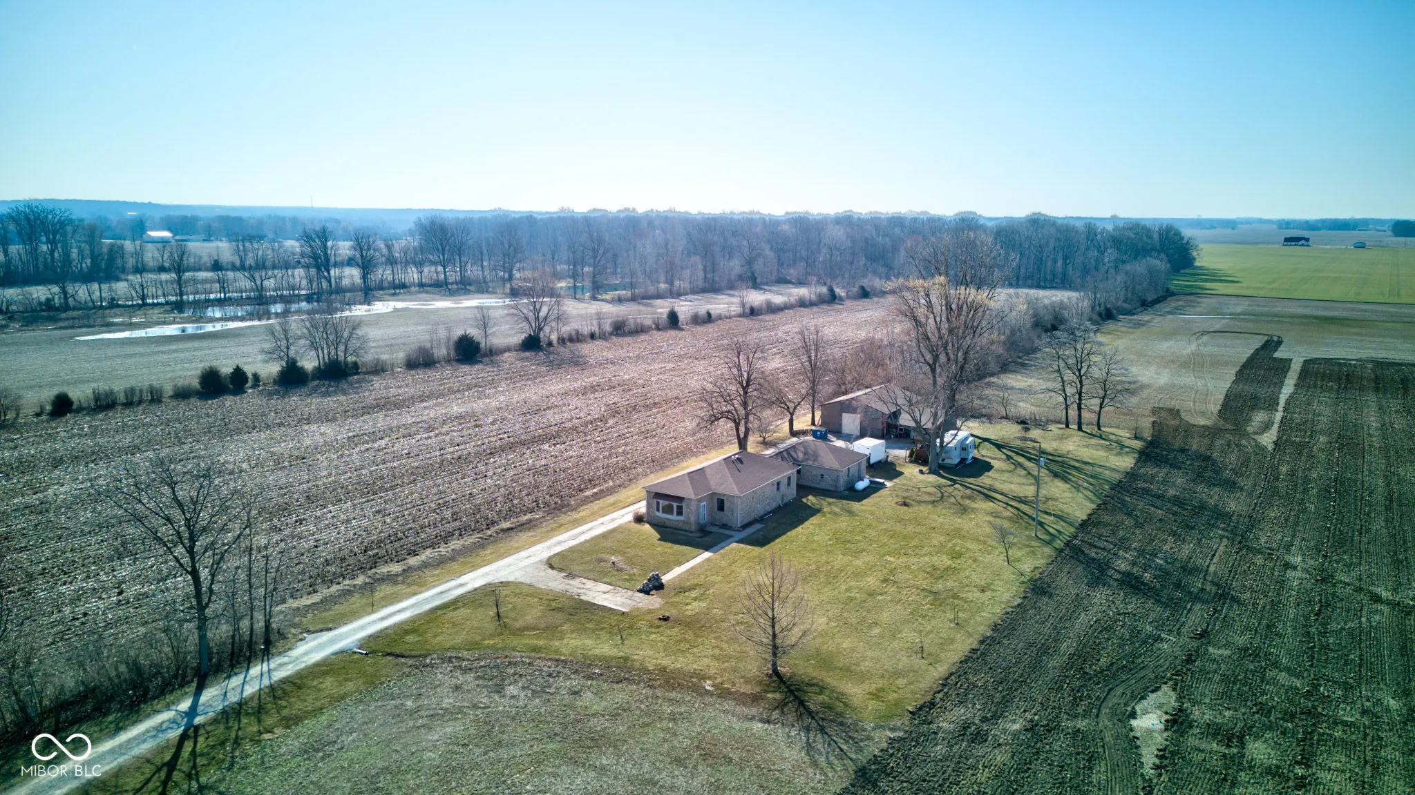 Welcome home to this beautiful 2 bedroom, 1 bath home on over 3.5 acres in Fountaintown, with a separate full in-law suite. Everything about this home has been cared for and thoughtfully updated with beautiful hardwood floors throughout most of the house. In the home you will find a kitchen with granite counters, tall cabinets, hardwood flooring and every GFCI outlet has USB ports. All appliances in the kitchen stay. The living room also has hardwood floors, a pellet stove for extra warmth, and even blinds that are controlled with a remote and run off solar power. The owner’s suite is huge with a walk in closet. The bathroom has ceramic tile, a jetted jacuzzi tub, double sinks and even a custom tile shower with 4 jets, 4 shower heads and a pressure washer. Additionally, there is an office (that could be a 3rd bedroom), 15 x 10 mud room (washer and dryer in house stay), and oversized garage. Just off of the garage you will find 24 x 6 garage storage room that has a wall heater and a 220 V plug. The home also has 9-foot ceilings, extra insulation in the attic, a tankless water heater, full house R/O system, generator hook-up ready to power whole home, a UV light filter on the furnace, new furnace in 2025 and the attic and crawl space have lighting. The home was painted inside and outside and sealed in the summer of 2024 and the roof is just 3 years old. There are two separate septic fields (1 for the house and one for the in-law suite), 400 amp electric service (200 to home, and 200 to pole barn/in-law suite), new drain tile for the field, a 140 ft deep well, and a 64 x 32 heated pole barn with concrete flooring. There are even a gala apple tree! Don’t forget about the in-law suite that has a living room, full kitchen, bathroom/bedroom, it’s own R/O system and laundry. It even has a covered porch. Don’t miss the chance to make this yours!