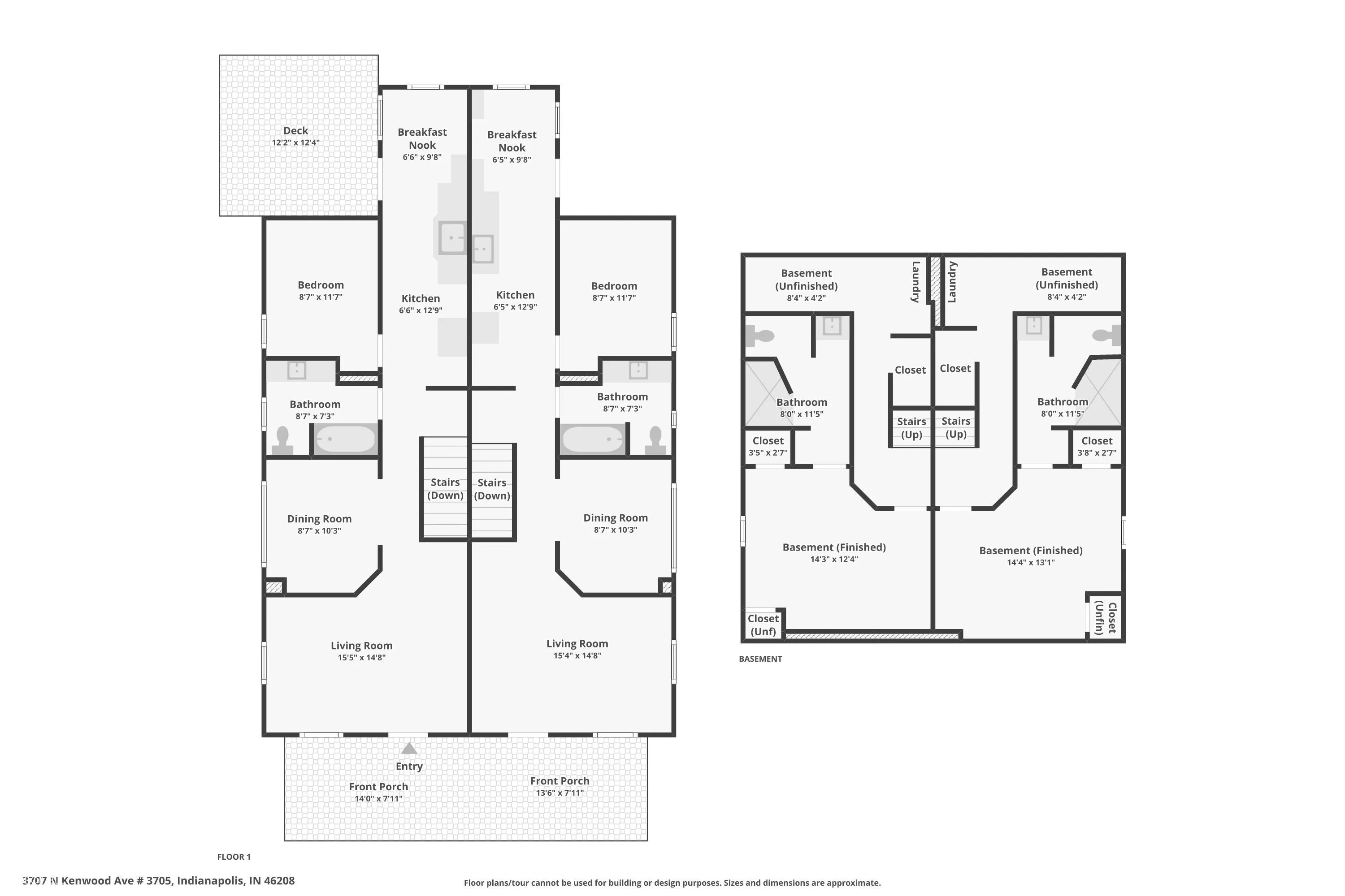Uncover the perfect blend of comfort and investment potential with this spacious duplex, offering over 700 sq. ft. of living space per side and over 300 sq ft of living space below. Each unit boasts 2 bedrooms with potential for a 3rd (bedrooms). This duplex has been completely remodeled from the studs and newly finished basements highlighted by top of the line finishes at every turn. Each side features 2 full baths to cater to many different tenant desires . One unit has a 12×12 deck off the back with privacy. The property currently has both sides vacant and ready for occupancy. This arrangement offers a fantastic opportunity for investors seeking steady income or owner-occupants looking to offset everyday costs. Located in an area close to all the amenities Indy has to offer, this duplex is a rare find that combines space, functionality, turnkey ready and income potential.