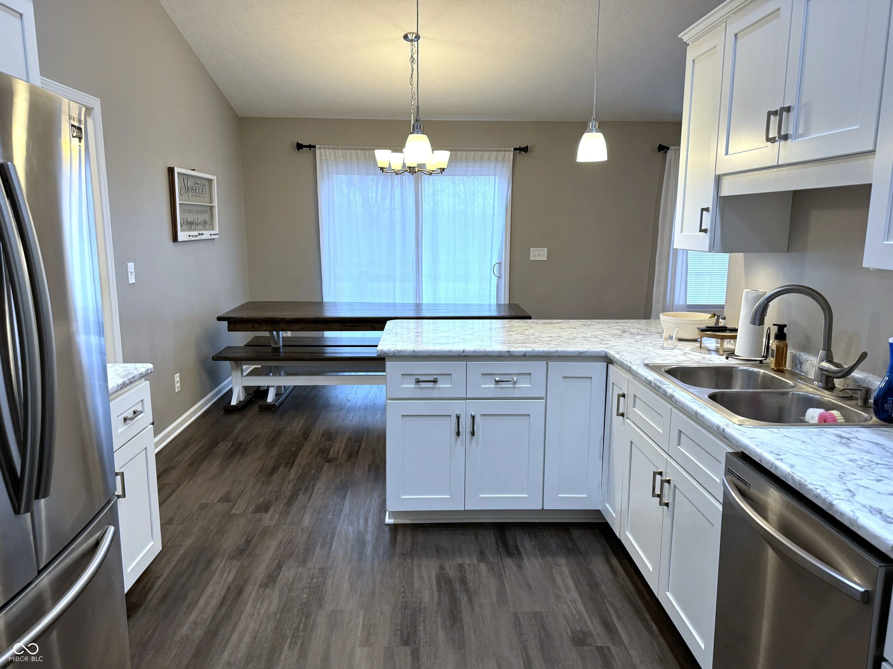 Welcome home to this stunning 1,883 sq. ft. ranch in the desirable North Montgomery School District! Featuring 3 bedrooms, 2 full baths, and a thoughtful split floor plan, this home offers both comfort and functionality. Step inside to an inviting open-concept living area, where the beautiful kitchen overlooks the dining and family room. The kitchen is complete with stainless steel appliances and breakfast bar, while vaulted ceilings and a cozy gas log fireplace make the family room perfect for entertaining. The spacious primary suite boasts two walk-in closets and a luxurious en-suite bathroom with a custom tile shower. On the opposite side of the home, you’ll find two additional large bedrooms, a dedicated office space, and a second full bath. Enjoy outdoor living with a charming covered front porch, a private open patio in the backyard, and a full privacy fence. You will have plenty of space for parking and storage in your two-car attached garage and enlarged driveway. With meticulous landscaping and move-in-ready condition, this home is ready for you to make it your own!