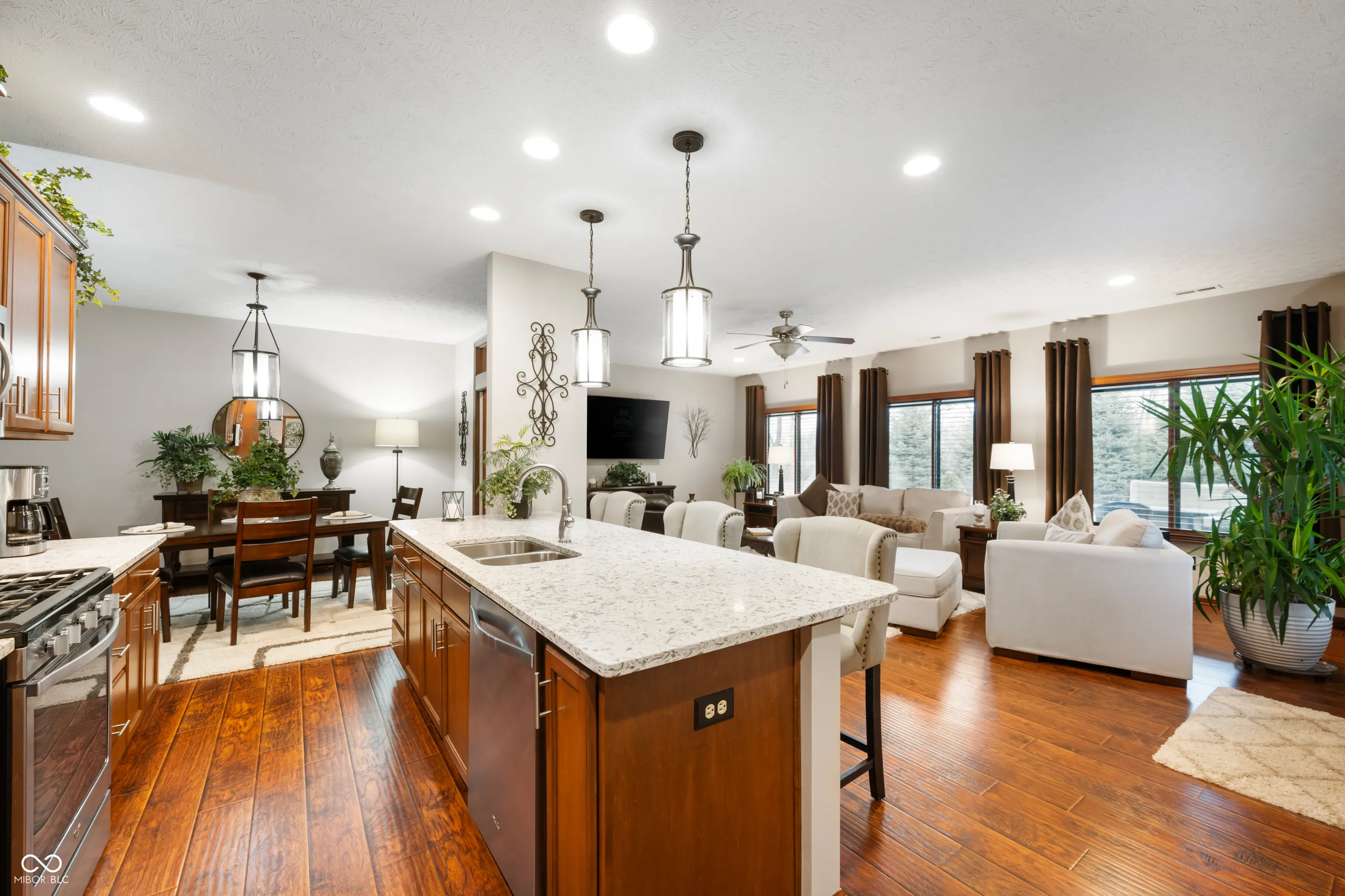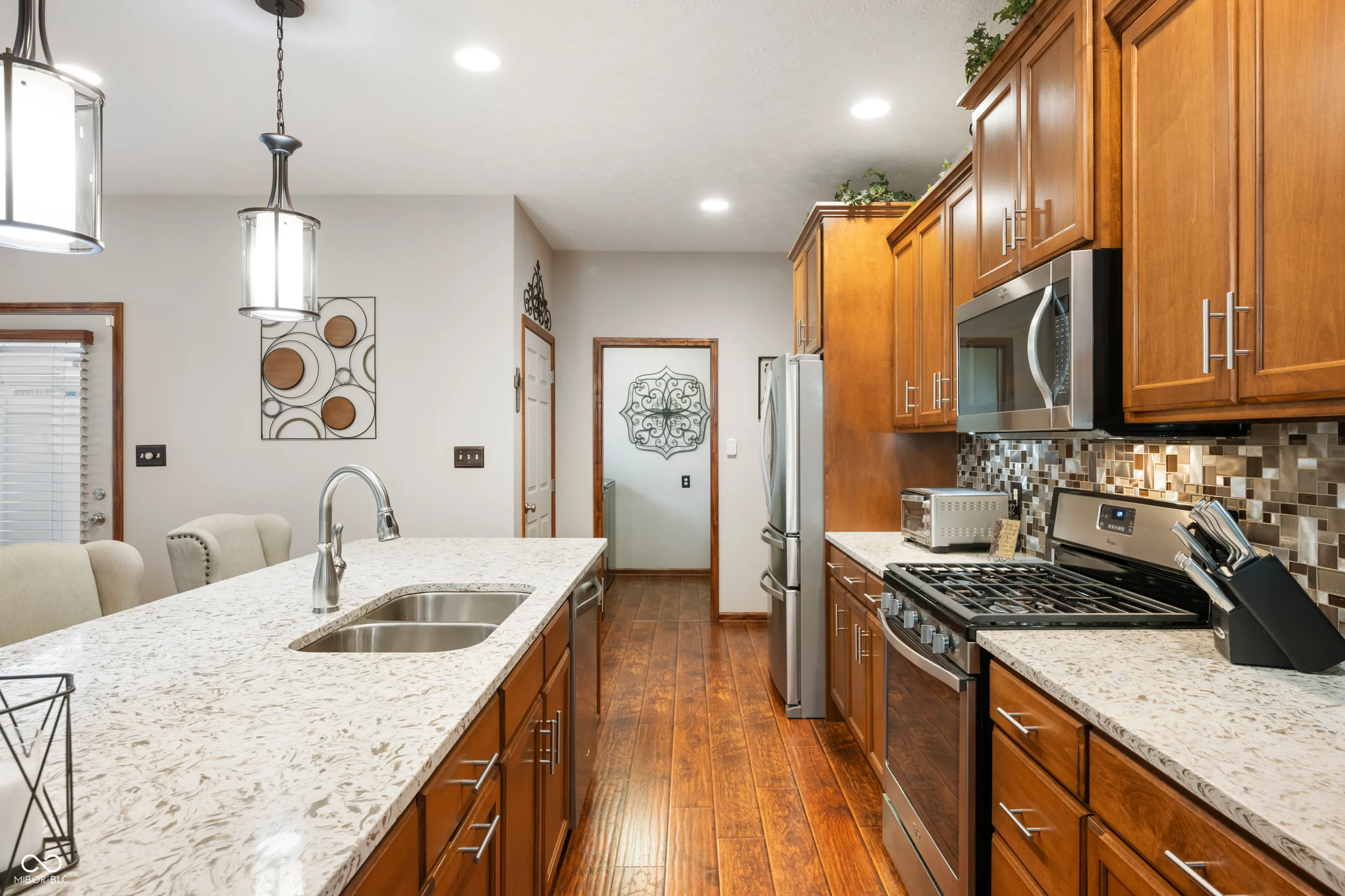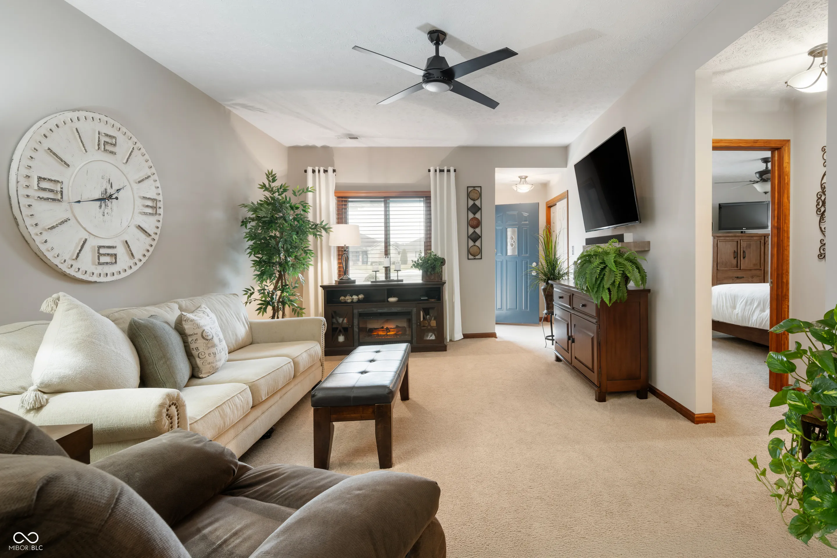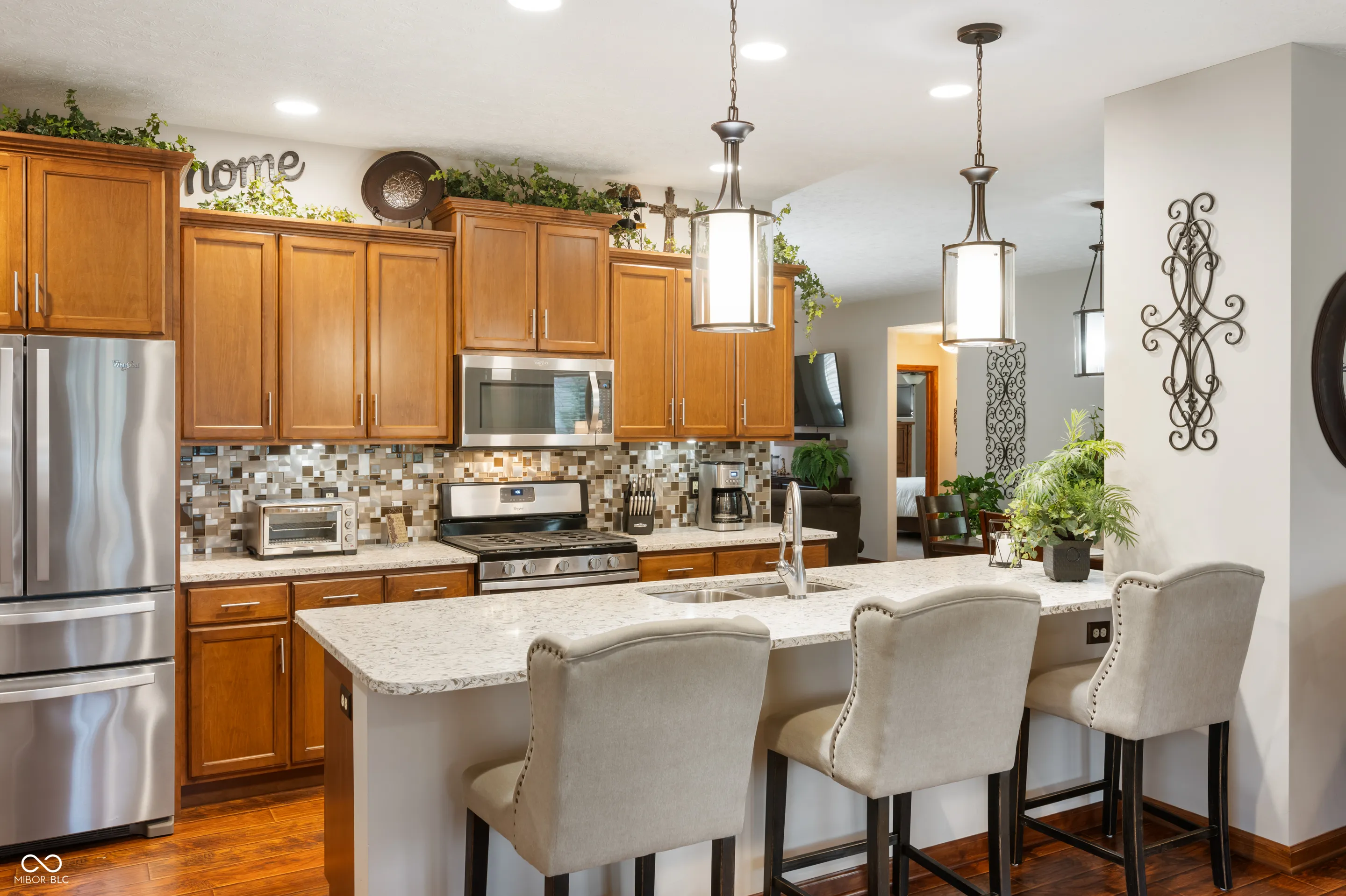 Discover effortless living and upgrades galore! This beautifully upgraded 2-bedroom, 2-bathroom ranch condominium is situated on the largest lot in Section 1. You will love this truly exceptional home with top-tier upgrades and prime location. Designed with an open floor plan and 9-foot ceilings, including an elegant tray ceiling, this home offers a spacious and inviting atmosphere. The primary suite is a true retreat, featuring a luxurious walk-in tiled shower and generous closet space. The kitchen is a chef’s dream with quartz countertops, all Whirlpool appliances, and stylish finishes. Enjoy year-round comfort with the Halo air purifier. Step outside to relax on the covered porch or entertain on the extra-large concrete patio, complete with a partial privacy fence. The exceptional curb appeal is enhanced by the beautiful landscaping, striking blue spruces, and outdoor lighting that makes this home shine day and night.