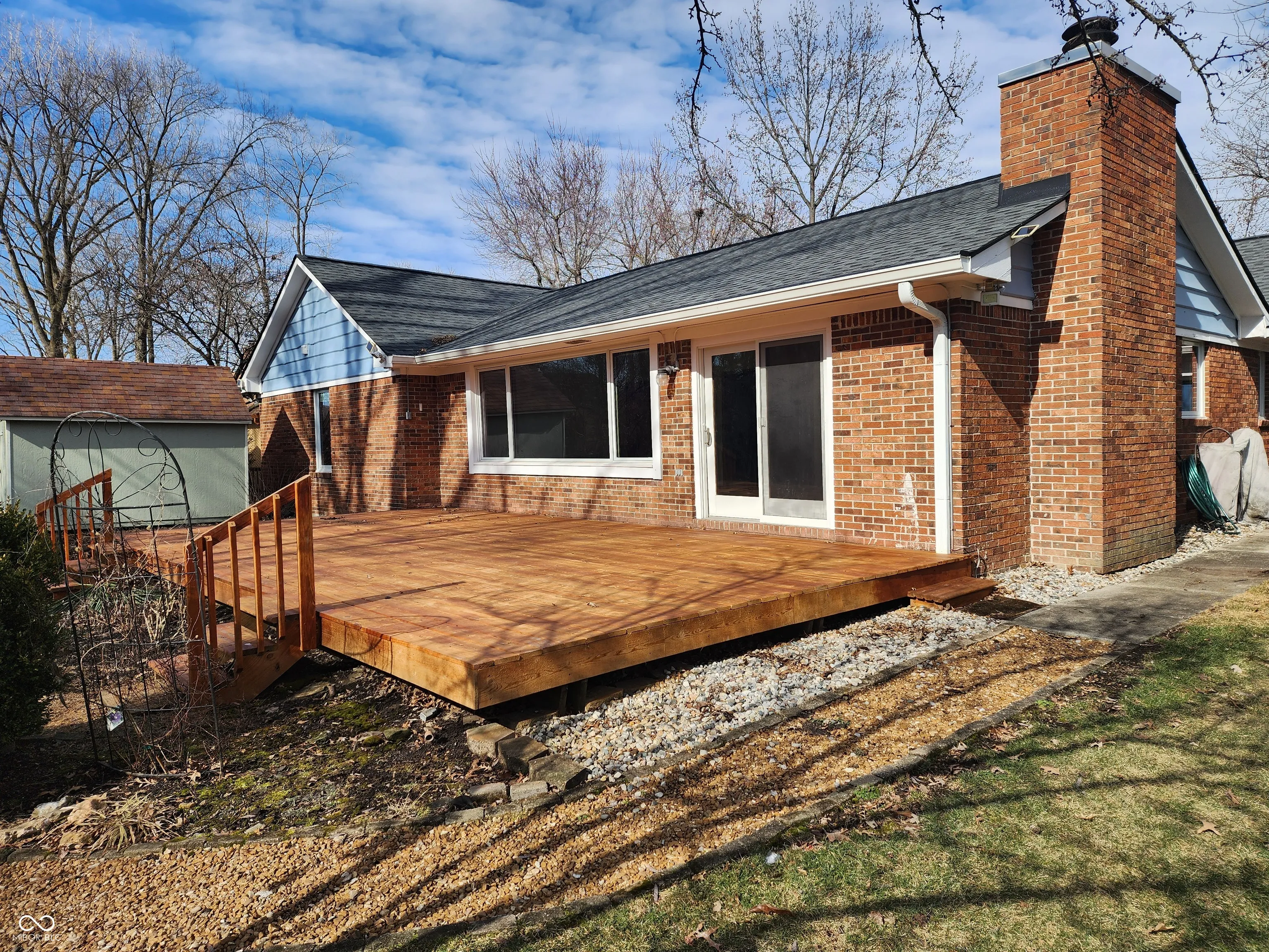 Eagles Nest awesome ranch. Full brick exterior with cedar wood trim. Real hardwood floors in entry, dining and hallway. Family room/hearth room. Big beautiful full windows overlooking great back yard. 31×16 deck built in 2023, firepit w/bench seating. Exterior decorative lighting in yard. Vaulted Family room with beamed ceiling, formal dining room with built in cabinets. Updated kitchen with full exterior vent over stove. Pull out drawers. Ceramic tile kit floors. Newer thermal windows. Screens are built in, you can pull them down or put them up. They are roll up screens! w remote control blinds. Hall bath with jetted walk in/sit down tub. Roof replaced 8 years ago. LED lights. New visqueen installed in crawl space. Large garage with cabinets for storage. Exit door from gar to back yard. Nice storage barn in back yard. Side load garage. Small foyer entry. Hearth room fireplace is masonry built with an insert with blower motor. Nice laundry room with cabinets and folding area. There are bird feeders and landscaping that stays with the house. Neighborhood clubhouse and pool included.