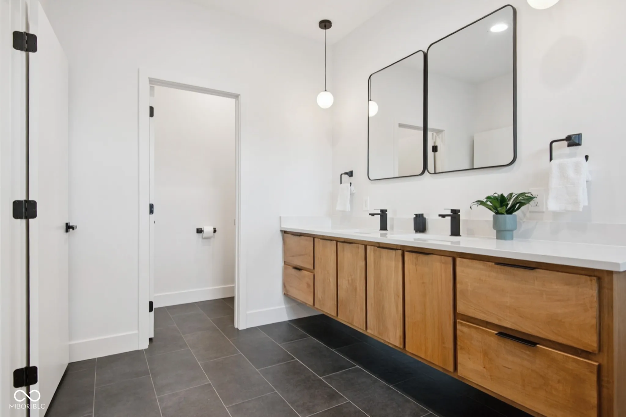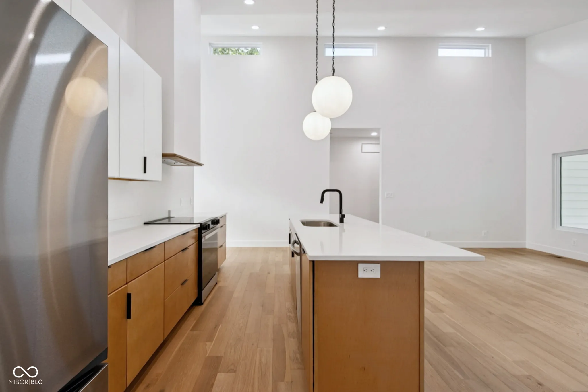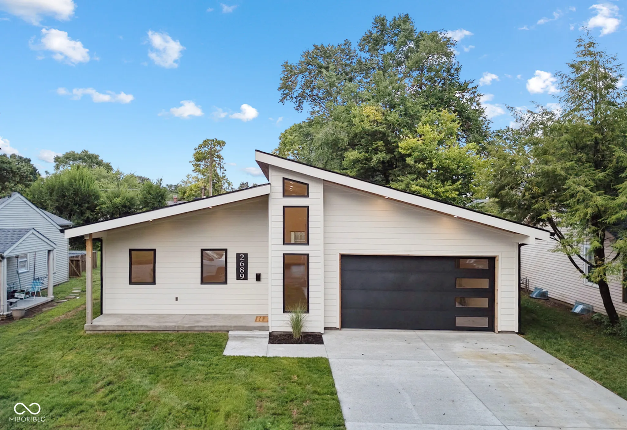 Welcome to 2689 Pearl St! This brand-new 3-bed, 2-bath home offers 1,900 sq ft of stylish living space with high-end modern finishes throughout. Featuring 16-ft ceilings in the main living and kitchen areas and 9-ft ceilings in the bedrooms, the home feels open, bright, and inviting. The kitchen includes quartz countertops, a butler’s pantry, custom cabinetry, and an open layout perfect for entertaining. Enjoy hardwood floors throughout the main areas and tile in the bathrooms and laundry. The spacious primary suite boasts a large walk-in shower, custom floating vanities, and excellent natural light. This thoughtfully designed home blends mid-century architecture with contemporary design elements to create a truly unique space. Located in one of the most desirable neighborhoods in Columbus, just minutes from Downtown, Donner Park, US-31, and I-65, this home offers exceptional access to amenities, parks, and schools. Don’t miss this rare opportunity to own a modern masterpiece in the heart of Columbus! Built by local builder Blackburn Properties and designed by Jim Blackstock of Process/Practice Studio.