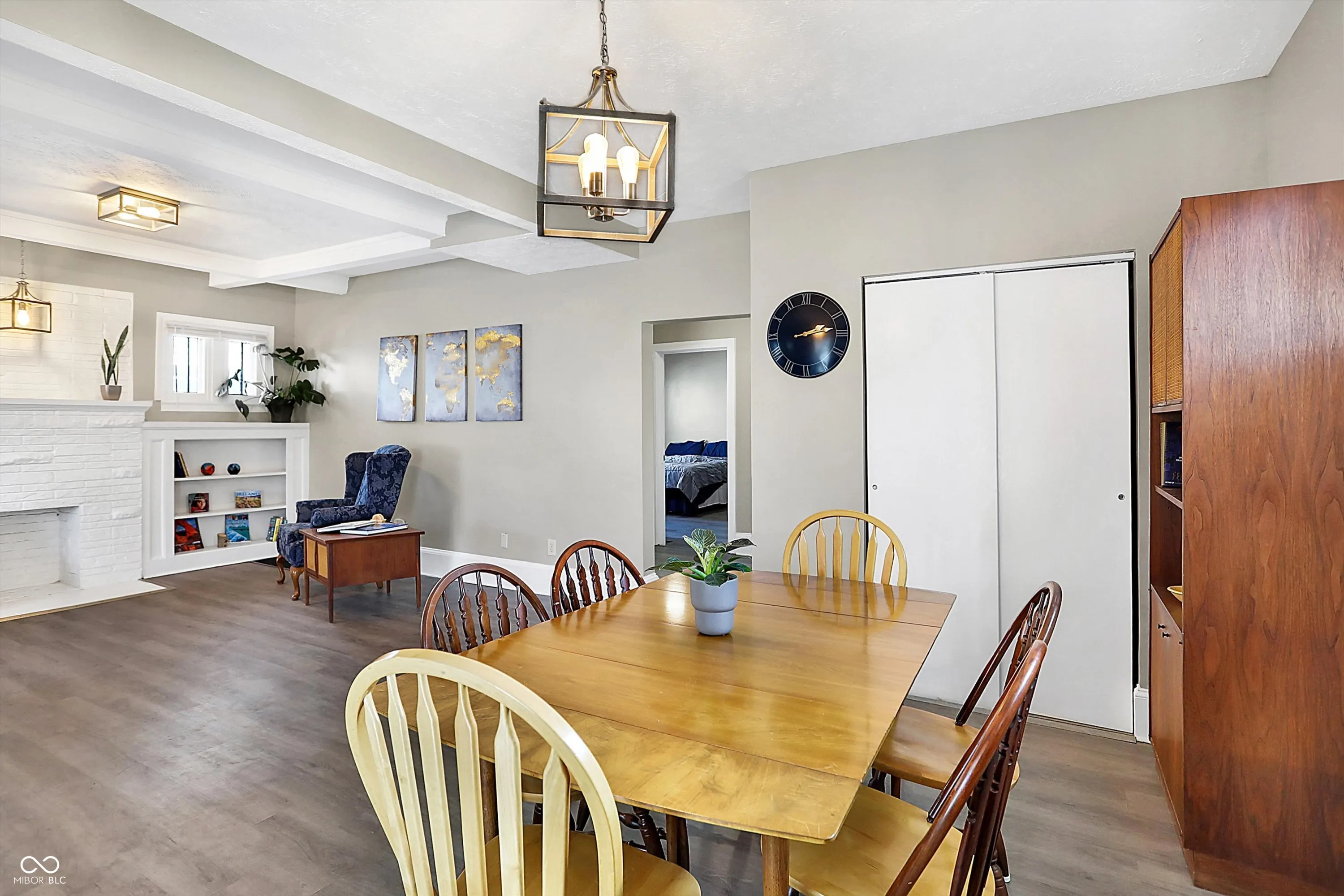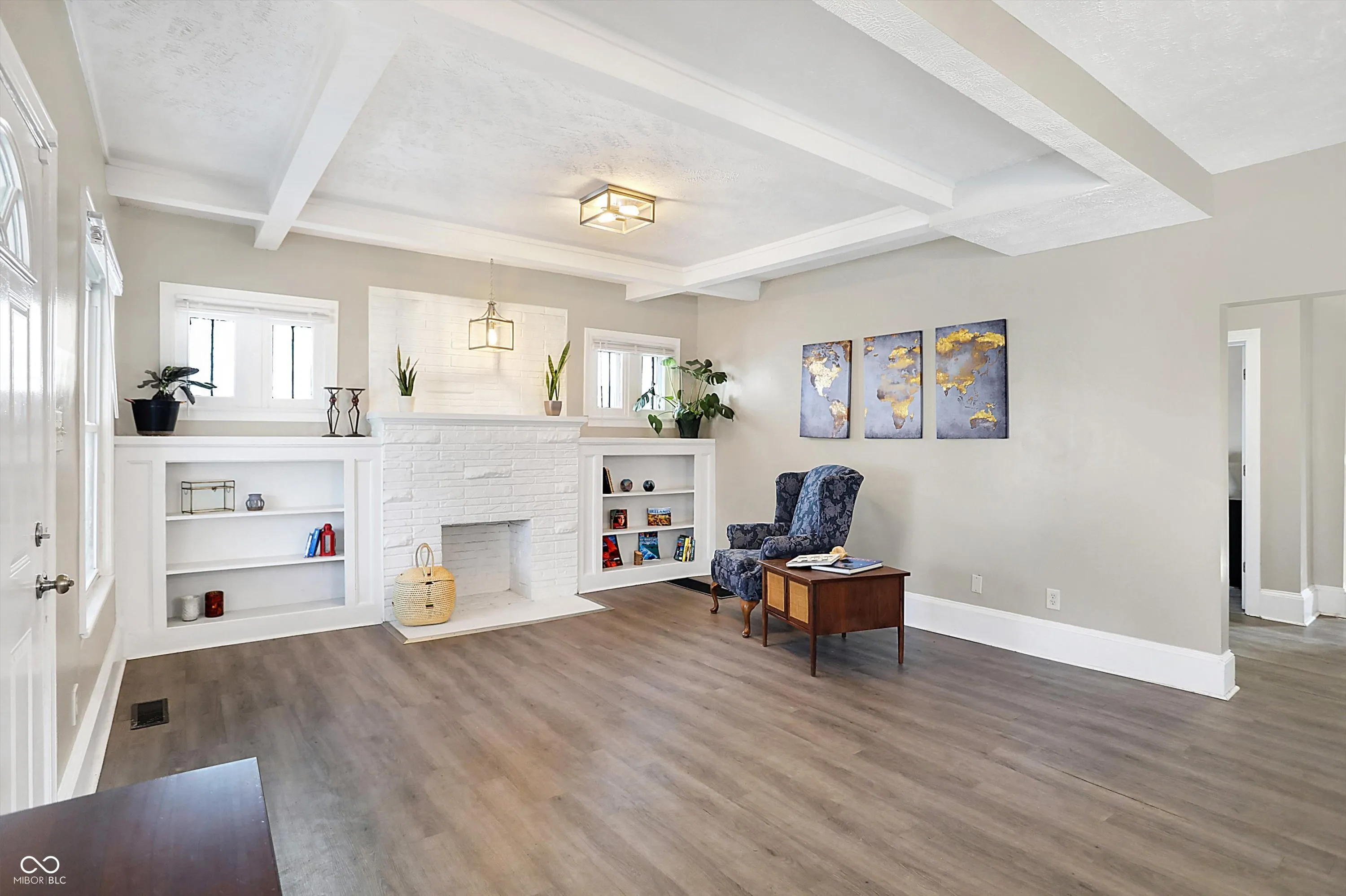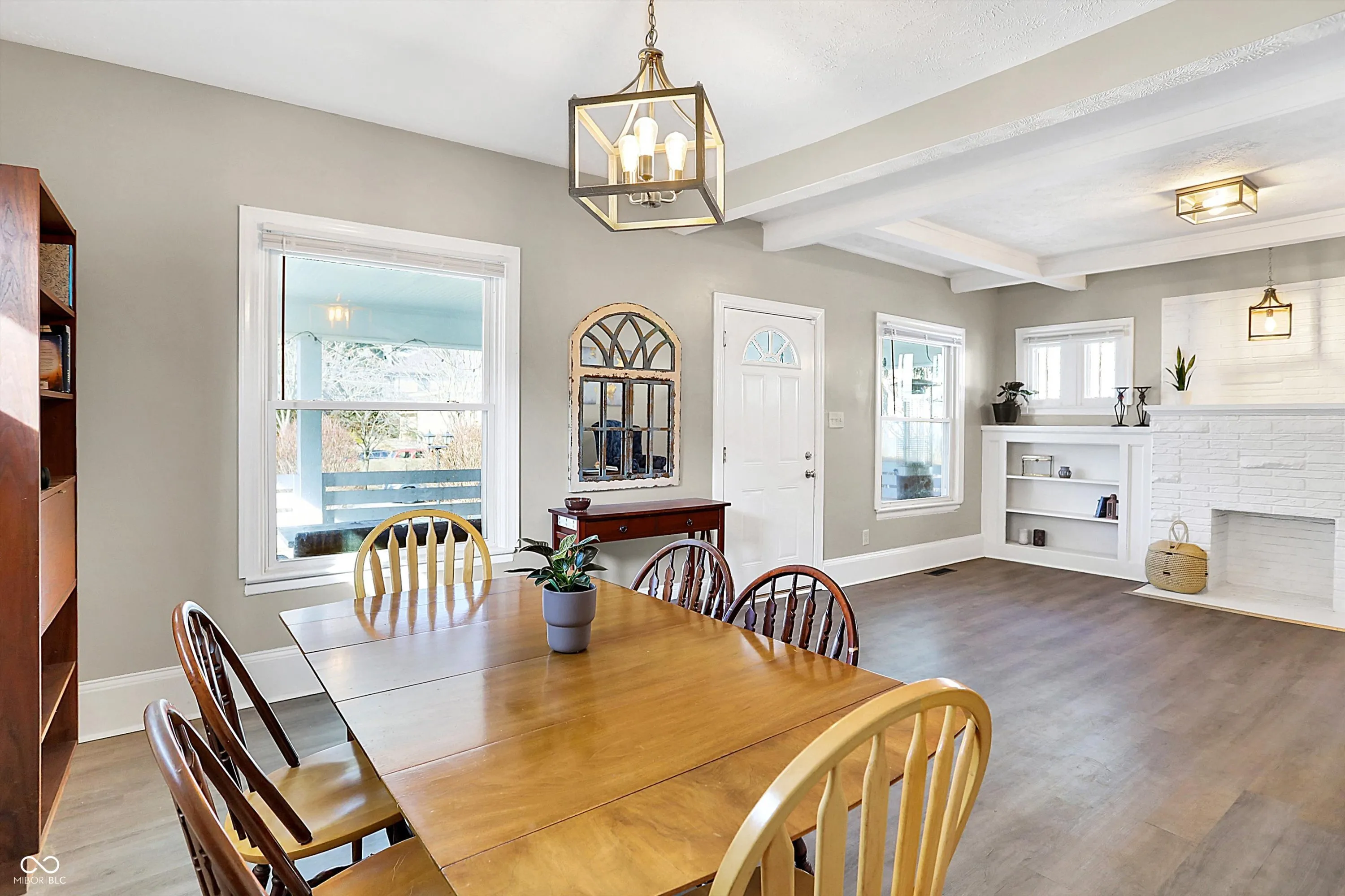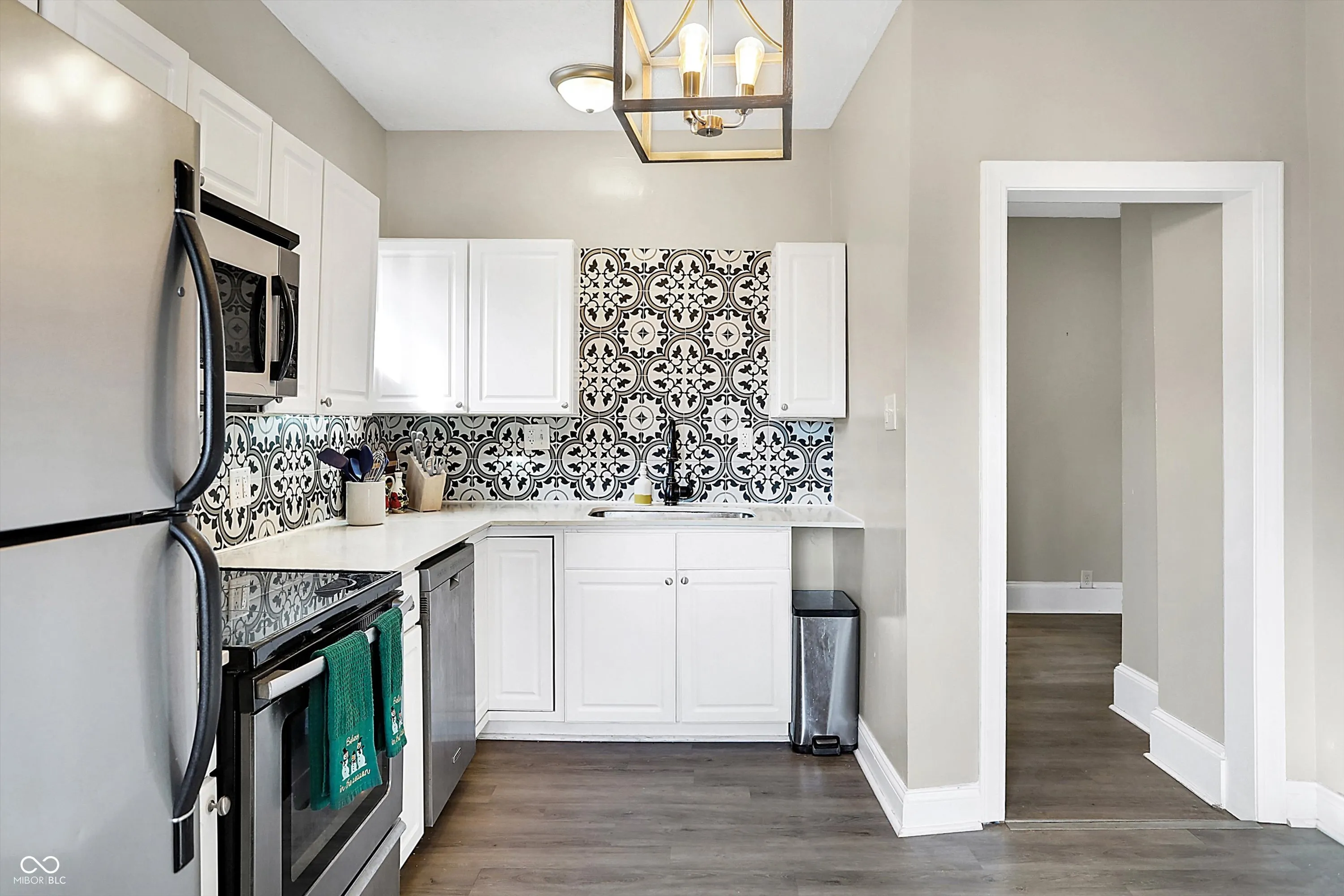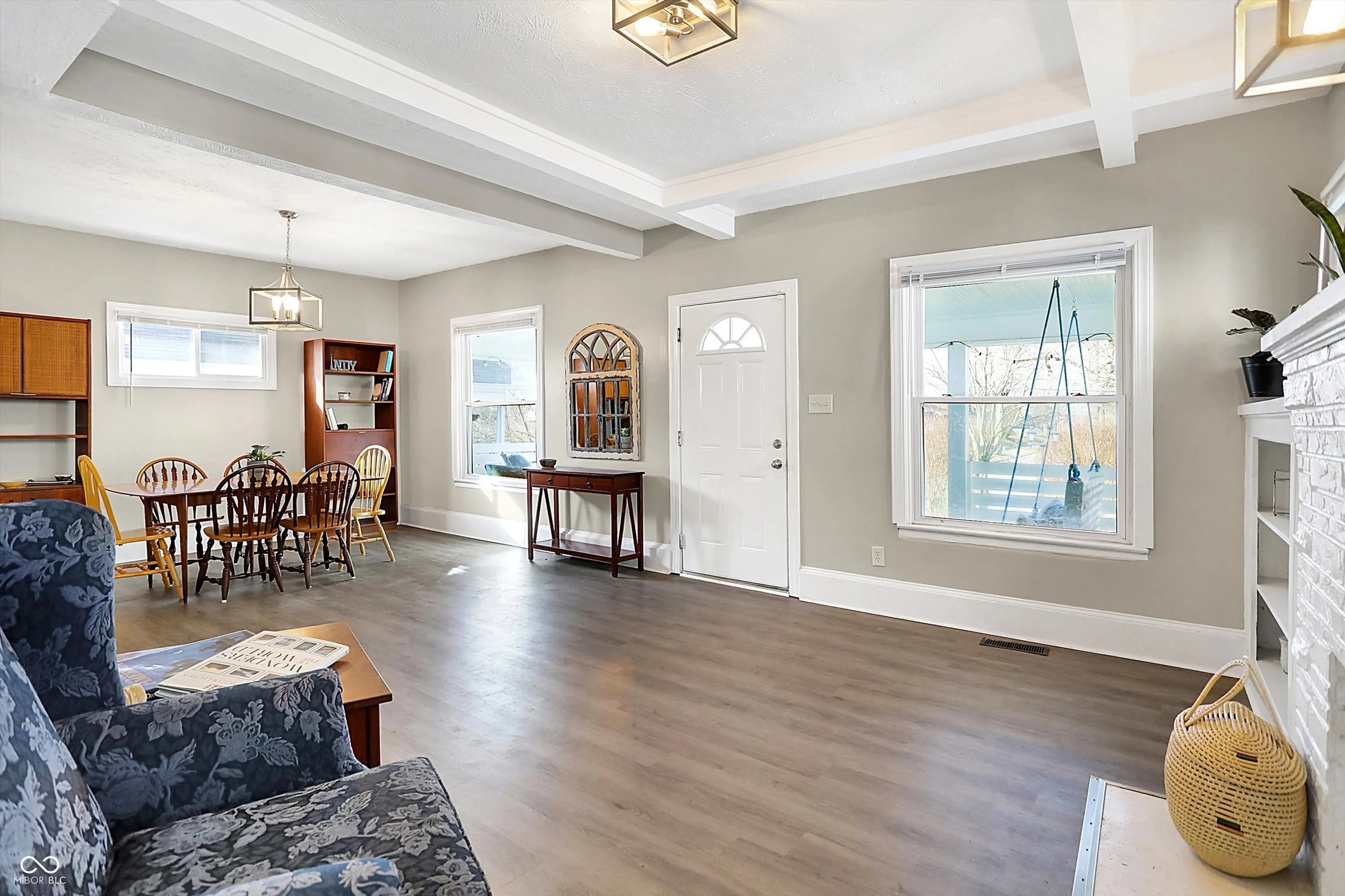 This delightful 3 bedroom, 2 bath home offers comfort, character, and plenty of space to enjoy. It’s bigger than you think! Relax on the large covered front porch with a swing, perfect for warm-weather mornings and evenings. Inside, the main floor features an open formal living and dining area with vinyl flooring, a decorative fireplace, and original built-ins, adding timeless charm. The cozy, updated kitchen boasts stainless steel appliances, while an inviting family room provides extra space for gathering and entertaining. The primary bedroom is conveniently located on the main floor, with two additional bedrooms and a shared full bath upstairs. Need storage? The unfinished basement is ideal for all your extra belongings. The fully fenced backyard offers ample space for gardening and outdoor activities. The home sits on a surprisingly spacious lot, giving you even more room to enjoy. Make sure you see the additional yard space beyond the garage! The two-car garage adds everyday convenience. Don’t miss your chance to make this charming Butler Tarkington home yours!