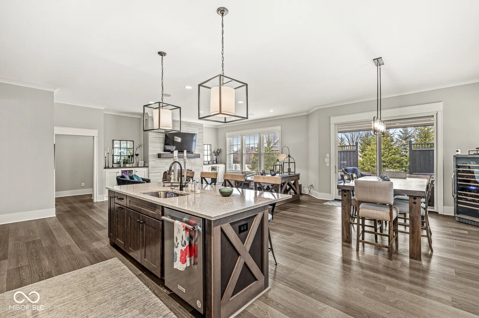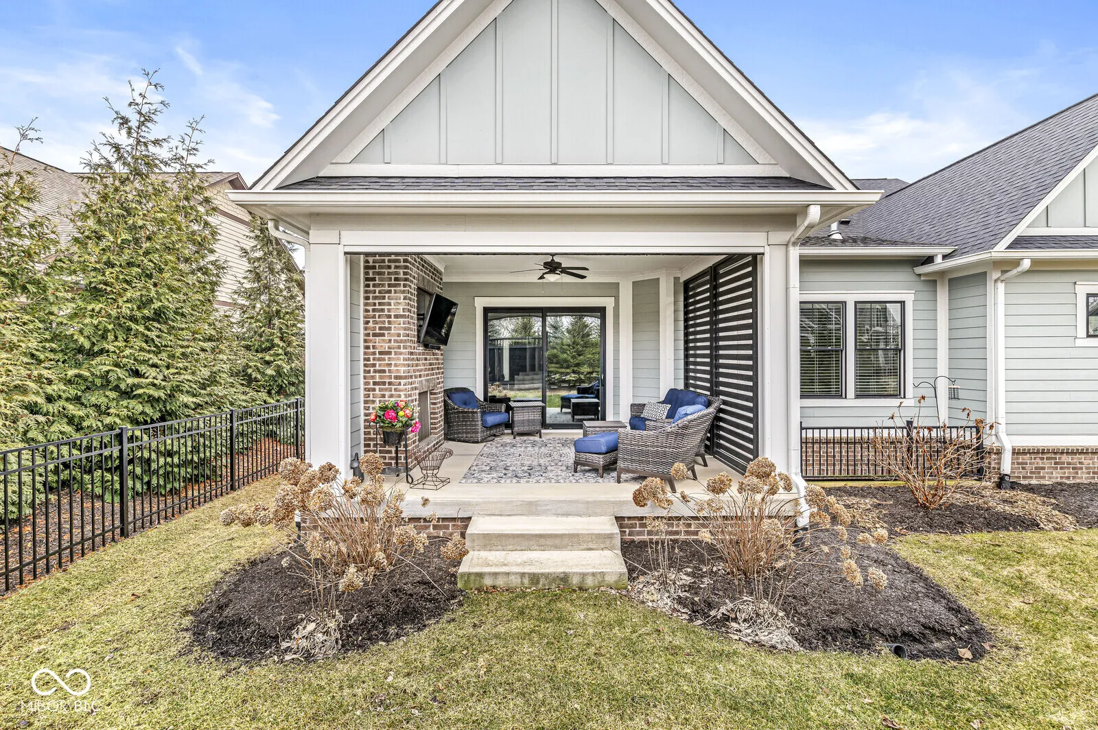 Welcome to this stunning, spacious ranch home that offers the perfect blend of comfort, style, and convenience. Boasting 10-foot ceilings and gorgeous hardwood floors throughout the main level, this home exudes warmth and charm. The main floor includes two spacious bedrooms, an office, and a beautiful open kitchen featuring a large pantry and bar-perfect for hosting gatherings. The family room offers a cozy fireplace, creating a perfect spot to unwind. Step outside to the covered veranda, where you can enjoy the fresh air year-round with a remote-controlled screen that can be lowered to close off the space. The back veranda also includes a fireplace and TV, ideal for outdoor entertainment. The finished lower level is a great extension of the home, featuring two additional bedrooms, a full bath, and a large rec room-perfect for family fun or relaxation. This like-new property is situated in a desirable Carmel location, providing both serenity and convenience. The garage even has a 240v outlet for an electric or plug-in hybrid vehicle. Don’t miss the opportunity to make this beautiful home yours!
