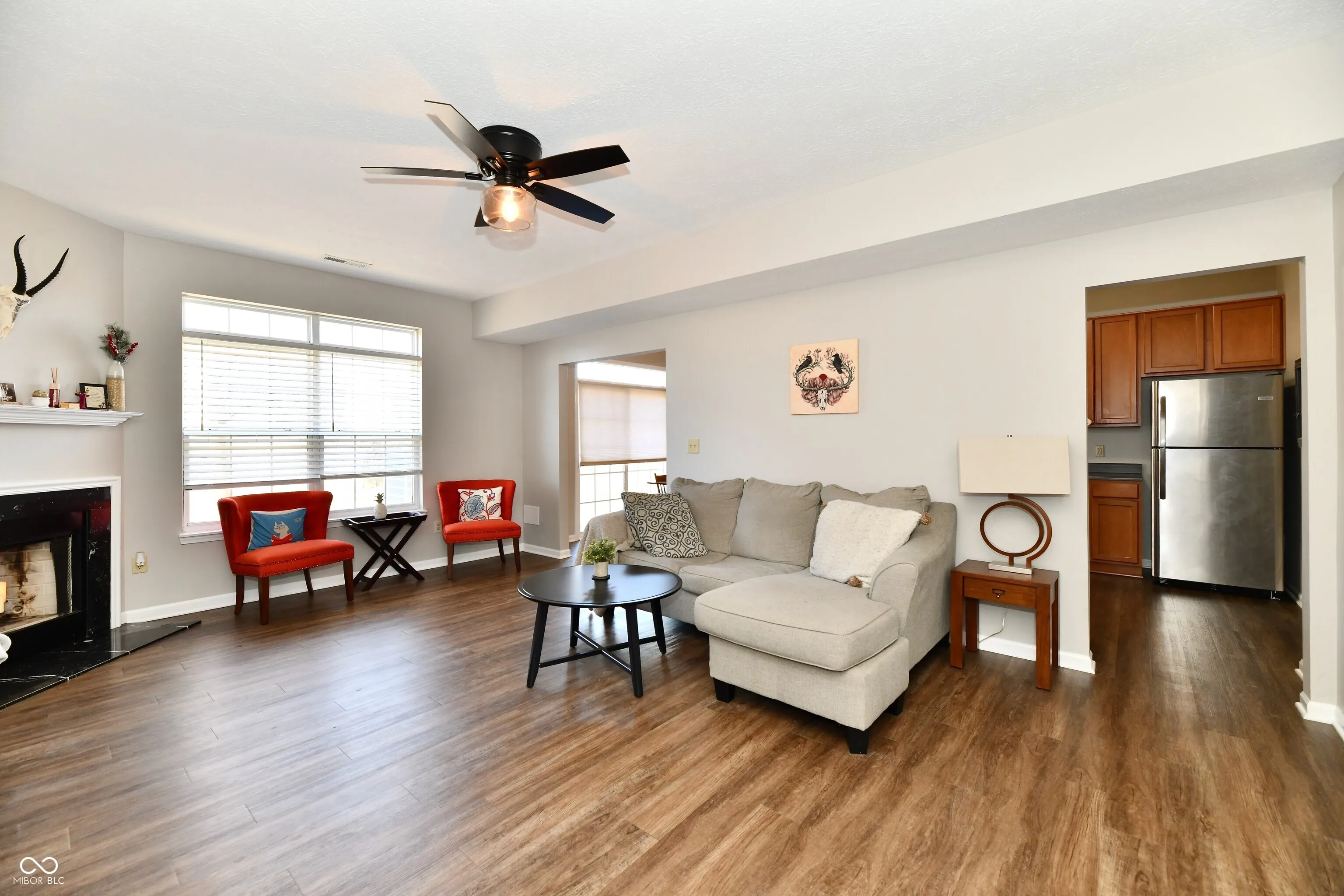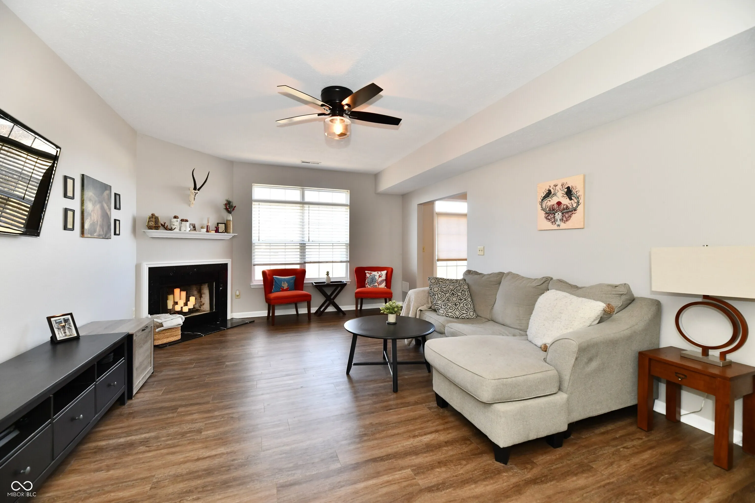 Welcome home to the Townes of Wellingshire in Perry Township! This beautiful 3 bedroom/2.5 bath condo nestled on a quiet street is move-in ready! New luxury vinyl plank flooring on the main floor, open floorplan with a huge Great Room that opens into the sun-filled kitchen and breakfast room. Upstairs are 3 over-sized bedrooms including the very large primary suite w/ walk-in closet, large vanity area, whirpool tub and shower. All secondary bedrooms have walk-in closets for storage galore! Upstairs laundry makes the chore of doing laundry super easy and convenient! Roof is less than a year old, dishwasher is new, new faucet in kitchen and bath. Ceiling fans/lights added in BR 2 and BR 3. Extra insulation added for energy efficiency. Enjoy the beautiful common areas in all four seasons, park/playground, neighborhood pool and the sitting area on your covered front porch. Full 2 car garage with extra storage area as well. Located right off of I-69 and Southport Road. Close to shopping, restaurants, schools, parks and more yet feels like quiet living in this neighborhood.