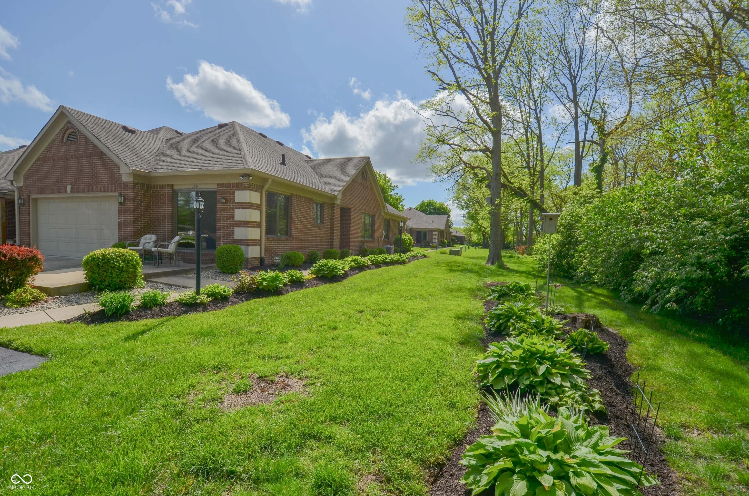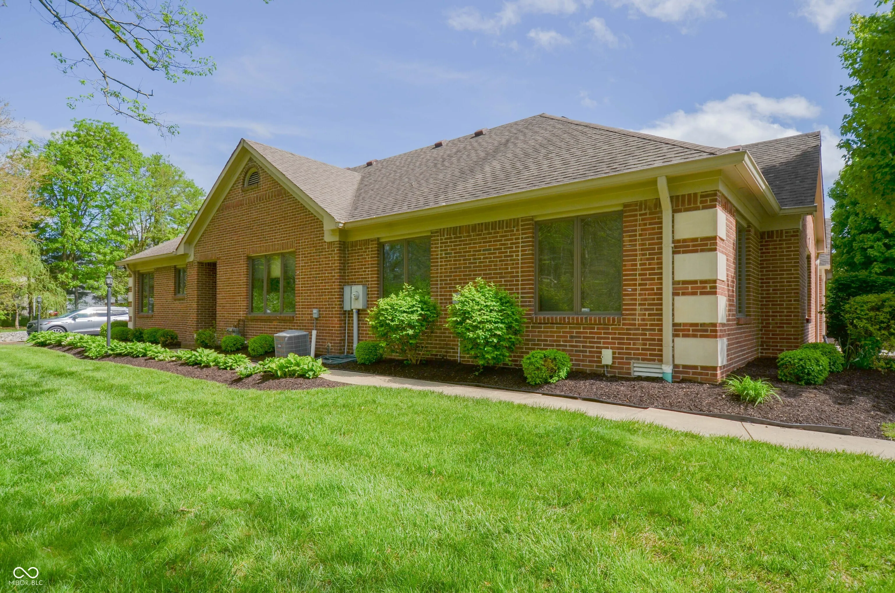 This 3 bedroom 2 bath low maintenance condo home was built by Mike Duke. One story. Great location. Nestled all the way back on the corner. The beautiful great room has a vaulted ceiling and electric fireplace and plant shelf. Ceramic tile entry. Wood casement windows, stained trim, 6 panel doors. Beautiful landscaping leads to the front door. Security system. Laundry room has laundry tub. New roof and gutters 11/2023. New water heater 7/2024. Garage carpet is just laying on concrete, it can be taken up easily. Center Grove schools. Close to I69, restaurants, drugstores and groceries.