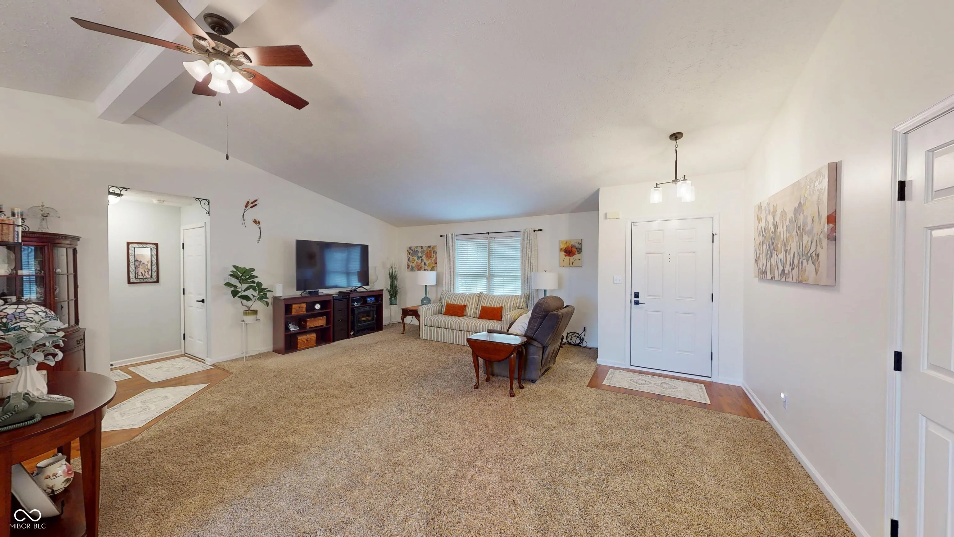 This beautiful open and spacious home features a split floor plan, vaulted ceilings, and abundant natural light. The great room and kitchen/dining area offer an inviting flow, while the main bath boasts a double vanity. The double-sized second bedroom can easily be converted into two rooms with its extra space and dual closets. Nestled on a .67-acre two-parcel lot in a quiet neighborhood, enjoy a wood deck, lush landscaping, and a private tree-lined yard. Recent updates include: New deep kitchen sink, faucets, & light fixtures, updated electrical outlets & door handles, new shower door/toilet, & gutter guards, new smart ultra quiet dishwasher, disposal, new smart garage door opener springs & hardware, and new Levelour window blinds. A perfect blend of comfort and modern touches-schedule your showing today!