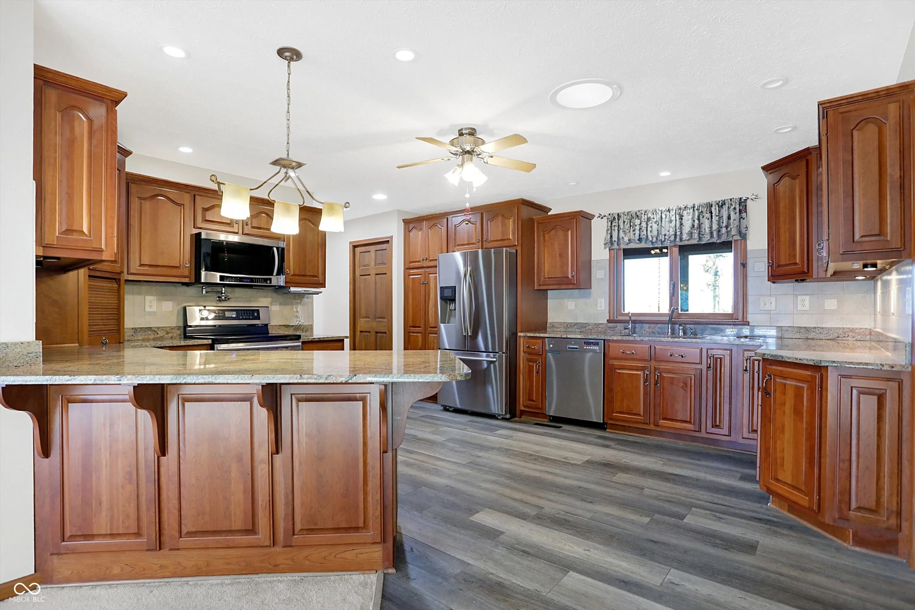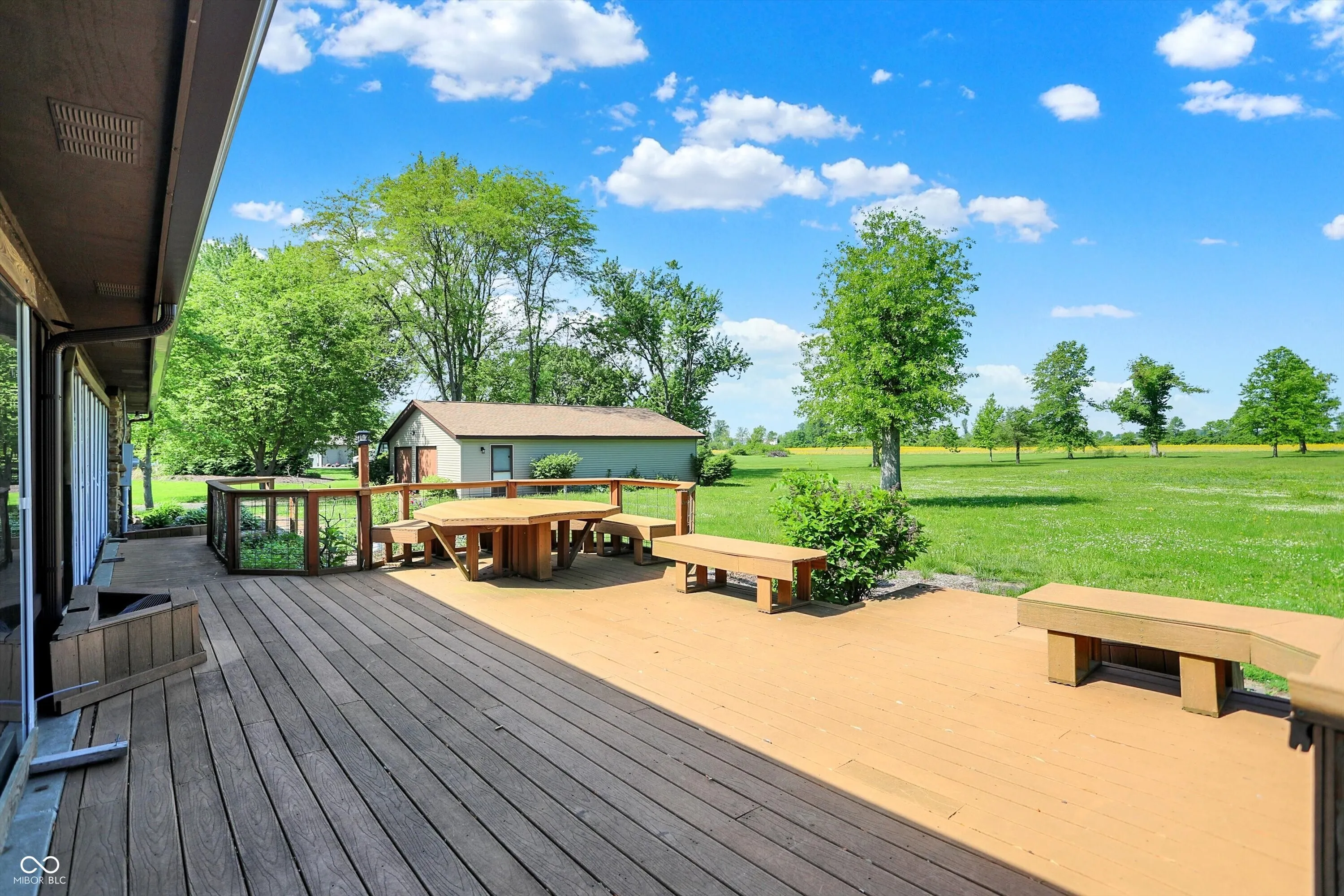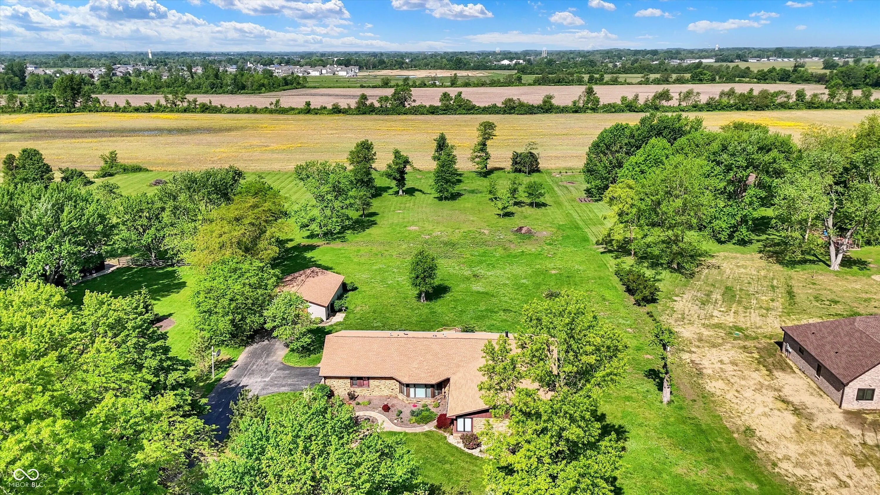 Nestled in the tranquil surroundings of Whiteland, IN lies this exquisite custom-built home, built by renowned local builder Bill Bullock. This property offers an idyllic country lifestyle on a sprawling 3-acre lot. With 5 bedrooms and 3 bathrooms, this property caters to both comfort and elegance. The heart of this home is a generously sized kitchen equipped with updated appliances, skylights for abundant natural light, granite countertops, and custom cherry wood cabinets featuring unique pull-out shelves-a perfect setting for culinary adventures, including a convenient hot water pot filler. The open layout seamlessly connects the kitchen to the living room and dining room, both adorned with updated bay windows that provide serene views of the lush front and expansive backyard, which opens to picturesque farmland vistas to the west. The sunsets are a sight to behold from the back patio! The dining area includes a storage bench under the bay window, and leads to a deck that boasts a built-in stainless steel charcoal grill and a hexagon table for ten, perfect for entertaining. The master suite is a true retreat, featuring a spacious layout, an en-suite bathroom with a double vanity, standing shower, whirlpool tub, and ample walk-in closets. Storage is plentiful throughout the home, which also includes a two-car attached garage and a large 30×40 detached garage, offering versatile space for vehicles or a workshop. The property’s vast acreage invites endless possibilities for outdoor activities and gardening, adding to the appeal of a home that combines the charm of rural living with the convenience of no HOA restrictions. This meticulously maintained home with a roof less than two years old is a sanctuary of peace and privacy, promising a quality of life that’s hard to find
