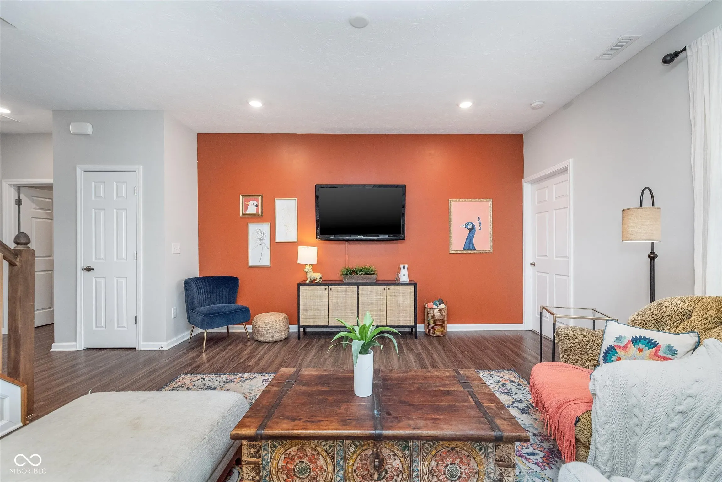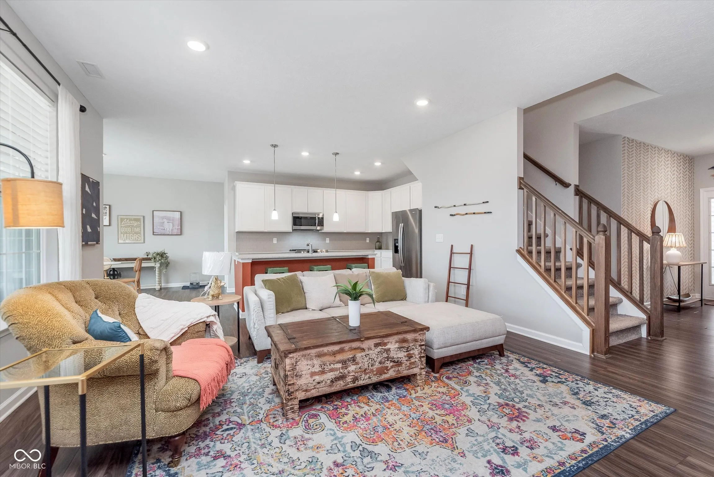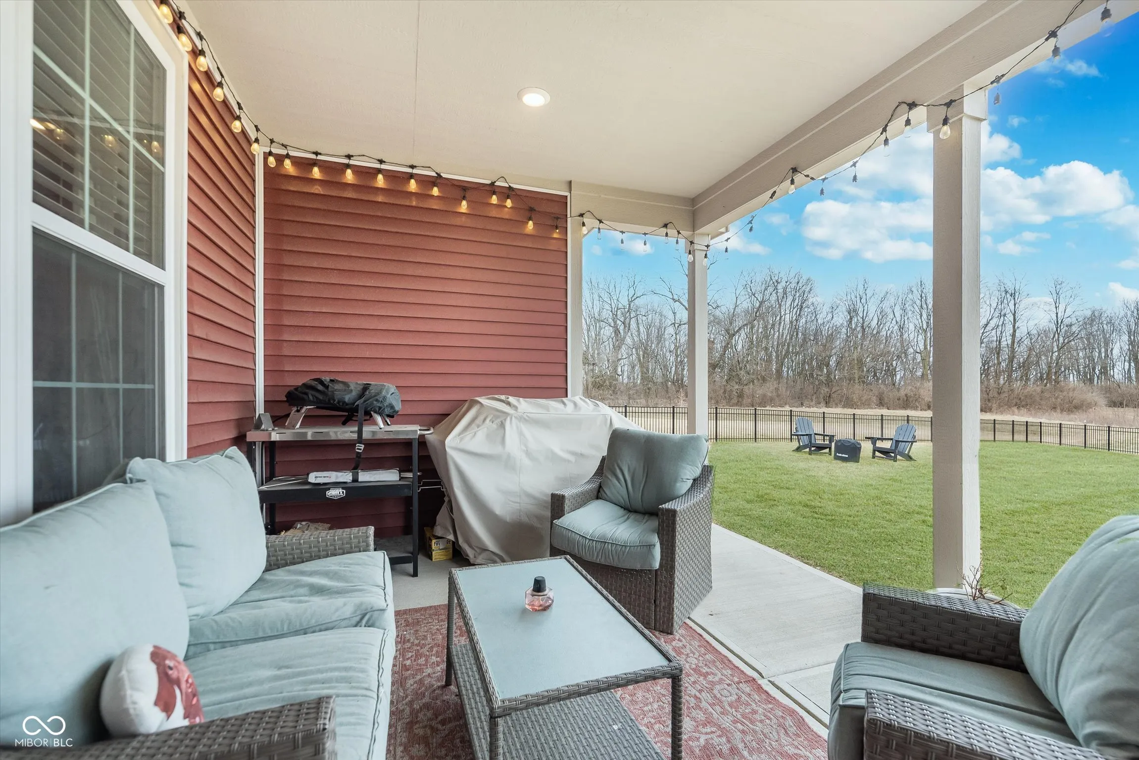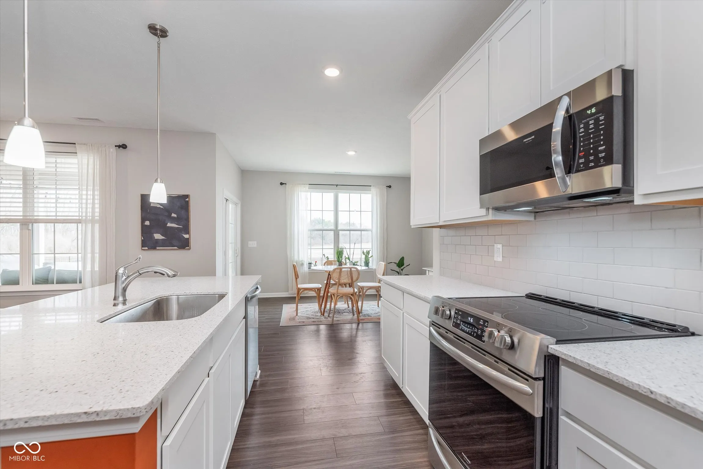 Welcome to this charming, nearly new ranch home with a spacious bonus room, located in the low-maintenance community of Orchard View. Step inside from the covered front porch to find 9′ ceilings, wood laminate floors, and an open-concept layout. The kitchen features quartz countertops, 42″ white cabinets, a tile backsplash, stainless steel appliances (with a gas hookup for the range), and plenty of storage, including a walk-in pantry. The great room is extended and seamlessly connects to a bright and cozy breakfast nook. Enjoy the privacy of a split floor plan. The owner’s suite includes a tray ceiling, double marble vanities, a tiled walk-in shower, and a large walk-in closet. Upstairs, the massive bonus room offers endless possibilities. The laundry room is equipped with a water softener hookup. Outside, the backyard oasis is fully equipped with an irrigation system, a wrought-iron fence with gates, no homes behind, and an extended covered patio. Enjoy easy access to the neighborhood’s exercise park and playground, as well as being conveniently located near Grand Park, downtown Westfield, and US 31.