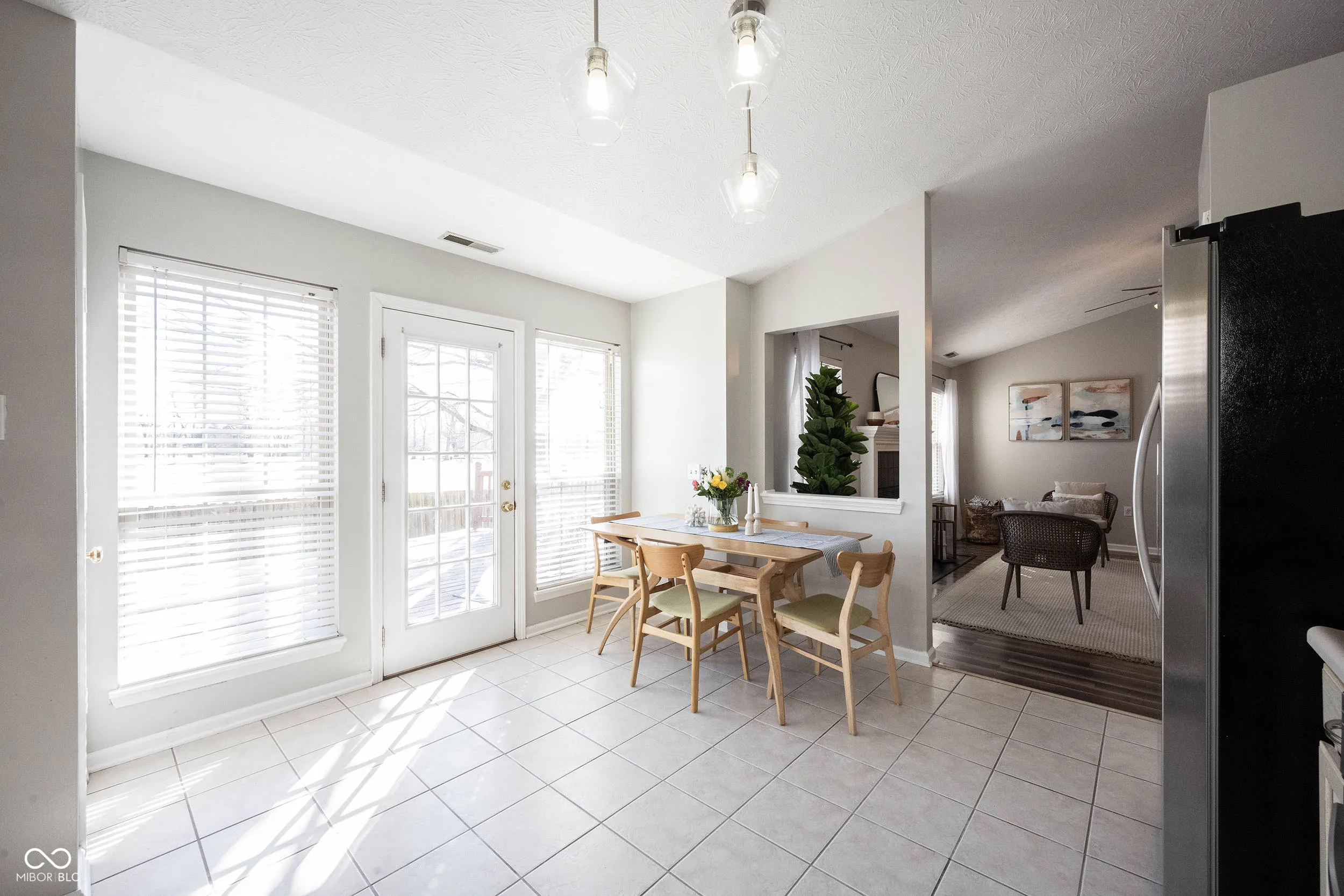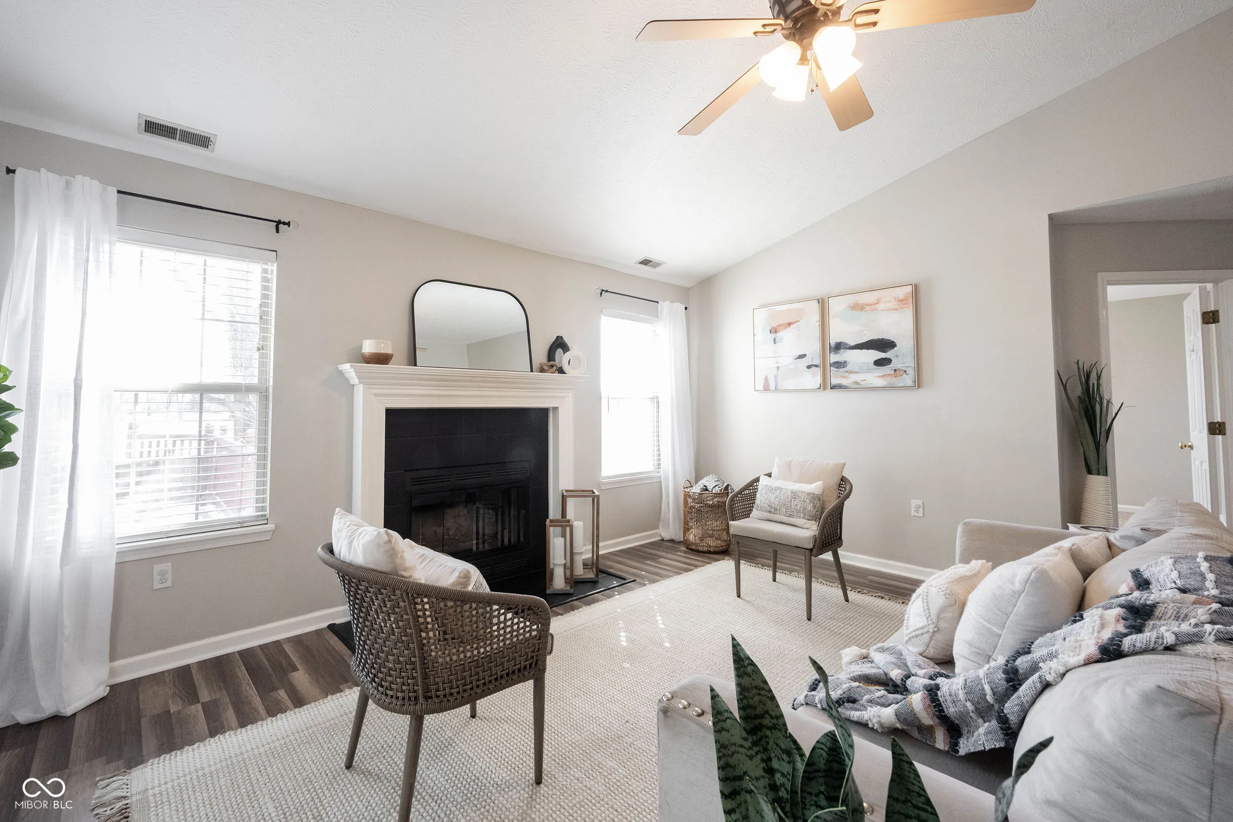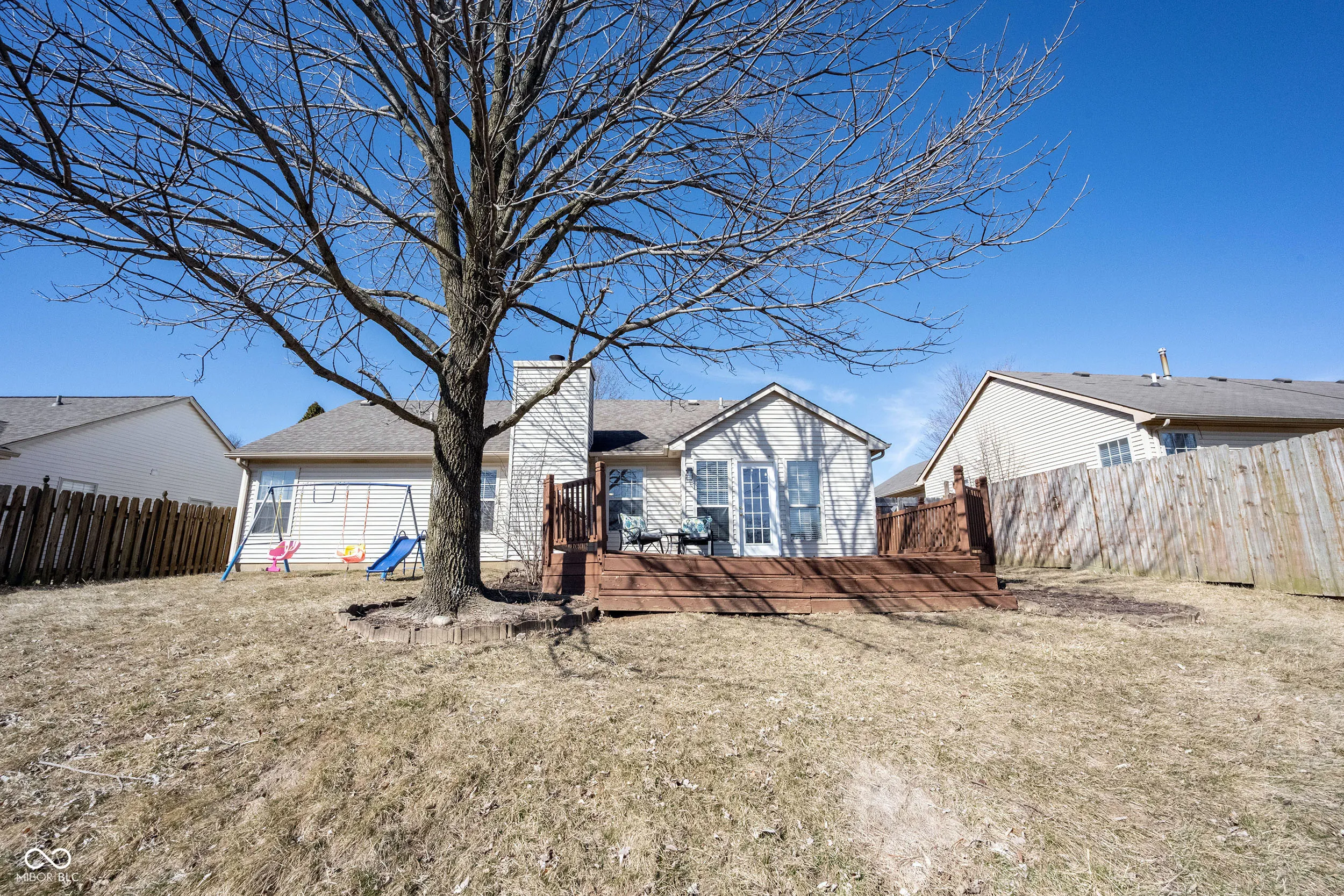WOW! Steps from Cumberland Park in Fishers. Wonderful neighborhood in the Bradford Ridge Community. This split floorplan with side load garage is ideal with 3 bedrooms and 2 bathrooms. This ranch style home features neutral paint throughout, a wood-burning fireplace, soaring ceilings with natural light, and updated laminated hardwood flooring. Kitchen offers a dishwasher, new stainless steel appliances including refrigerator, range and hood; 2 pantries provide extra storage; natural light also floods the kitchen with access to a fully fenced backyard. Off the kitchen is a large finished deck for entertaining in the summer or relaxing in the fresh air. Primary bedroom with ensuite includes tub/shower combo, sink, vanity area; and walk-in closet. 2 sizeable guest bedrooms with great closet space and a second bath completes this gem. Brand new furnace and water heater installed in 2024. Laundry room connects to garage entrance. 2-car attached sideload garage with shop table. Property taxes will significantly reduce once new owner files exemptions. Location is close to shops, restaurants, Fishers Event Center and Interstate 69. Fantastic HSE Schools.
