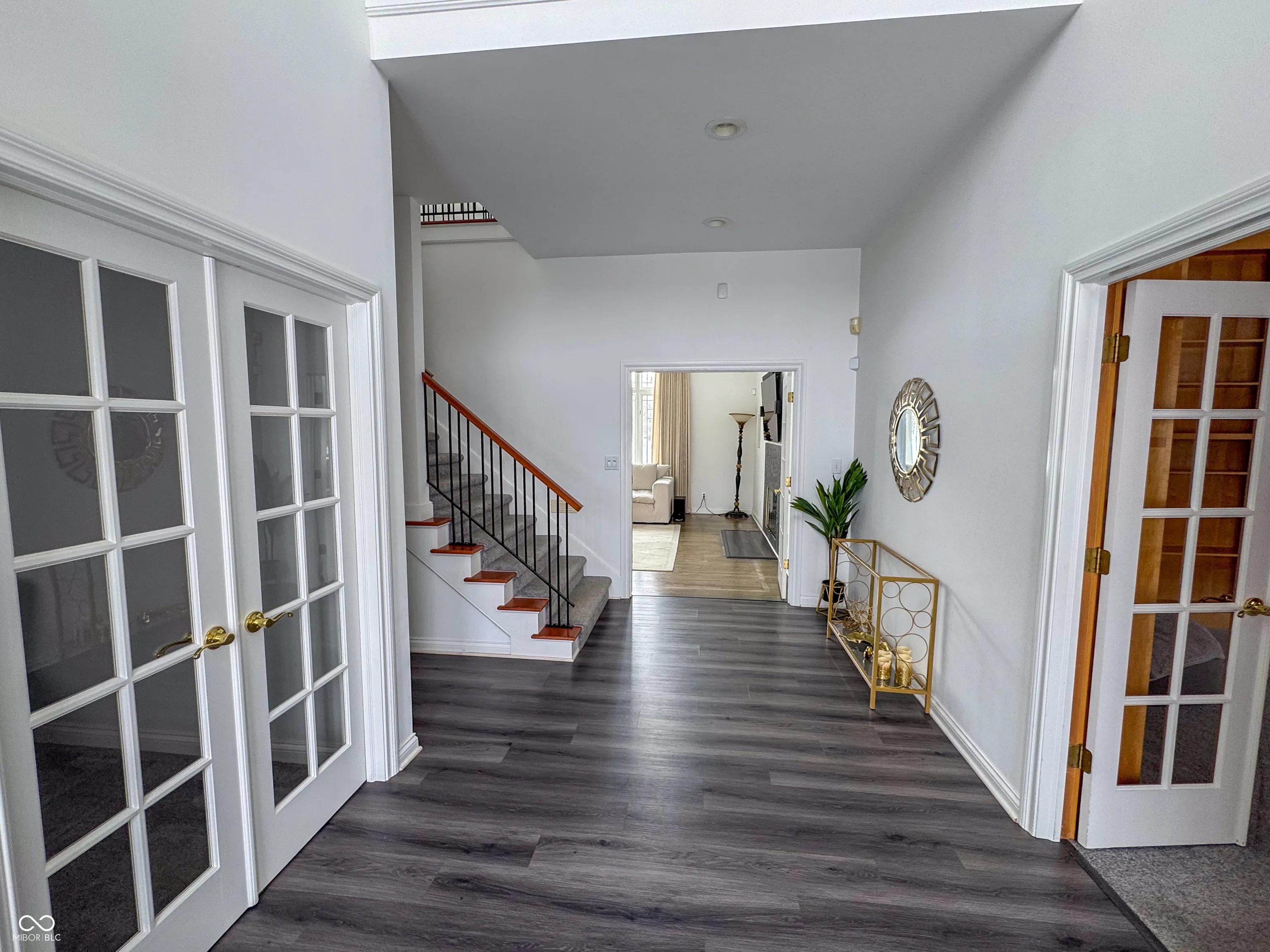 Situated on just over 2 acres, this impressive custom-built home by J. Greg Allen blends timeless elegance with everyday functionality. The expansive backyard offers endless potential-perfect for entertaining, recreation, or future additions. Key exterior upgrades include a modernized plumbing system prepped for an in-ground pool and a full irrigation system to maintain the professionally landscaped grounds. Inside, you’ll find luxury vinyl plank flooring throughout the main level and new carpet upstairs, both installed with attention to detail and comfort, including a premium moisture barrier pad. Natural light floods the grand two-story foyer, leading into a versatile floor plan that includes a main-level bedroom-ideal for guests or multi-generational living. The chef’s kitchen features solid maple cabinetry, a large center island, and a cozy breakfast nook with peaceful views of the backyard. The living room, with its soaring ceilings and updated fireplace, is both welcoming and impressive. Upstairs, the spacious primary suite includes a spa-inspired bath and walk-in closet, while a unique library suite with two private offices offers the perfect setup for remote work or quiet study. Located in a sought-after area with top-rated schools, this property combines space, style, and thoughtful updates-making it a rare find in Center Grove.