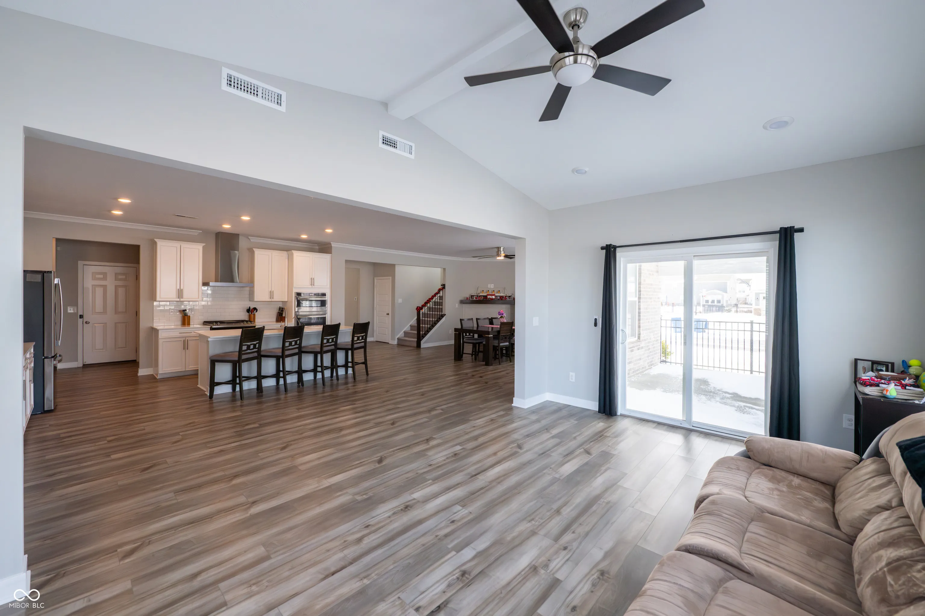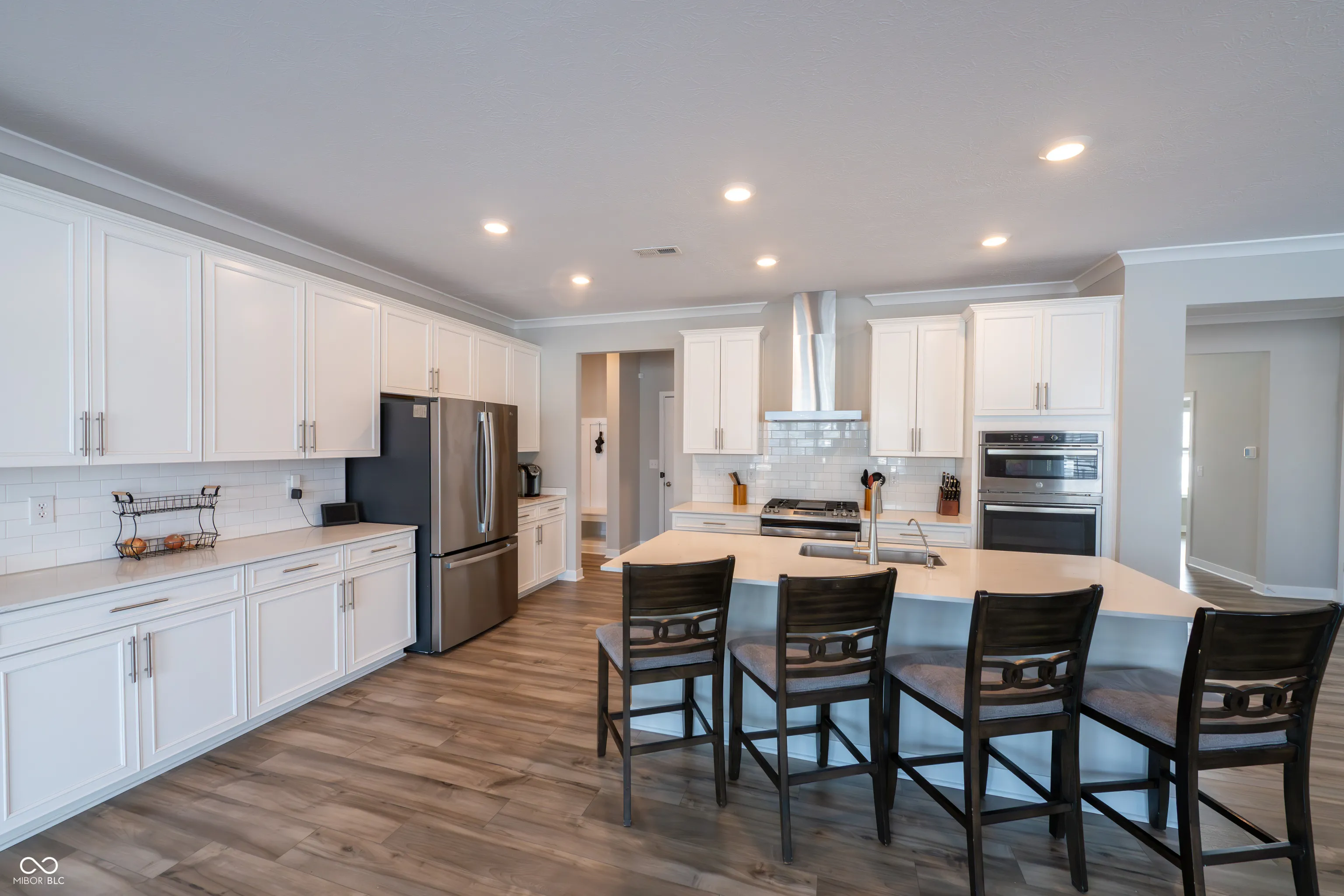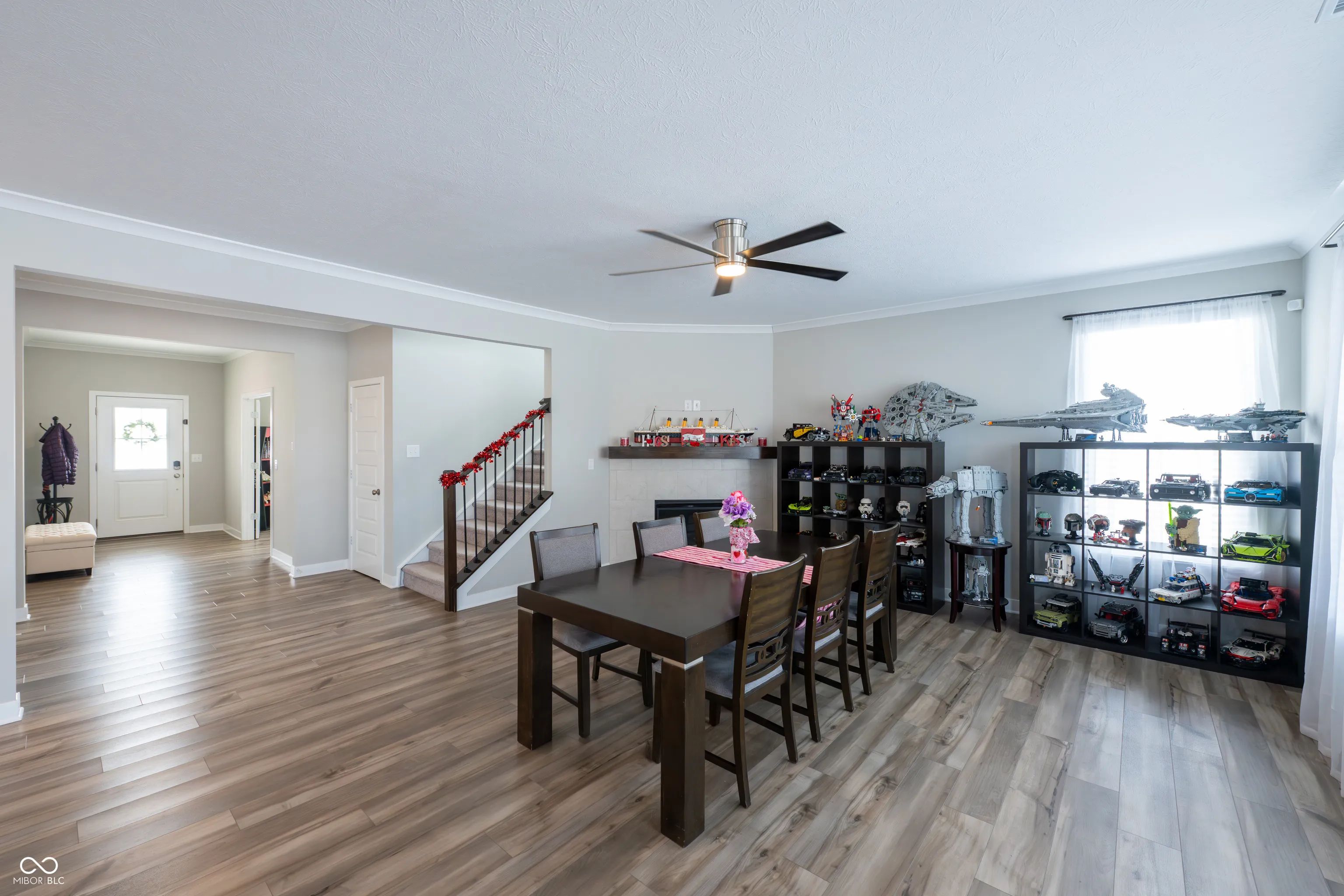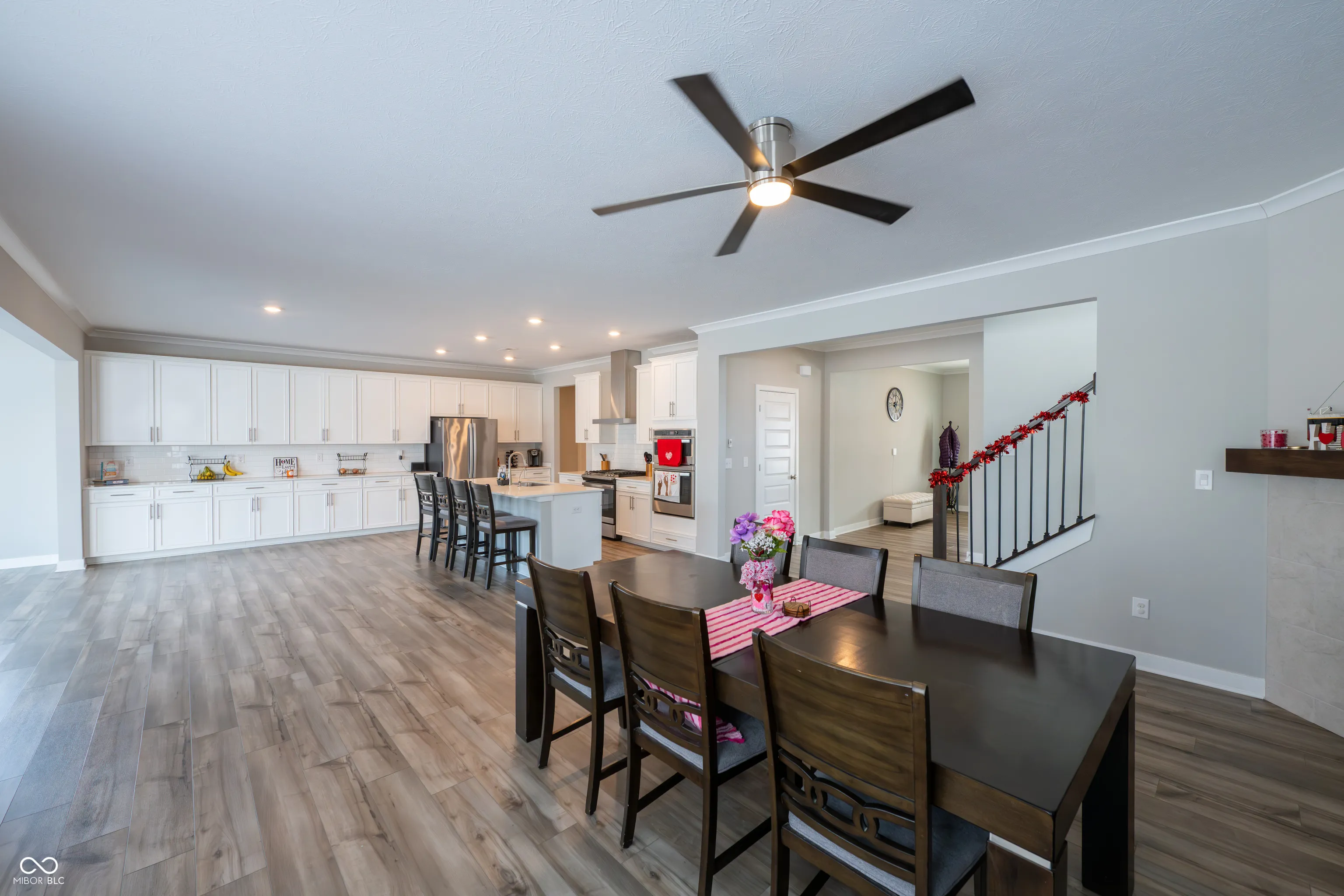 Tucked away on a prime corner lot in Fishers, this spacious 5-bedroom, 4.5-bathroom home offers over 1/3 acre of fully fenced outdoor space with an enormous play structure and a serene pond view. Inside, an abundance of space awaits, designed for both comfort and convenience. The main level features a private guest suite with its own full bath, perfect for visitors or multi-generational living. A dedicated home office with glass French doors provides the ideal workspace. The expansive kitchen, sunroom, and family room with a cozy gas fireplace create a seamless flow for everyday living and entertaining. The kitchen is well-appointed with stainless steel appliances, a tile backsplash, extra cabinetry for storage, and a walk-in pantry. Upstairs, the primary suite is a true retreat, offering enough space for a sitting area or coffee bar, plus a spa-like walk-in shower for a luxurious experience. The second floor also includes a huge loft for additional living space, a third bedroom with its own en-suite bath, two additional bedrooms, a full hall bath, and a convenient upstairs laundry room. The three-car garage setup provides incredible versatility, featuring a side-load two-car garage with an extended 2.5-car depth, perfect for a workbench or extra storage. The separate third-car garage includes a pedestrian door leading to the backyard, adding convenience for outdoor projects or easy access to the fully fenced space. Enjoy the outdoors from spring to fall with a charming covered patio, perfect for entertaining. Ideally located near The Yard at Fishers District, Hamilton Town Center, and with quick access to I-69, this home is close to top dining, shopping, and entertainment. Don’t miss the opportunity to make this incredible home your own!