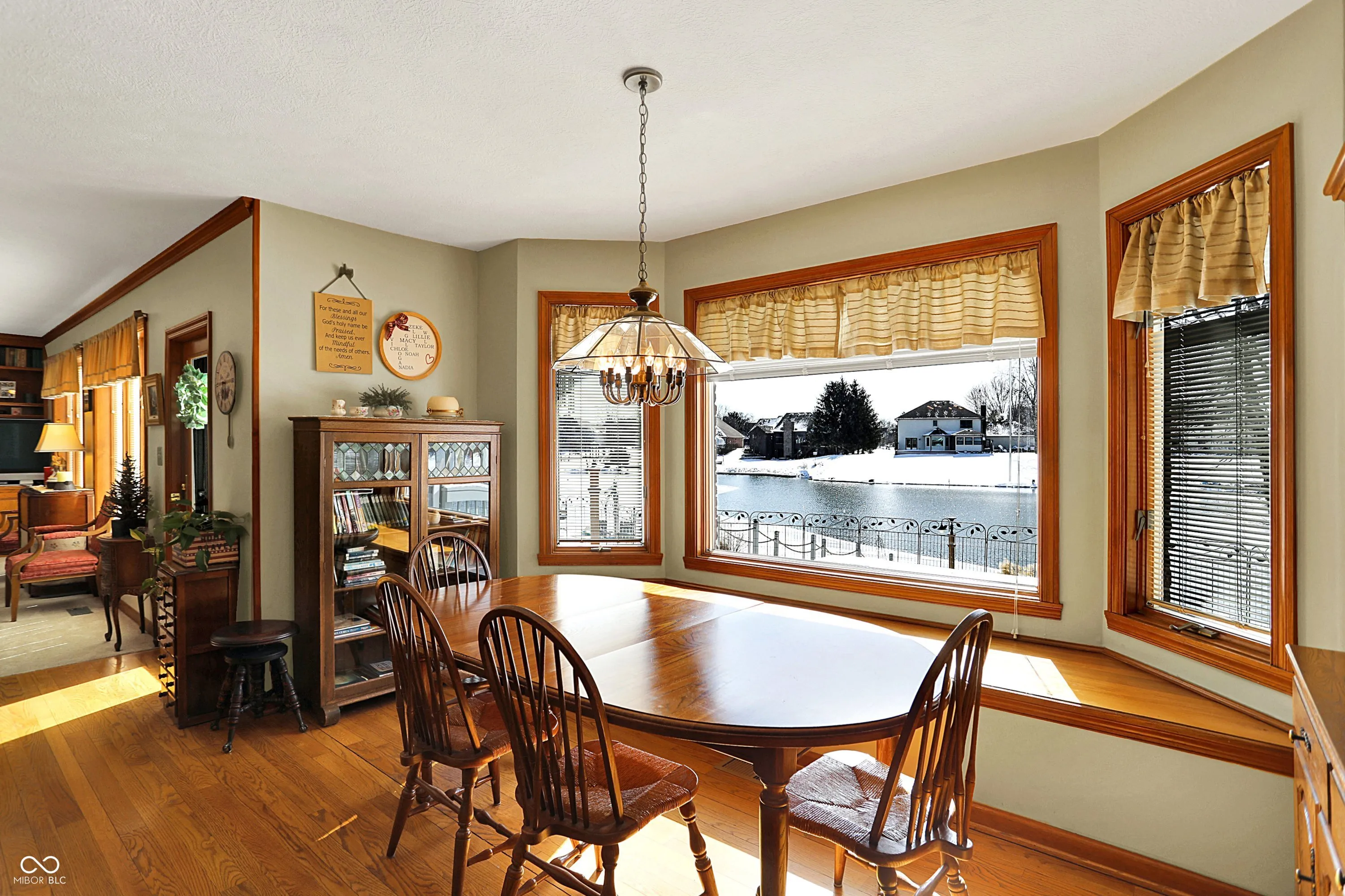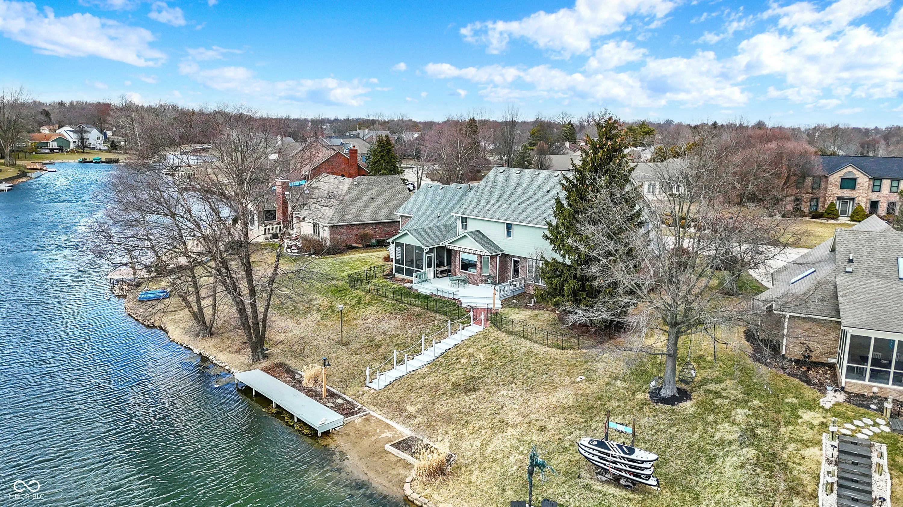 Welcome to this beautifully custom built, lakefront retreat, offering breathtaking views and unparalleled access to fishing boating and a private backyard beach on 7.5+ acre lake. Whether you’re looking for tranquility or adventure this home has it all. Step inside to a grand two-story entry leading to a versatile space that can serve as a home office or formal dining room. The spacious living and family rooms provide the perfect gathering spots with the family room featuring a cozy gas fireplace and beautiful views of the lake. The gourmet kitchen boasts custom Corsi cabinetry, quartz countertops, SS appliances, 5 burner gas range and a breakfast bar. The dining area is drenched in natural light from the massive windows, offering picturesque lake views. A full bath on the main level adds convenience, making it perfect for guests, family or freshening up after a day at the lake. Start your mornings on the screened patio or relax on the large wood deck overlooking the lake, complete with a retractable awning for added comfort. Upstairs, the oversized master suite features vaulted ceilings, walk-in closet, spa like private bath with double sinks, whirlpool tub and a separate shower. All bedrooms are generously sized including the huge 31×21 4th bedroom, perfect for a game room, office, or additional living space. This home is a rare opportunity to enjoy lakefront living at its finest. Home is located in highly rated school district of Mt. Vernon-ranking among the top school districts in Indiana. Don’t miss your chance-schedule a showing today!