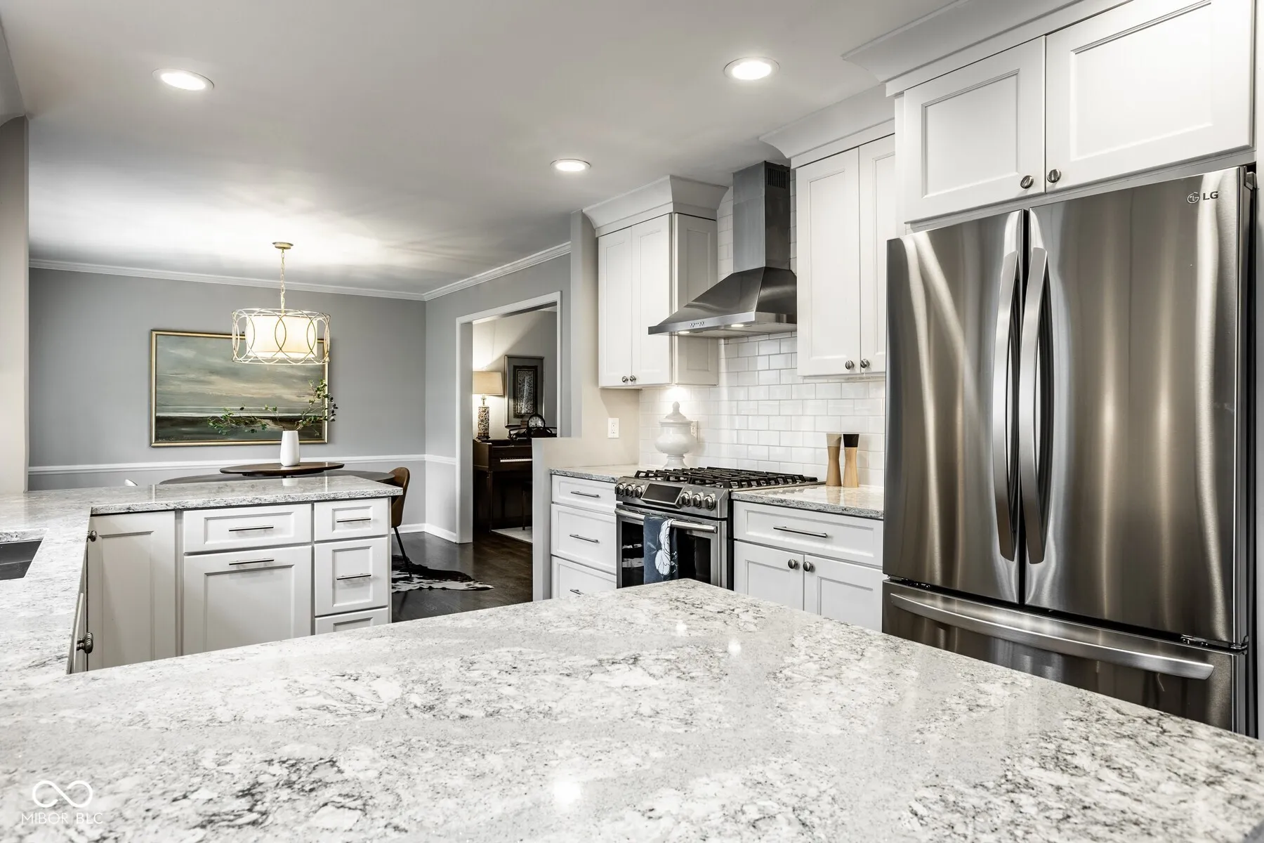 Nestled on a cul-de-sac within the sought after Northern Hills neighborhood in Washington Township, this well maintained & updated colonial home offers the perfect blend of classic charm while having modern convenience. This home has been updated with all the finest finishes including gleaming hardwood floors that flow seamlessly throughout the home. The spacious family room with a brand new bar bathed in natural light from large windows, provides an ideal space for family & friends. The well-appointed updated & spacious kitchen, boasting stainless steel appliances including a Bosch dishwasher & soft-close cabinets is a chef’s delight. The dining area, perfect for both casual family meals and formal entertaining, opens gracefully to the formal living room. Ascend the stairs to the private primary bedroom suite, featuring an en-suite bathroom with marble flooring, marble shower & generous closet space. Three additional bedrooms offer flexibility for family, guests, or a home office. & the hall bathroom has been remodeled with the finest finishes! The lower level expands your living space with a finished recreation room, perfect for movie nights or game days. Outside, a generous, fully fenced backyard awaits, offering ample space for outdoor activities and the patio is ideal for summer barbecues & entertaining. This home has had the HVAC system updated to a high efficiency system & roof/gutters were replaced in 2022. Close to top-rated schools, convenient shopping, delectable dining options, easy Monon Trail access & everything Indy has to offer. This won’t last long!