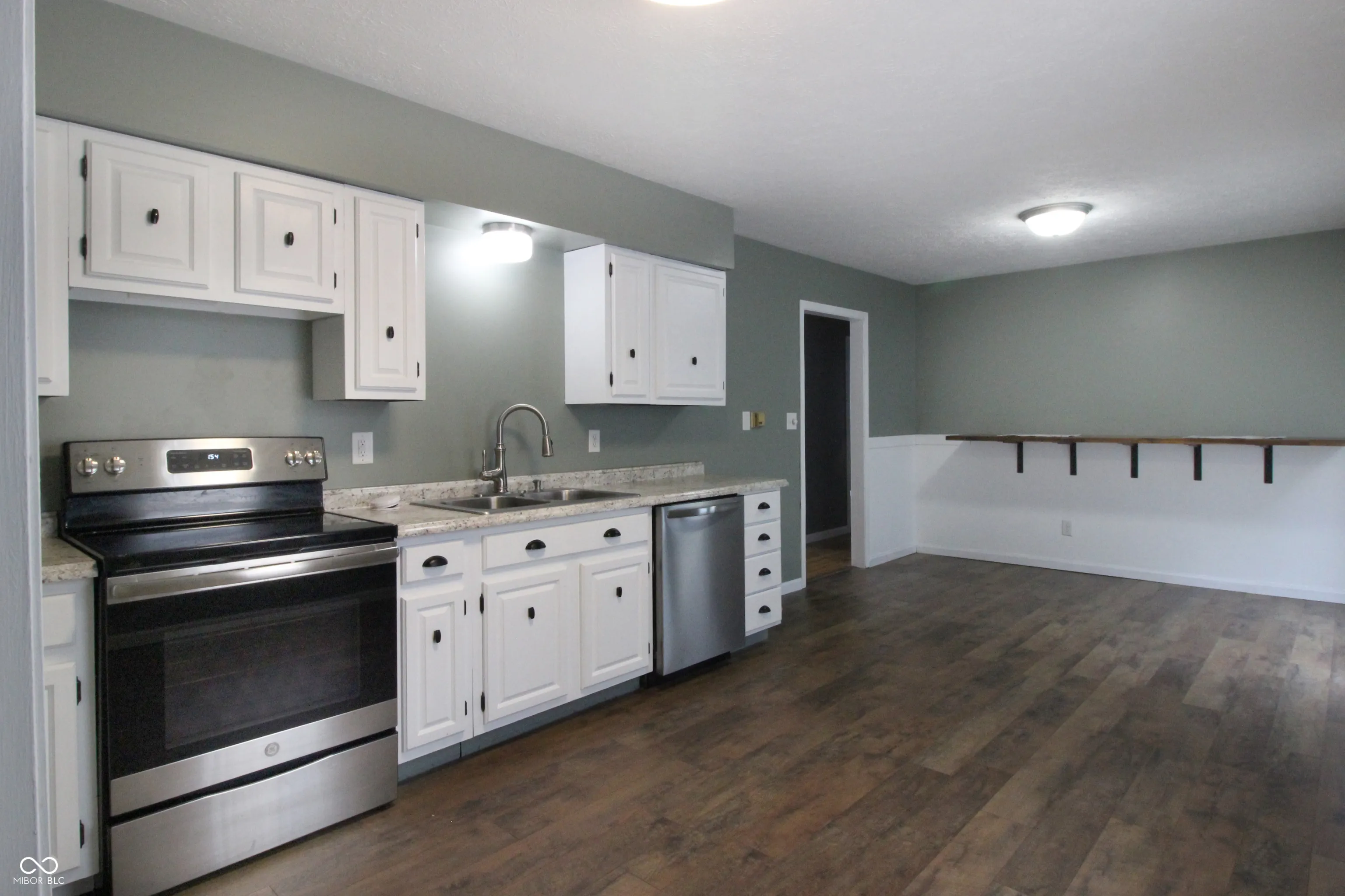 Well cared for 3 BR 2 BA ranch home in Mineral Springs with beautiful front lawn. Home features hardwood or vinyl hardwood floors throughout. Primary bedroom with an updated private bath and walk-in closet. Large kitchen area with new custom eat-in kitchen bar. Large 2 car garage. Newer vinyl siding and roof. Amazing backyard with deck, mini barn for extra storage and new full privacy fence. Immediate possession. Trampoline and black gazebo on deck not included with sale.