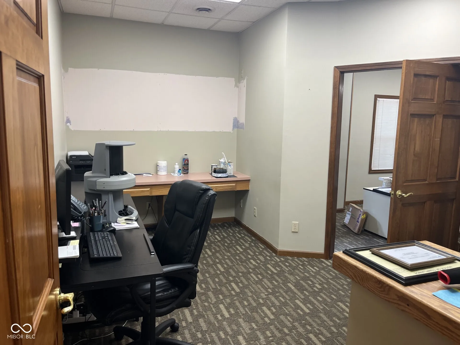 Attractive all brick Office building, Zoned R-3, currently divided into two units. One unit is 1,470sqft and the other unit is 1,940sqft. Convenient location close to downtown. Guest parking in front with employee parking in back of building. The 22×42 pole barn, divided in half for storage offers concrete floors, lights and is insulated. Highly visible location. Parcel 07-32-442-091.000-030 is included in the sale.