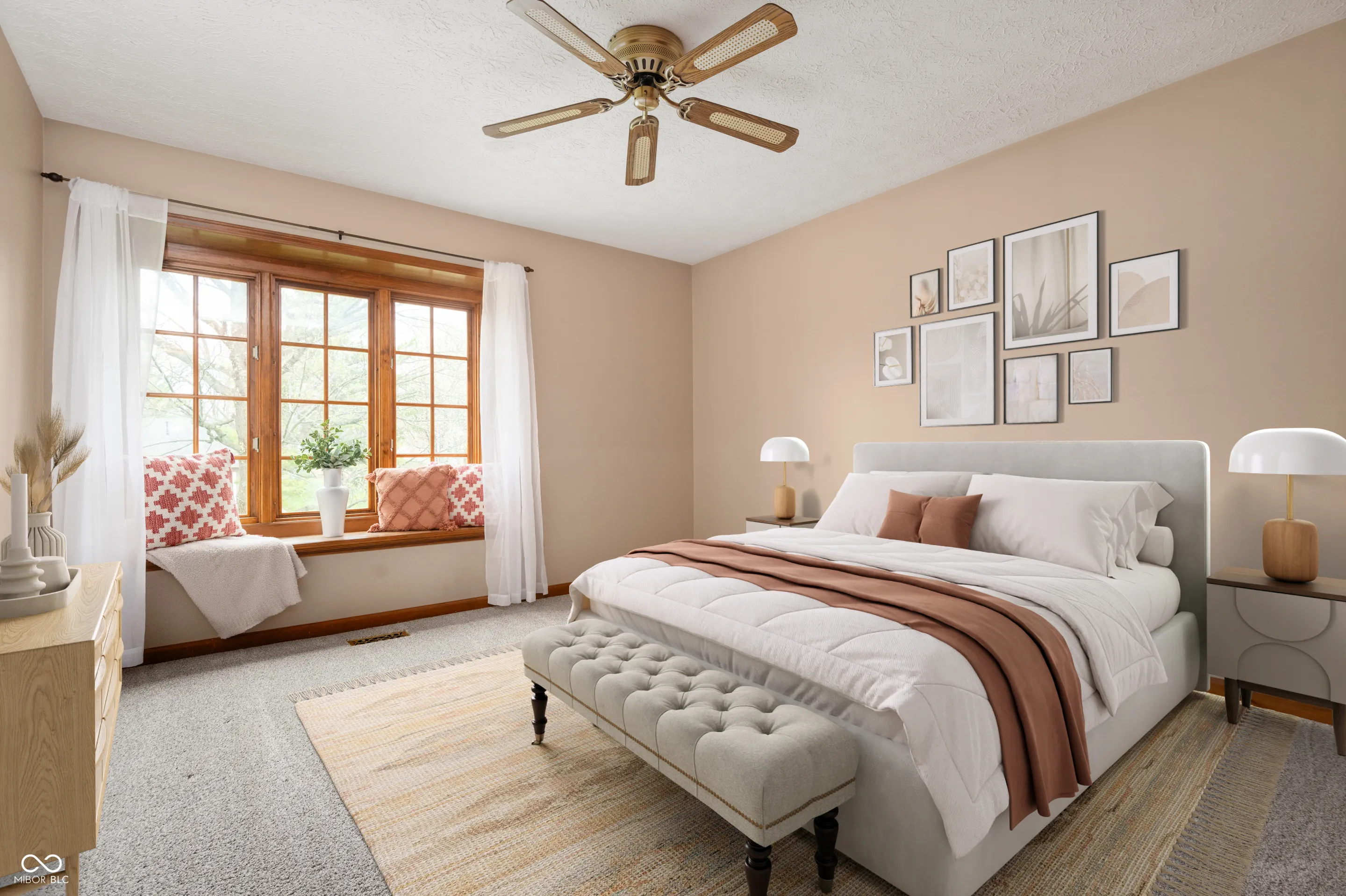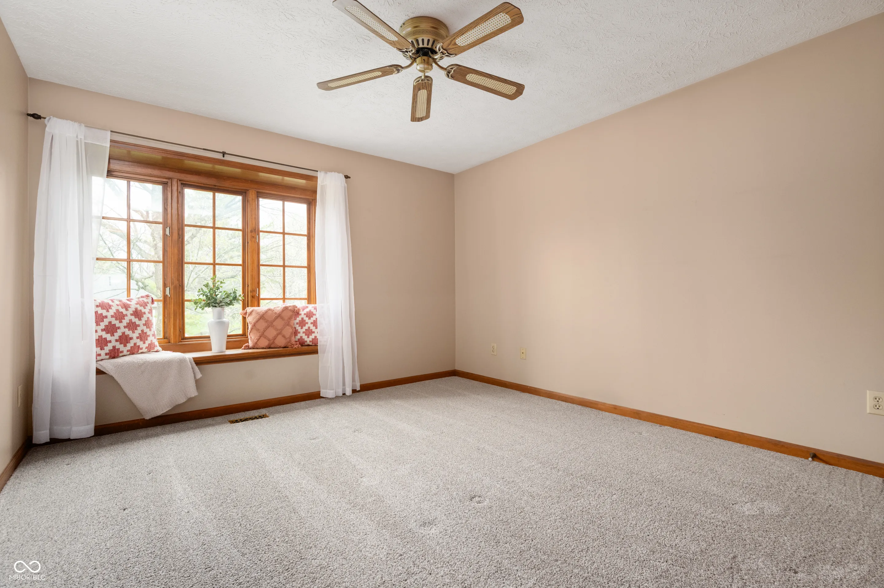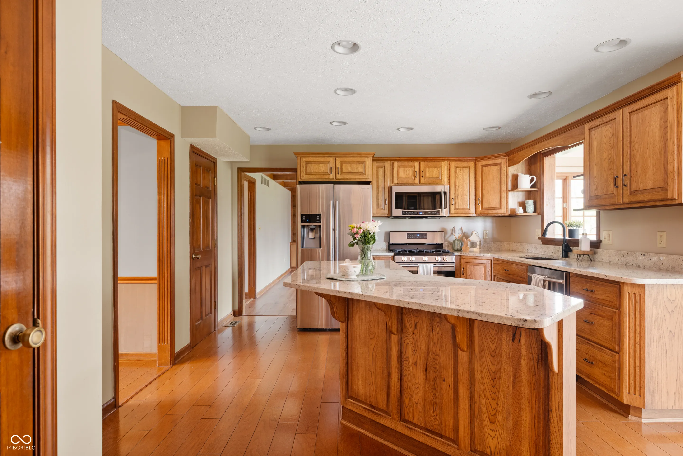 Exquisite Haven with Modern Elegance. Welcome to this impeccably maintained home, proudly offered by its original owners. This stunning home boasts over 3,000 square feet of thoughtfully designed living space, featuring four generously sized bedrooms and three full bathrooms, with the flexibility to create a fifth bedroom on the main level by simply adding a closet. Upstairs boasts new carpet throughout and hardwood floors throughout most of the main level The interior showcases a harmonious blend of formal and casual living areas. Entertain guests in the formal living room or gather around the cozy fireplace in the family room. Culinary enthusiasts will appreciate the spacious kitchen adorned with sleek granite countertops and premium stainless steel appliances. The primary bedroom offers a unique retreat with its own attached sitting room-perfect for a private reading nook, home office, nursery or craft room. Natural light floods the expansive sunroom, creating an ideal spot to enjoy morning coffee while overlooking the meticulously landscaped grounds. The property sits on a large lot, providing ample outdoor space for recreation and entertaining. Practical amenities include a remarkable four-car attached garage-a dream for automotive enthusiasts or those needing extra storage. The roof, replaced just one year ago, ensures peace of mind for years to come. Located in a coveted neighborhood, this home offers proximity to Sugar Creek Township Park-just a short stroll away for outdoor recreation. Students benefit from access to the well-regarded New Palestine Schools. This exceptional property represents a rare opportunity to own a beautifully maintained, spacious home that has been cherished by one family since its construction.