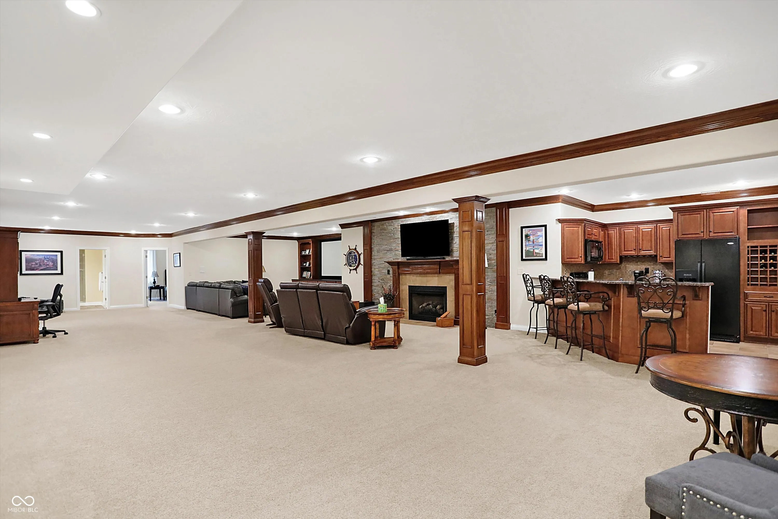 Welcome to this exquisite Greg Allen custom-built ranch, perfectly positioned in the prestigious Highland Park neighborhood of Center Grove. With an ideal layout for modern family living, this home masterfully combines upscale design, smart functionality, and luxurious comfort across every level. Inside, the open-concept main floor welcomes you with a spacious gourmet kitchen featuring custom cabinetry, high-end finishes, and plenty of room for gathering. The inviting living area centers around one of two fireplaces, creating a warm and elegant atmosphere. The main-level primary suite offers comfort and privacy, while two additional bedrooms share a well-appointed Jack and Jill bath. The finished basement is an entertainer’s dream and a haven for extended living, complete with two large bedrooms, a full bath, a second full kitchen, and a cozy fireplace. You’ll also enjoy a home theater-perfect for movie nights or hosting game-day events in style. Upstairs, a huge bonus room over the garage with its own HVAC system offers flexible space for a home office, playroom, or private retreat. Step outside to a meticulously landscaped yard with exceptional curb appeal and a serene outdoor setting. A whole-home generator (2023) ensures peace of mind year-round. This home has it all-luxury, convenience, and custom craftsmanship-in one of Center Grove’s most sought-after communities. Don’t miss the chance to make this Highland Park gem your forever home.