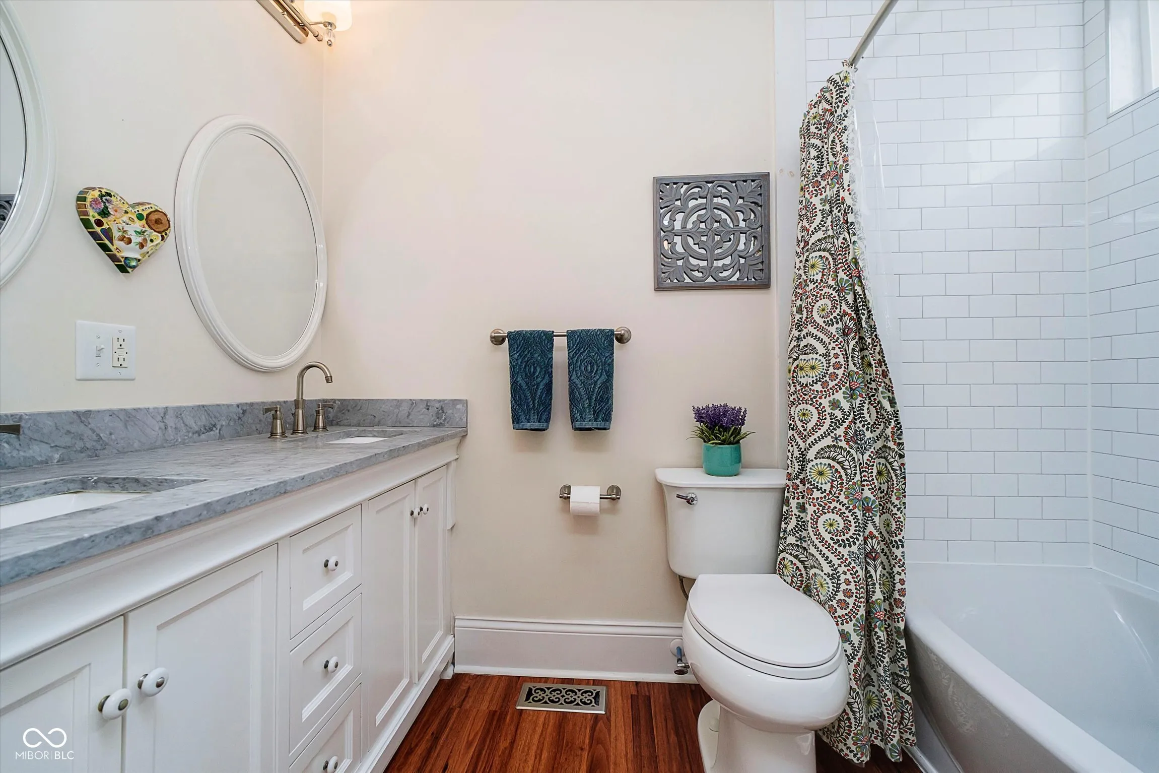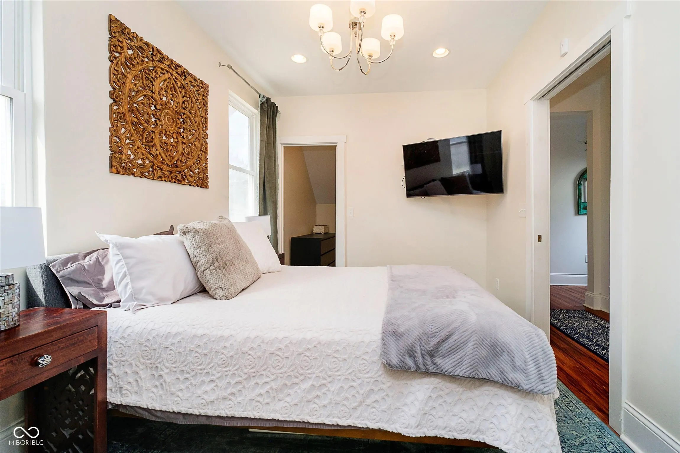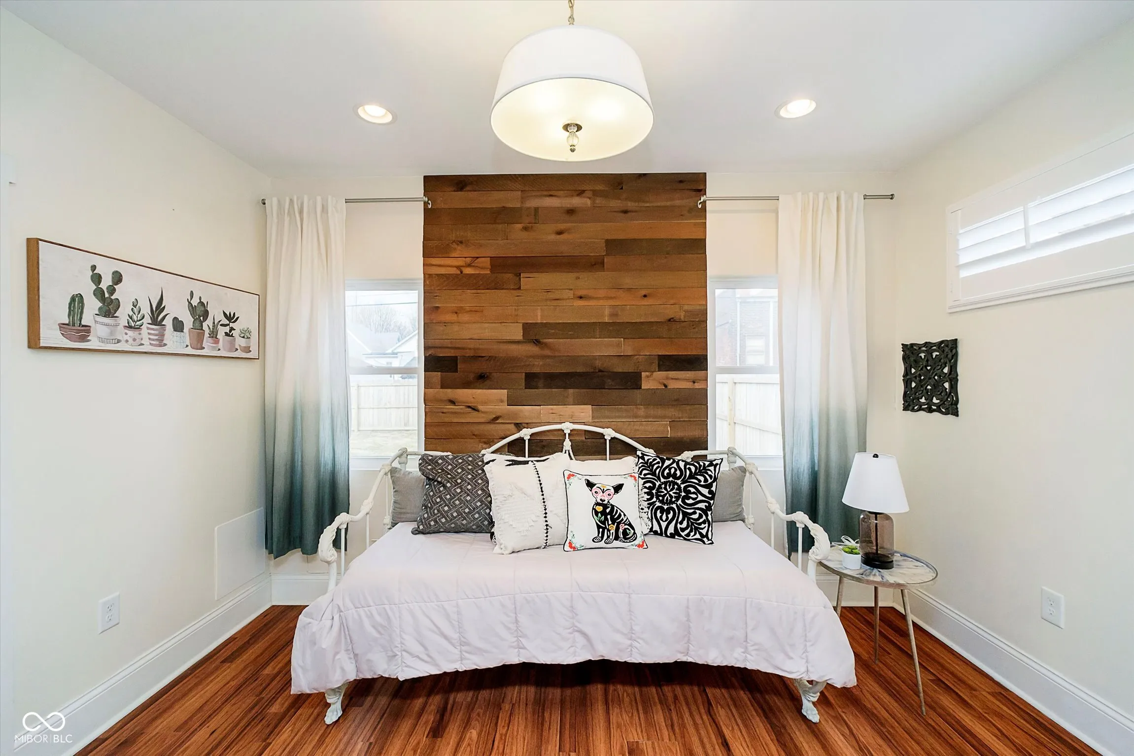 This 3-bedroom, 2.5-bath gem in Bates Hendricks blends charm, style, and unbeatable space! Soaring beamed ceilings in the entry, kitchen, and family room create a grand feel, while the gourmet kitchen shines with floor-to-ceiling white cabinets, marble counters, backsplash, and newer stainless steel appliances. The upstairs bonus room with skylight serves as the third bedroom, and each main-floor bedroom offers a private custom bath and walk-in closet. Unique touches like reclaimed wood accents and laminate flooring throughout complete the stylish interior. Outside, the huge, fully fenced property includes a rare adjoining lot, purchased by the owners for extra outdoor space! Use it for entertaining, gardening, pets, or even future possibilities. Inside the fence, enjoy off-street parking, a storage barn, and a cozy patio. All of this in a vibrant, walkable neighborhood, just minutes from top restaurants, nightlife, and downtown Indy. A must-see opportunity!
