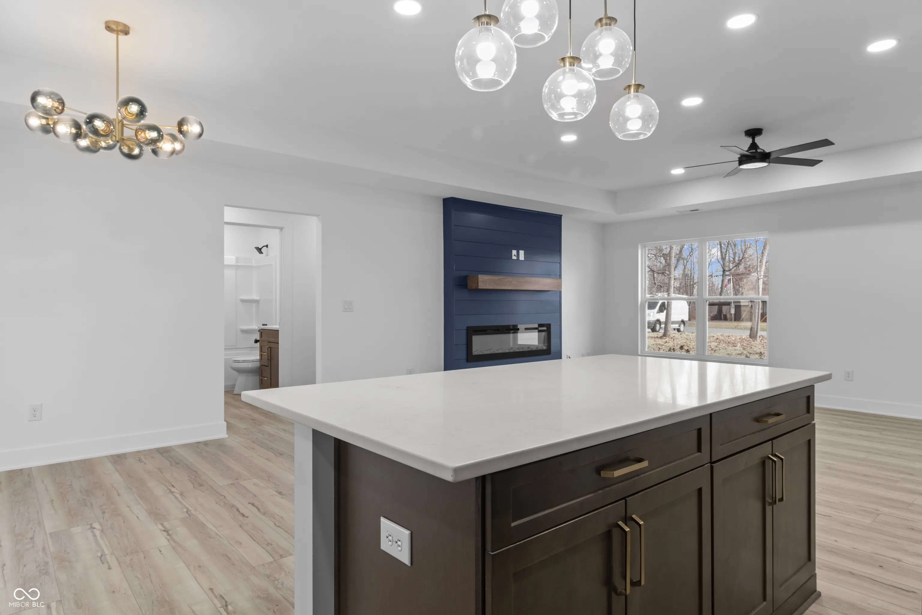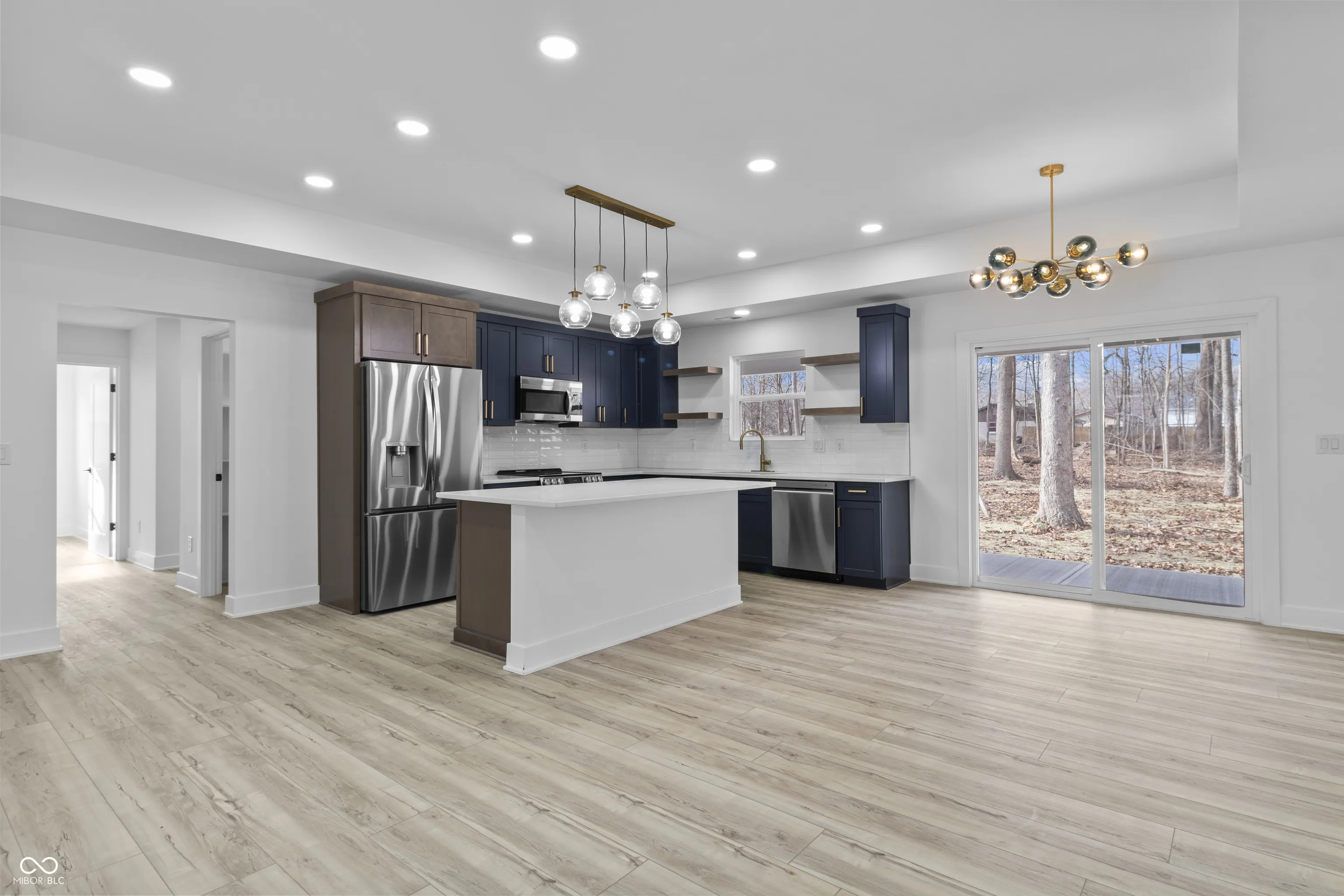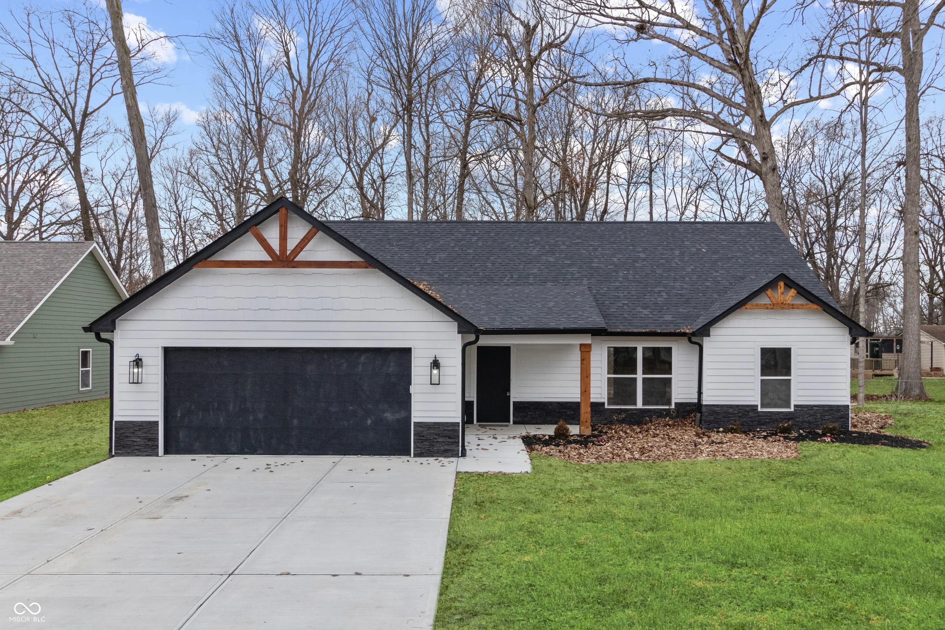 Stunning New Custom Home on a Wooded Lot–Your brand-new Madison County dream home awaits in this beautifully crafted Craftsman-style ranch, nestled on a scenic wooded lot on Anderson’s highly desirable south side. Offering the perfect blend of style, comfort, and convenience, this thoughtfully designed home features over 1,550 square feet of well-planned living space ideal for today’s lifestyle…Designed for both entertaining and everyday living, the gourmet chef’s kitchen, with quartz countertops, overlooks the open gathering room and flows seamlessly into the dining and living areas. High-end finishes and an inviting open-concept layout create a warm, welcoming atmosphere throughout the home…The split-bedroom floor plan provides added privacy, with the primary suite tucked away as its own peaceful retreat. This spacious suite features an ensuite bath and a generous walk-in closet, while two additional bedrooms and a second full bath offer flexibility for family, guests, or a home office….The living room is highlighted by a stunning electric fireplace, serving as a cozy yet elegant focal point. Enjoy outdoor living year-round with both a covered front porch and a covered back patio-perfect for relaxing and taking in the serene wooded surroundings. An oversized two-car garage offers ample storage, and the home’s prime location provides quick access to I-69 and 53rd Street, making commuting effortless. NOTE: BLC #22023270 (4719) & #22023194 (4727) are also move-in ready and available with different custom-designed homes.