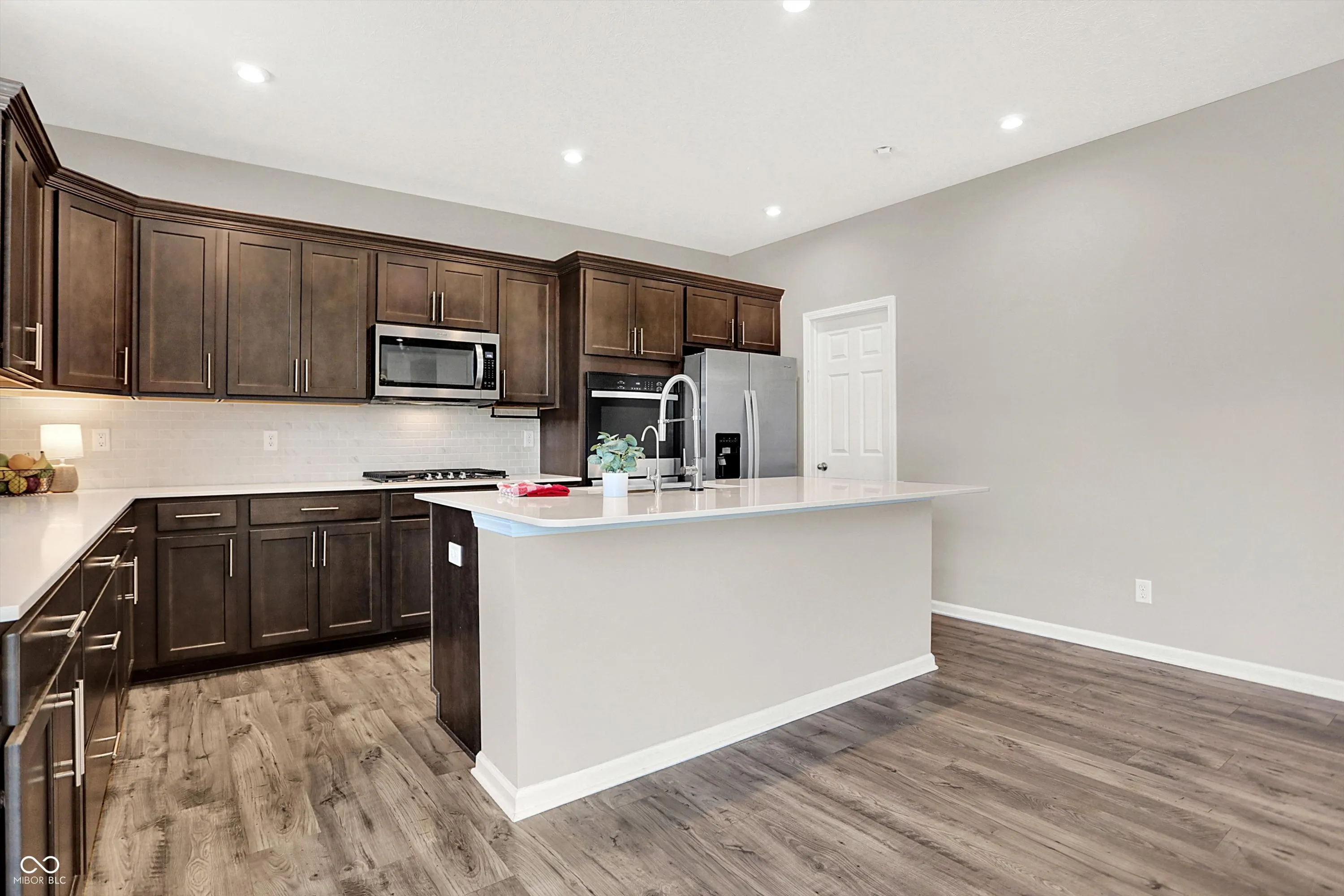 Like new 5 bedroom/3 full bath 1 year old open-concept 2-story home with modern farmhouse exterior and hard to find main floor guest suite with bedroom & full bathroom. Many upgrades made since purchased. Main floor with 9 ft ceilings. Exterior wall 2×6 construction, and energy efficient triple pane windows. Full rear Cedar privacy fence. Ceiling fans with lights added in every bedroom. The open kitchen offers a large island/breakfast bar, upgraded cabinetry w/crown molding, quartz countertops & tile backsplash as well as gas cooktop, built-in double ovens, updated kitchen faucet with touch on/off feature, and reverse osmosis faucet at kitchen sink. Novo water softener/carbon water filter combination system included. Upstairs you’ll find 4 large bedrooms, flexible loft space, tray ceiling in the primary bedroom & luxurious spa-like bathroom with walk-in shower. Interior features include luxury plank flooring in the main living areas. 3-car garage for additional storage as well as more storage in storage room under the stairs. Hybrid electric heat pump tank water heater. ENERGY STAR qualified.