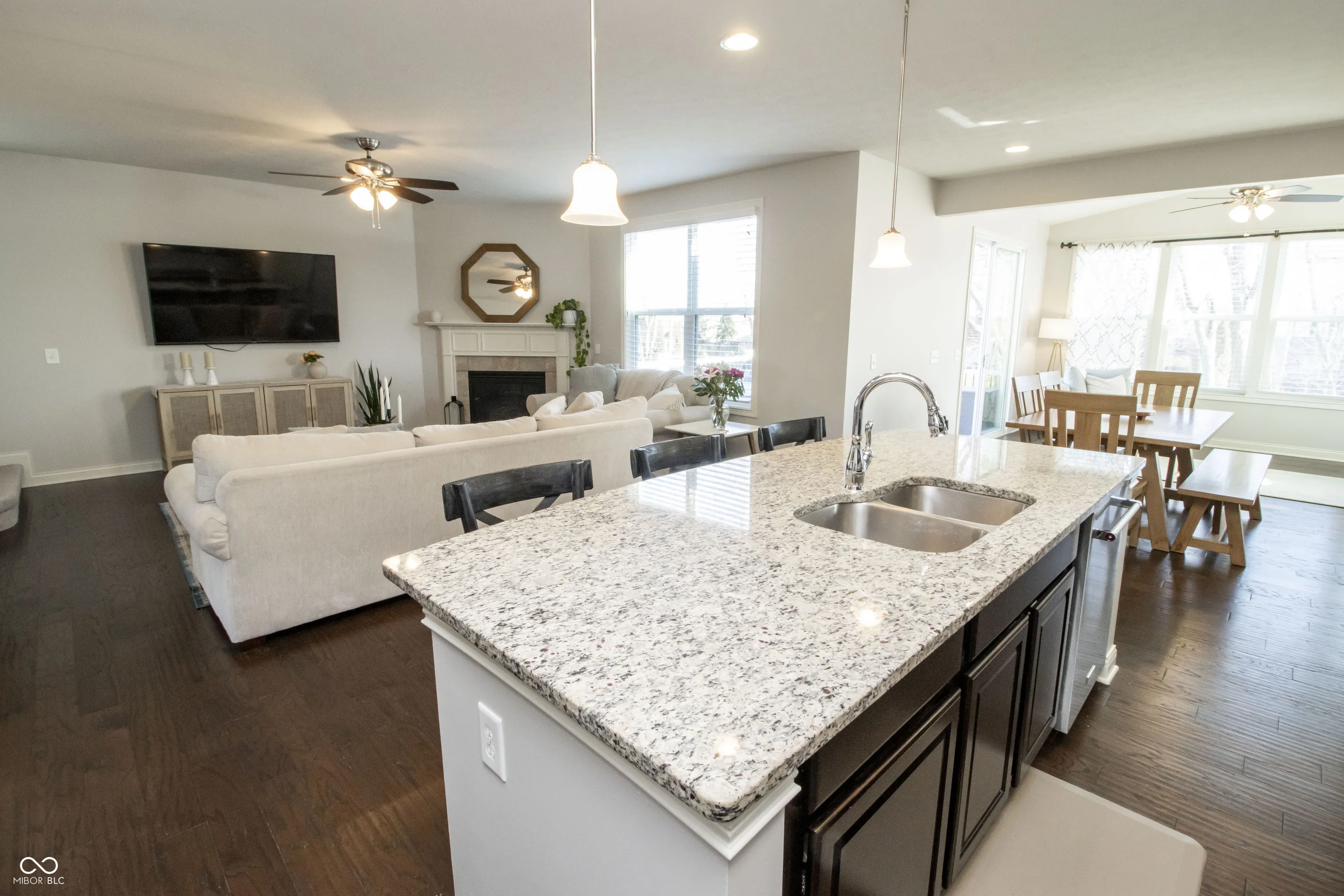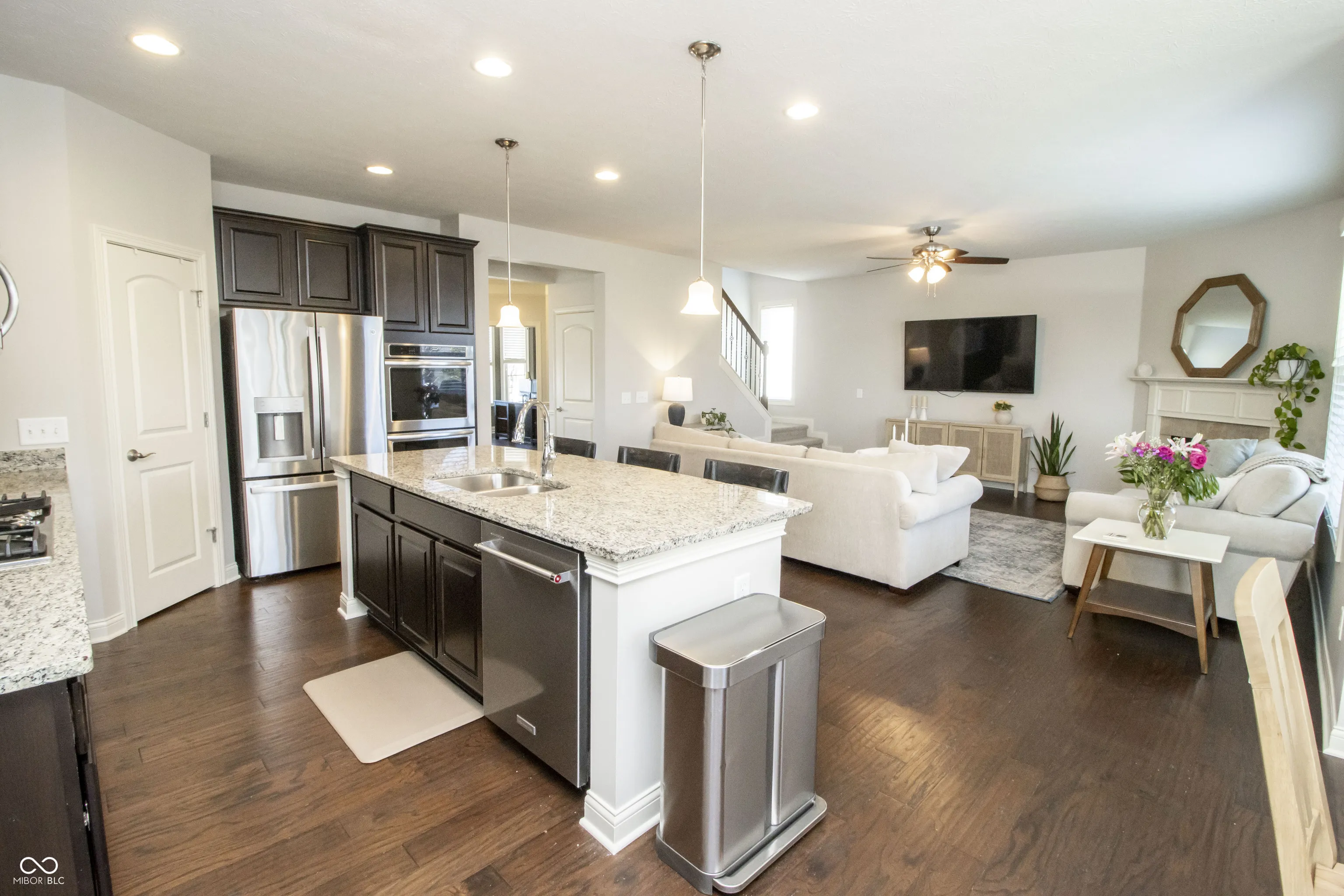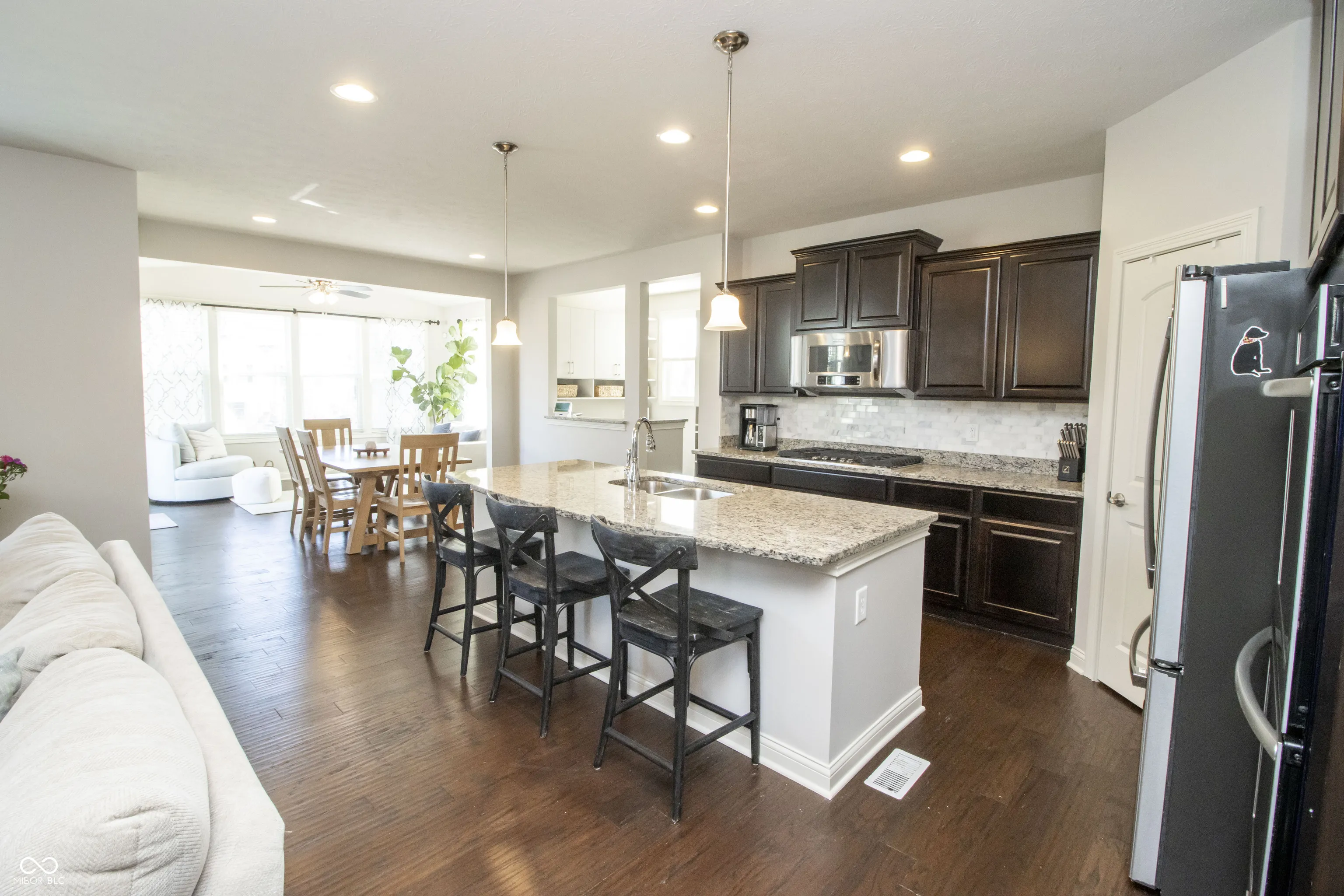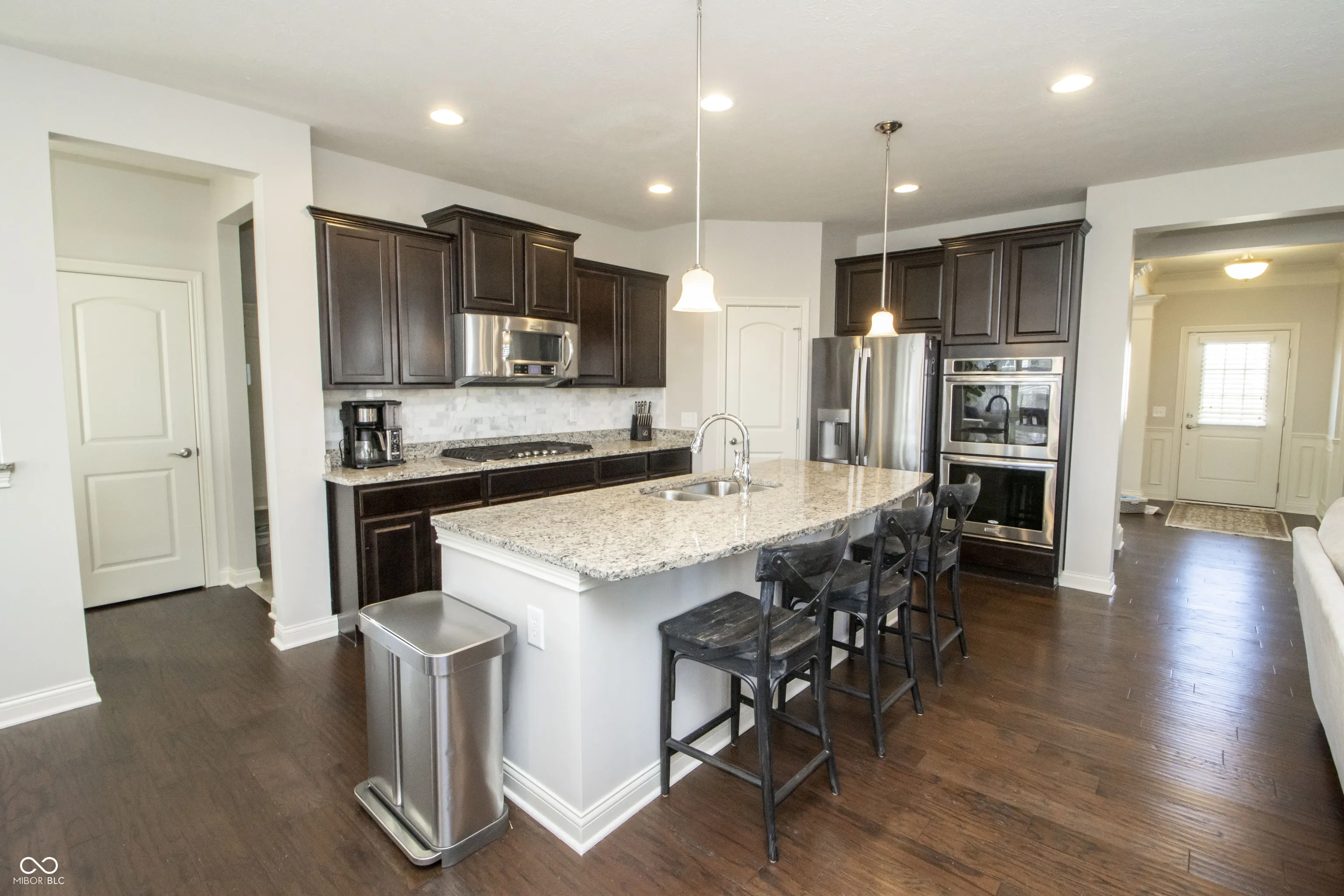 Gorgeous 5-bedroom, 4.5-bath home featuring a loft and a full basement, situated on a phenomenal cul-de-sac lot with an incredible backyard! Relax on your covered front porch or your backyard deck and custom stone-paved patio. Enjoy evenings by the fire, BBQs with friends and family, or simply take in the peaceful views of mature trees and professional landscaping. This home has everything you need! Upon entering, you’ll find a large foyer that opens up to flexible spaces on either side. As you proceed, you’ll love the natural light flowing through the expansive windows in the great room, gourmet kitchen, eating area, and sunroom. Special features include a planning/office area by the kitchen and a mudroom area accessible from the 3-car garage. Upstairs, you’ll discover a cozy loft and four bedrooms. The primary bedroom suite boasts a spacious walk-in tiled shower, double sinks, and a walk-in closet. Two additional full bathrooms upstairs serve the three large bedrooms along with an upstairs laundry room. The basement comes with brand new carpet, an additional bedroom, a full bathroom, and a home theater system. Enjoy Viking Meadows HOA benefits, including a clubhouse, pool, tennis courts, indoor and outdoor basketball, and direct access to the Monon Trail. This home offers numerous extras, such as a whole-house backup generator, whole-house humidifier, irrigation system, a 3-year-old water softener, and a new roof installed in 2021. Don’t miss out on this incredible opportunity!