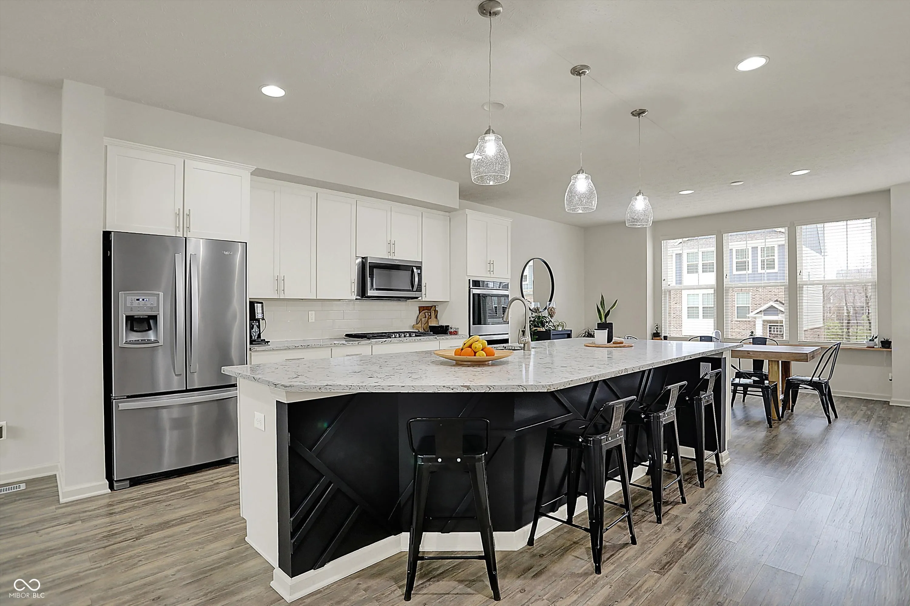 GREAT HOME, GREAT INVESTMENT! Immaculate 3-Bedroom, 1-Owner End Unit at the fabulous Retreat on the Monon. Enjoy a view of the popular Monon Trail and an ultra-convenient connection to U.S. 31. This is prime location in Westfield, with easy access to Clay Terrace, SR 32 and a short Monon Trail bike ride to all the dining and shopping in the heart of Carmel. Gourmet kitchen with a double oven, a five-burner gas stove top, quartz countertops, oversized island and fingerprint-less appliances. Kitchen is the centerpiece of a main floor with excellent entertaining options that include dining area, great room, office workspace and balcony. Custom blinds, ceiling fans and extra recessed lighting throughout, including in the garage. Lower-level bonus room ideal for a primary office, second den or entertaining space with access to covered concrete patio. Upstairs, the master bedroom is a suite with frameless shower glass enclosure and walk-in closet. There’s 2 full baths, 2 half baths across three floors of living space. As a bonus, HVAC has ionizer, there’s a Ring doorbell and the garage has large storage area and finished floor. The neighborhood has great green space and plentiful parking. You’ll love everything about this home and its fantastic location!