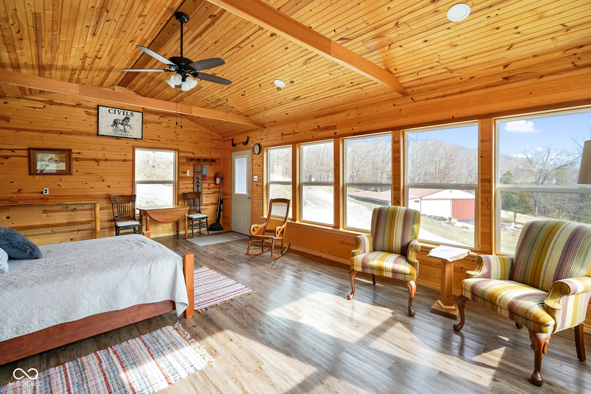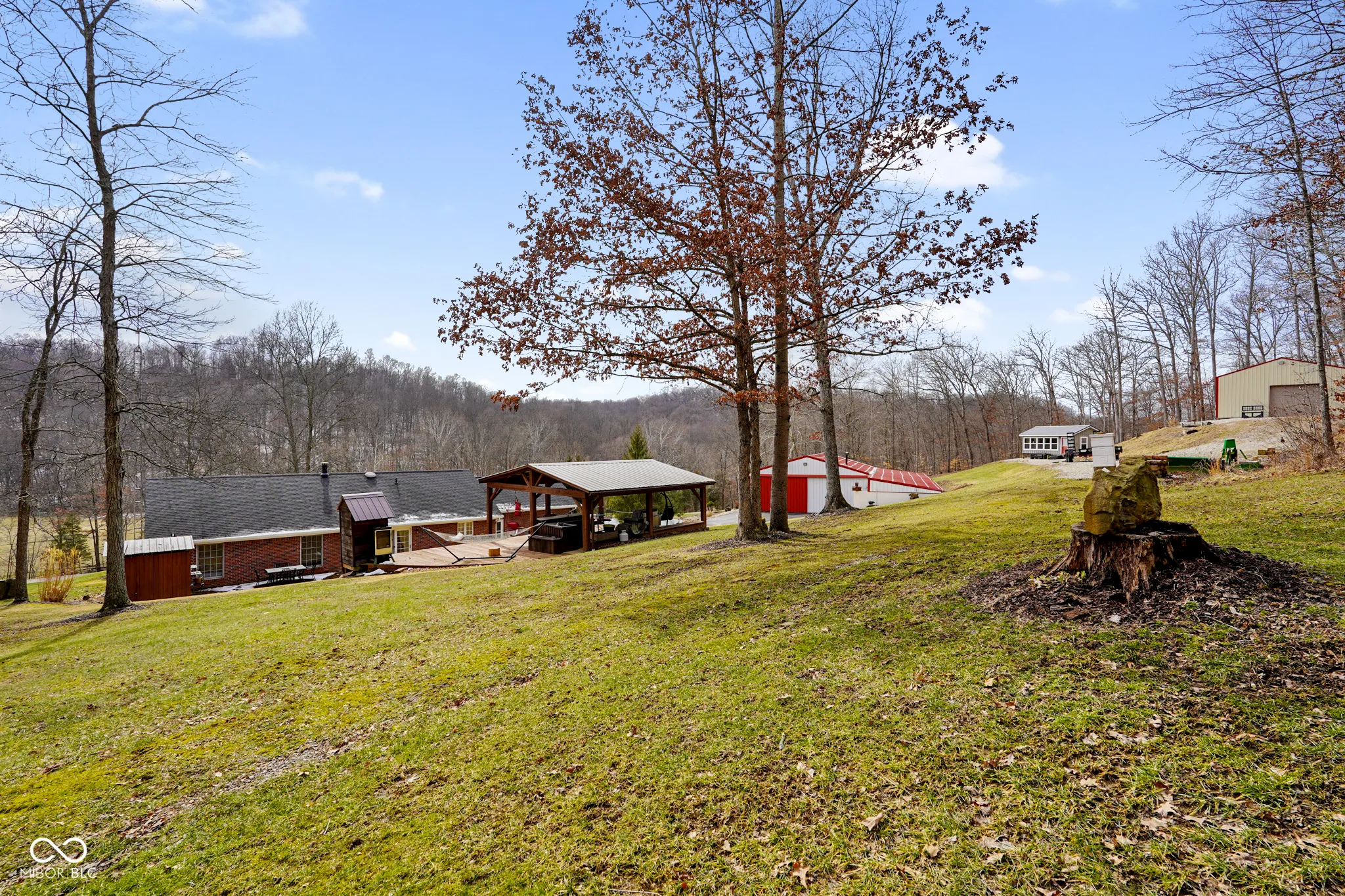 This charming 4-bedroom, 2-bath brick ranch sits on 8.62 acres in Nashville, offering breathtaking views from the front porch. The spacious living room features a tiled, wood-burning fireplace, while the kitchen and dining room combo showcases hardwood flooring and beautiful oak cabinetry. A 2-car attached garage provides convenience and ample storage. Outside, the property is packed with amenities, including a smokehouse, an outdoor shower, an outdoor kitchen complete with a Blackstone and grill, a 40×30 + 40×24 pole barns and a 40×15 enclosed lean-to. A cozy 24×16 insulated cabin with thermal windows offers extra space, while the stocked pond provides great fishing with bluegill, channel cat, and largemouth bass. The home also features a new furnace installed in 2021 and access to high-speed SCI Fiber internet. Additional acreage is available, making this an even greater opportunity to own a beautiful piece of Nashville.
