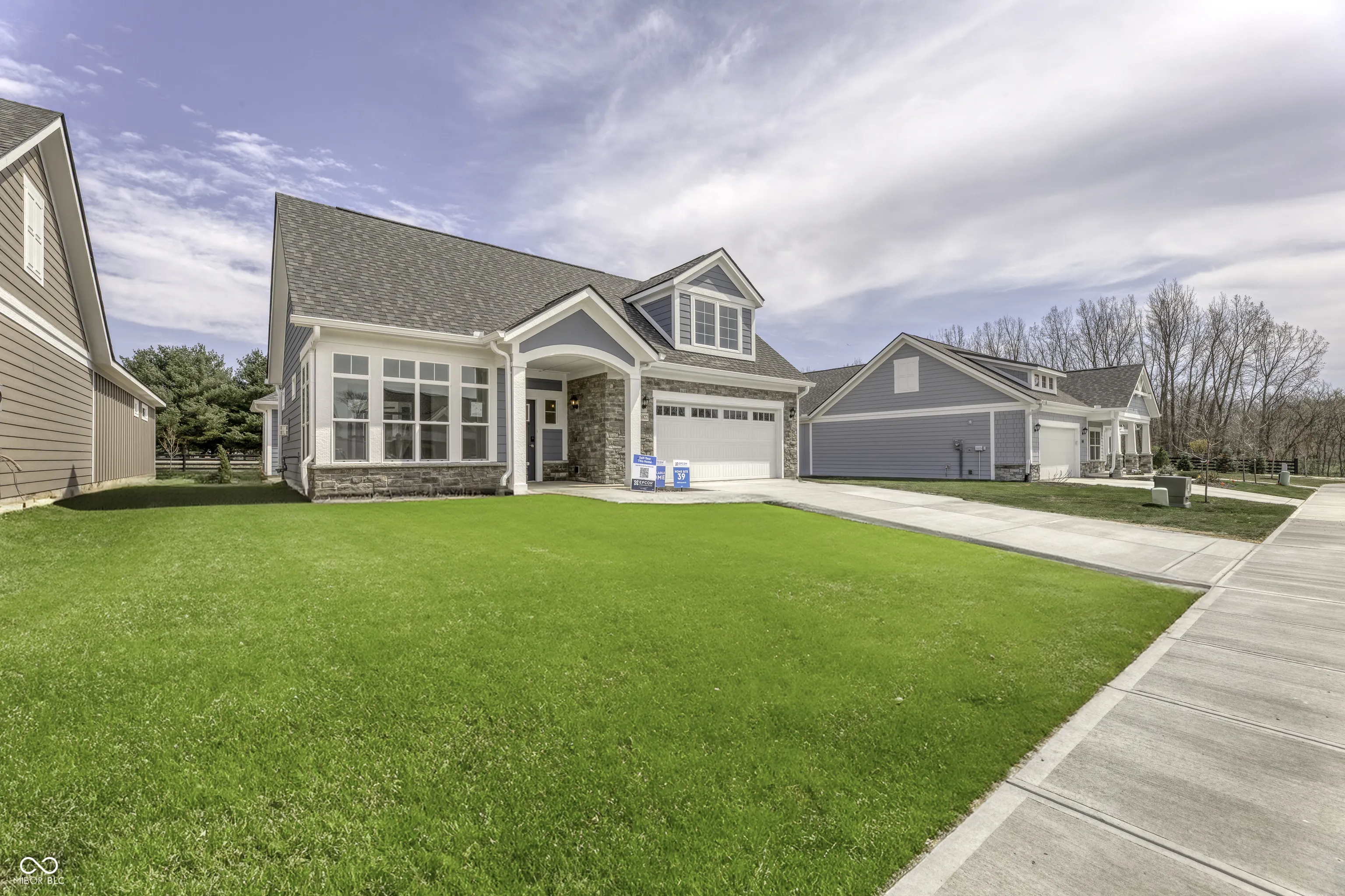 This home is completed and waiting for its new owner! The Palazzo Bonus B floor plan by Epcon Communities is now available! Looking for a home that offers a comfortable and luxurious living experience? Look no further than the Palazzo! This welcoming and vibrant home is filled with natural light and offers adaptable living spaces that cater to your needs. Here are some of the features that make the Palazzo stand out: A multi-purpose sunroom where you can relax and enjoy the beautiful natural surroundings – An upstairs bonus suite with full bath and walk-in closet, perfect for hosting guests – A deluxe kitchen with quartz counter tops, center island and double ovens, making cooking a breeze! The owner’s suite is a dream with tray ceiling, huge walk-in closet, and sitting room which opens to your private courtyard patio. You’ll love the abundant natural light throughout, the oversized 2.5 car garage, and the versatile floor plan. The Courtyards of Fishers offer a perfect blend of high-end, low-maintenance living in a community that’s close to everything: shopping, dining, downtown Fishers, Hamilton Town Center, and I-69. Coming soon – The Lounge – a common space for residents to gather. The Palazzo design is perfect for those who love to entertain and appreciate spacious, stylish living! (photos with furniture are representative only, not of actual home)