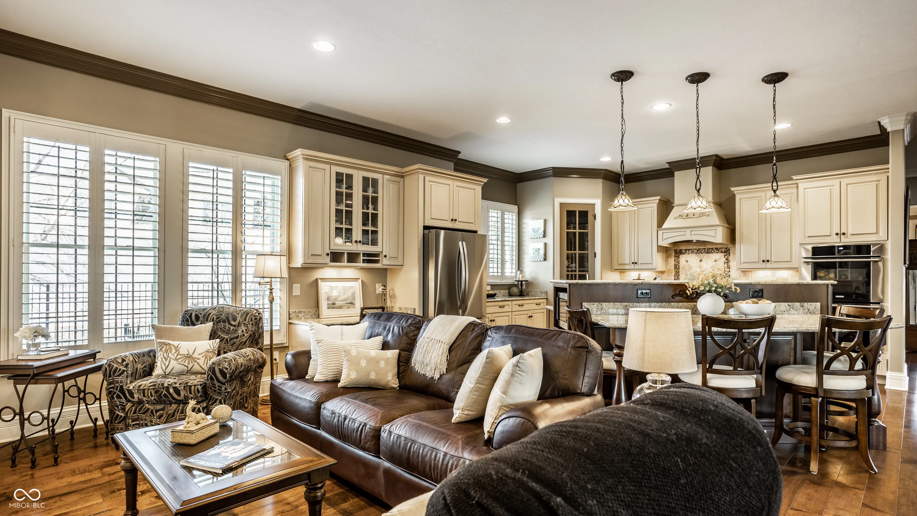 SELLER SOLD HOME TO NEIGHBOR. “Magazine cover” curb appeal in one of the most sought after sections of West Clay. One of few custom built homes in “the villas”! High level of architectural detail & craftsmanship. Enter & you immediately see coffered ceilings & hardwoods. Make notice of plantation shutters, curved wall corners & details in the base and crown moldings. Enter the office through French doors and be amazed by the custom built in floor to ceiling shelving and lower cabinetry. Great room offers a huge space that features a custom designed fireplace flanked by built-ins. It is open to a kitchen & breakfast area offering top tier appliances, granite counters, Kraftmade cabinets with soft close doors and drawers. Peaceful veranda with double sliding French doors open to the house & side yard area (1 of 2) with a private patio area. The 2nd yard is also fenced & offers a place for kiddos or puppies to play. Walking to the primary suite you go through a lighted gallery wall area. The large Primary Bedroom has a sitting area, double closets with custom built in shelving and drawers, 2 vanity areas, a soaking tub and walk-in shower. The 4 car oversized rear load clean garage has an epoxy floor & a back staircase to the basement. The upper level has 2 bedrooms with lots of closet space and adorable window benches in the dormer areas. Prepare to be wowed by the space/square footage in the lower level. Granite counter tops and a wall of built-ins and lower cabinetry. The lower level also has the 4th bedroom with a large egress window and its own private bath. You can enjoy the wet bar and gallery wall as you enter the massive storage area. It is currently housing the exercise equipment. 4 furnaces (3 of which are less than 3 yrs old.) Roof 3 years. Throw away the lawn equipment! It is all taken care of as part of the HOA dues. Info deemed reliable – buyer to verify. Showings start on 3/20/2025 and are by appointment only.