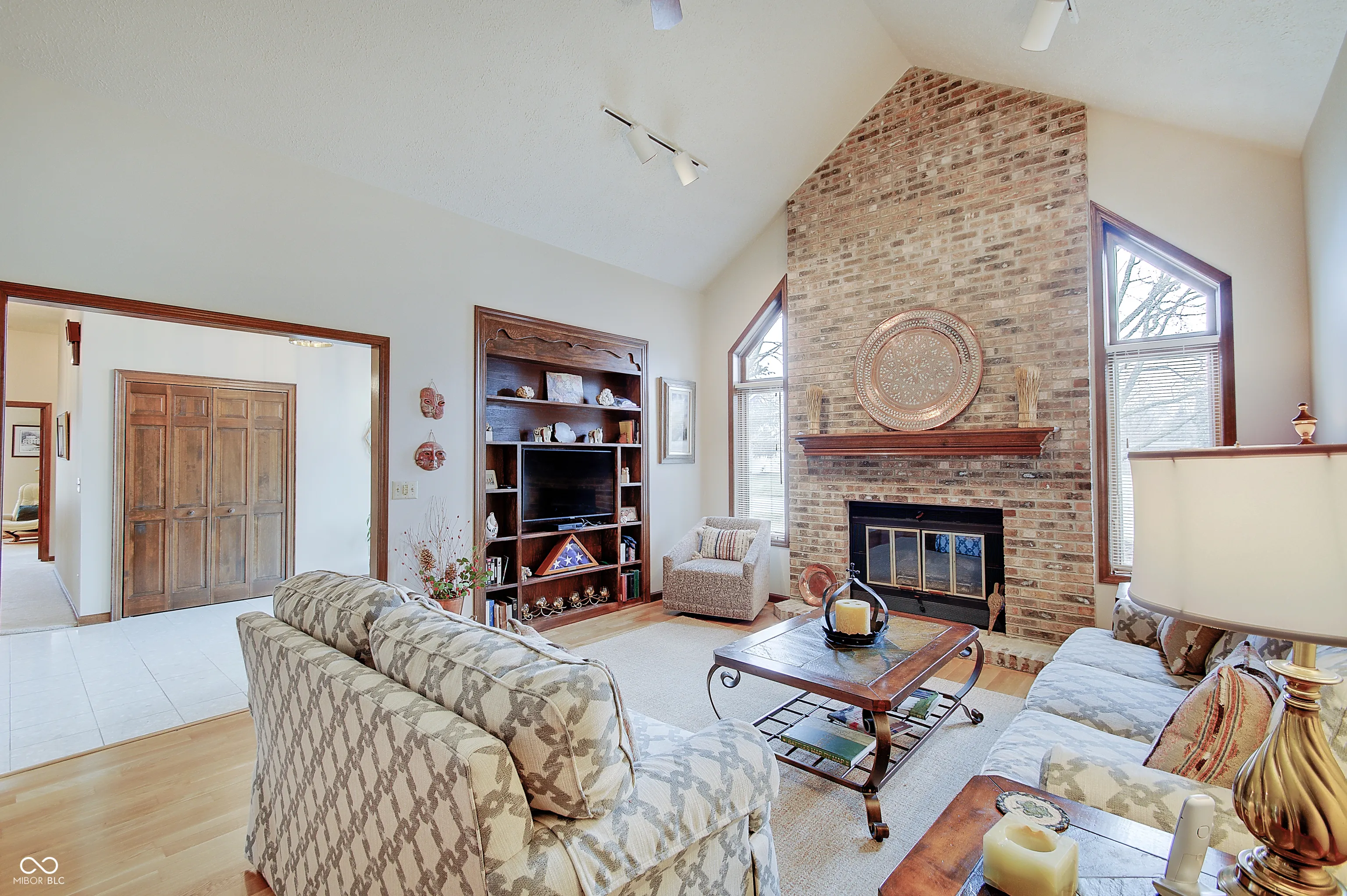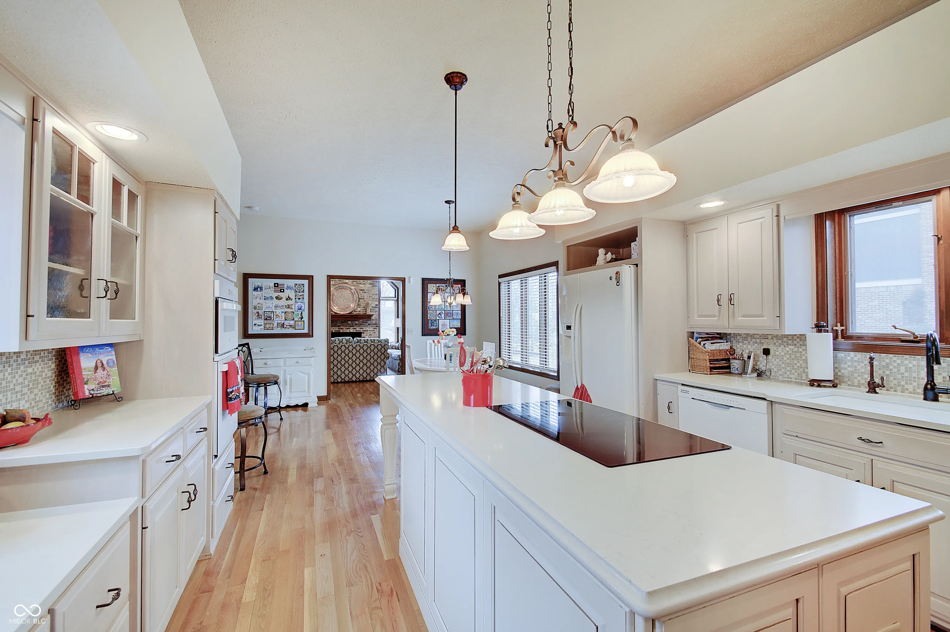 Welcome to this meticulously maintained custom ranch home in Carmel. Pride of home ownership shines through w/ updates/improvements galore. 3 BR 2.5 BA w/ finished basement on just under a half acre corner lot in charming Village Farms – you can’t miss this! Stunning grand entry welcomes you with beveled glass french doors, aggregate marble flooring, crown molding and dramatic 12′ ceilings found throughout home. Perfect for entertaining, the large gourmet kitchen w/ quartz countertops & breakfast nook flows into oversized living/dining area just steps from the private back deck. Family room has cozy fireplace, cathedral ceiling & custom new built in bookshelves. So much storage! – including walk up stairs to attic space. Some of the many improvements include: 2020 (water heater, built ins, washer/dryer, sump pump in crawl) – 2021 (complete renovation of 2.5 baths, HVAC, irrigation system, addtl crawl reno w/ second sump, dehumidifier, vapor barrier, new attic insulation, NewTechWood deck & gutter guards) – 2022 (built in oven, microwave, refinished hardwoods, sanded, stained and sealed front doors) – 2023 (installed ultra violet light on furnace) 2024 (encapsulated crawl) – Neighborhood amenities include pool, tennis, basketball, pickleball, volleyball courts, playgrounds & walking trails. A truly beautiful home and one of a kind!