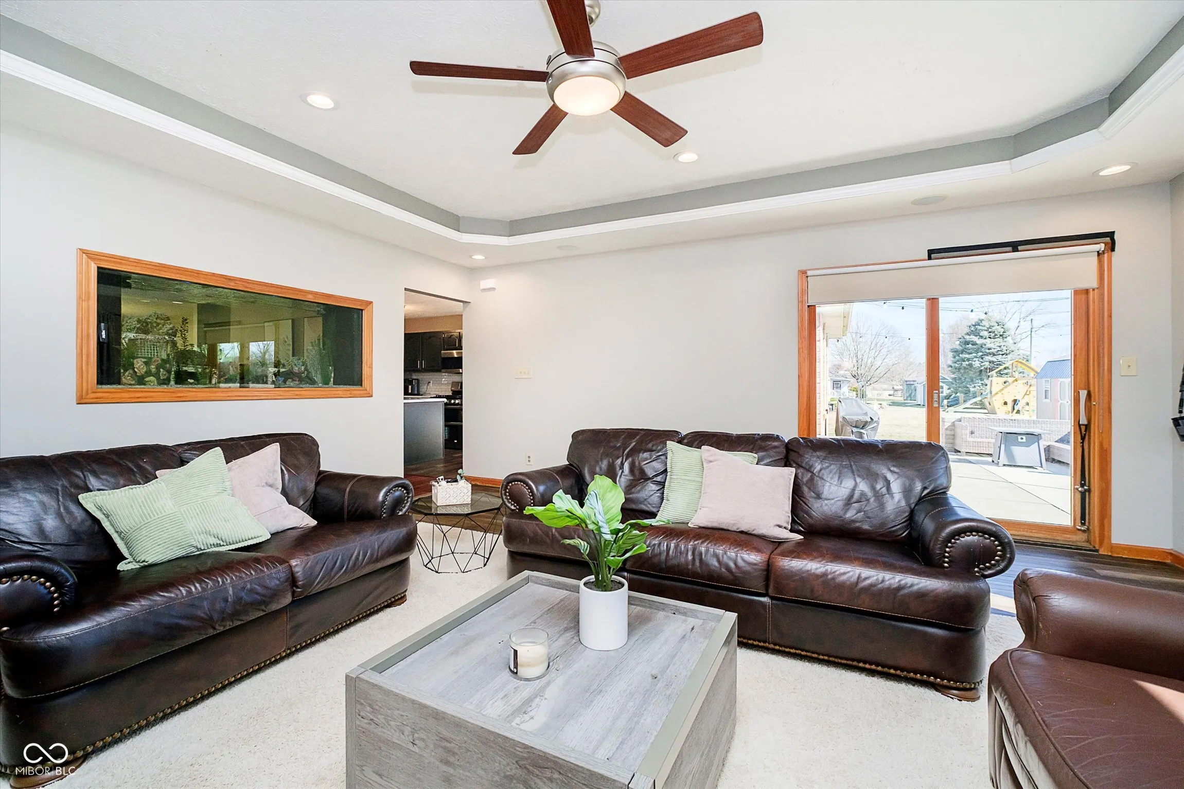 This hard to find, all brick 4 Bedroom home offers plenty of space and amenities. Hardwood floors greet you as you enter the Great Room/Dining Room combination with a cozy gas log fireplace. The beautiful salt water fishtank is a highlight and graces both the Great Room and back Family Room. (If this is not your style, it is not a load bearing wall and there is flooring to match so it can be removed). The lovely Kitchen has been refreshed and offers new fixtures, tile backsplash and stainless-steel appliances including a double oven gas range. All 4 Bedrooms have wonderful closet space including the Primary Bedroom with 2 separate walk-in closets, a Full Bath with tile shower with body jets, soaking tub, heated tile floors and dual sinks with granite counters. As spring arrives you will love the outdoor living space with large open patios, firepit, spacious storage shed, irrigation system and no neighbors behind the home.