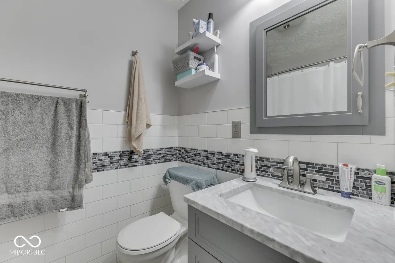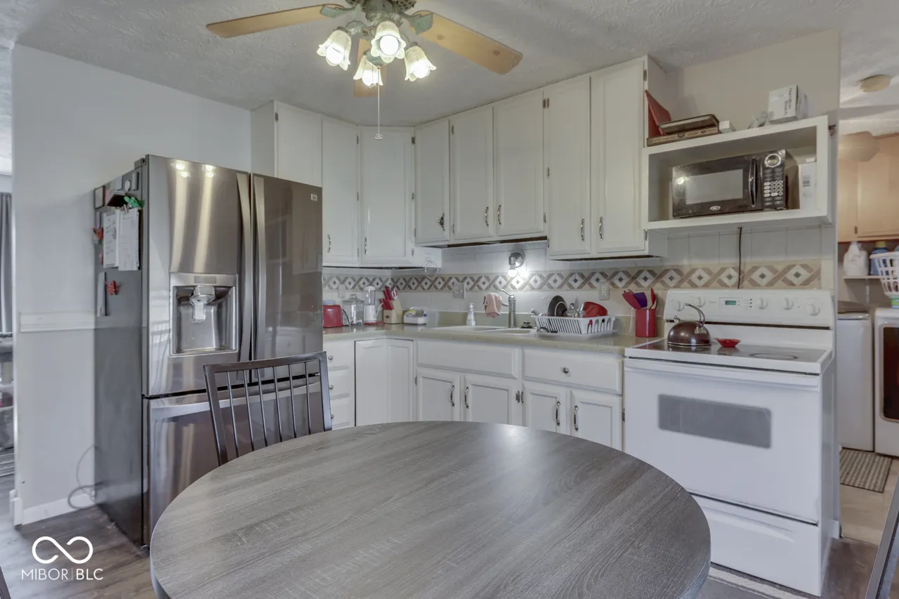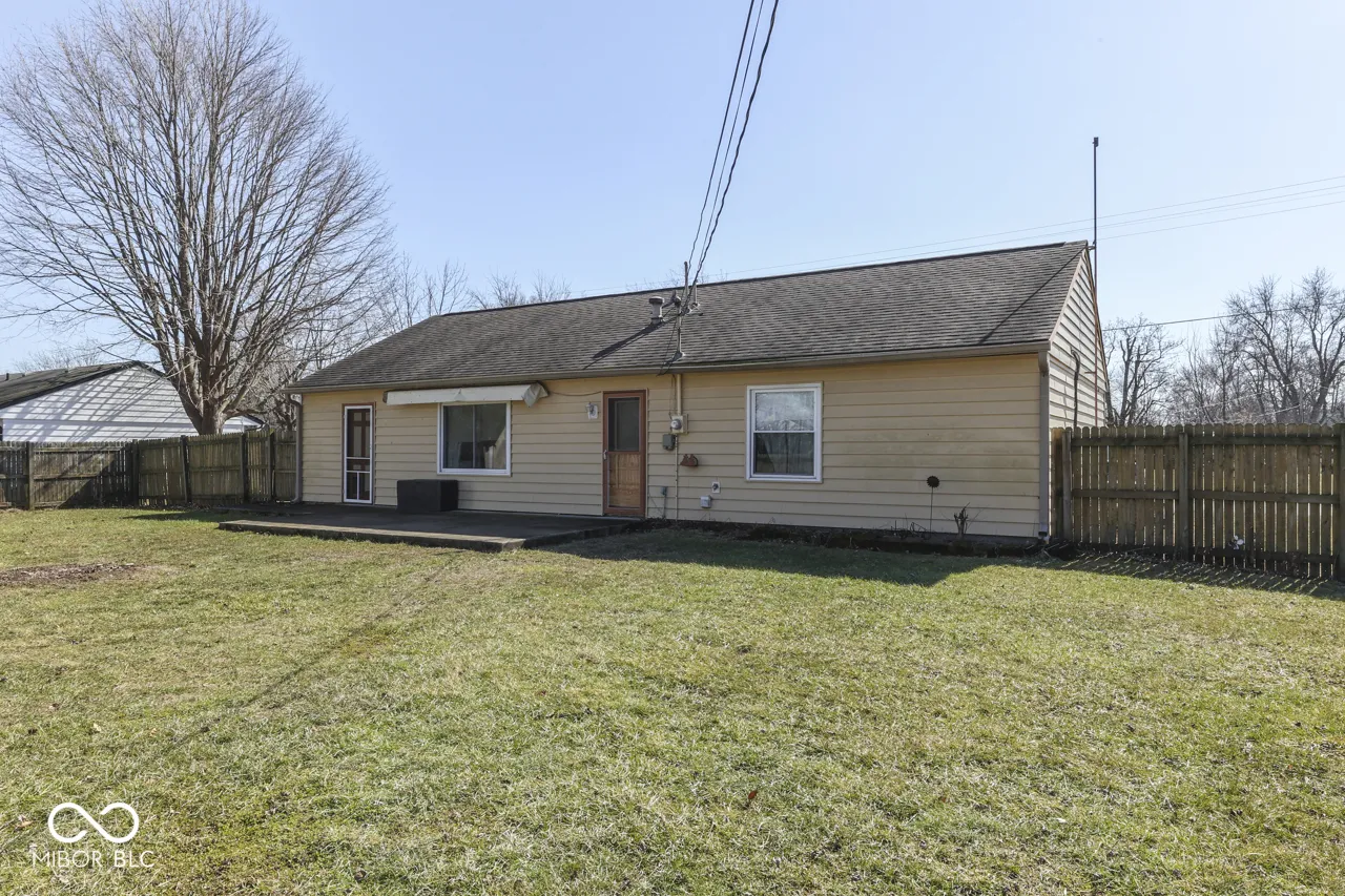 3 BEDROOM + 1 FULL BATH Charming Ranch in Desirable Area! Features: Water-Resistant LVP Flooring in Living Room & Eat-In Kitchen; Kitchen w/Solid-Surface Corian Countertops + Painted Countertops & Eating Area; Large Laundry Room w/ Washer & Dryer Included + Folding Station & Cabinets; All 3 Bedrooms w/Hardwood-Laminate Flooring; Amazing Remodel of Full Bathroom w/Large Tiled Walk-In Shower w/Mosaic Tile Built-Ins + Subway Tile Surround + Upgraded Vanity; Awesome Backyard to Enjoy: Full Privacy Fence + Huge 20×14 Concrete Patio w/Sun-Setter Retractable Awning + Mini Barn ~ Quiet Street in Great Location ~ Close to Shopping + Dining & More ~ Center Grove Schools!