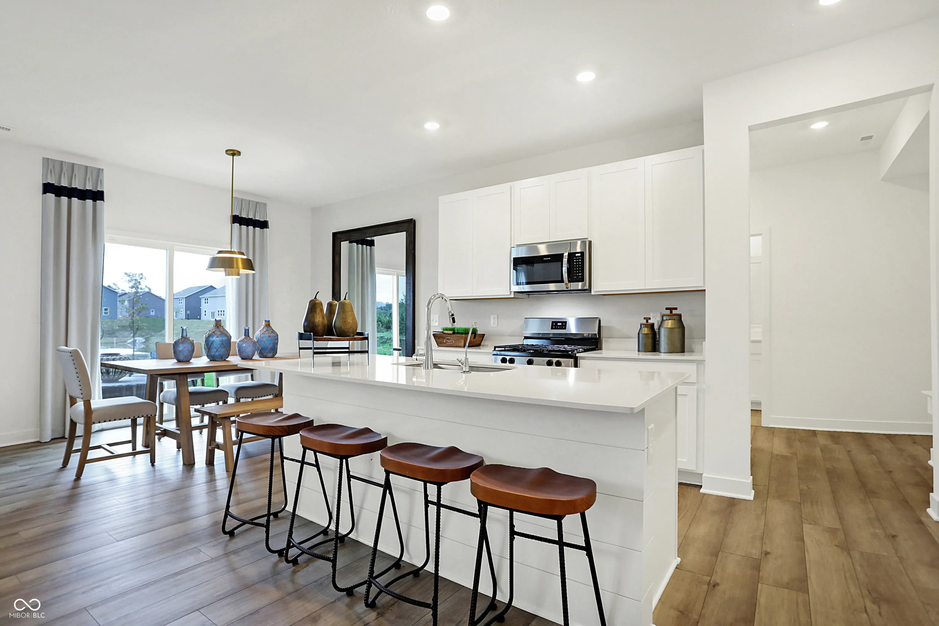 Sapphire Ridge is a community of new single-family homes coming soon to a prime location just southeast of downtown Indianapolis, IN. Right in the neighborhood are onsite trails for homeowners to get in their daily walk, jog or run. Situated in the well-regarded Franklin Township Community School Corporation, residents have easy access to urban amenities while enjoying all the benefits of suburban living. Indianapolis is home to 214 parks and numerous cultural districts, museums, sports venues, shops and restaurants. The first floor of this two-story home is host to an inviting open floorplan consisting of a Great Room, dining area and modern kitchen. A bedroom on the primary floor is ideal for a guest suite or home office. Upstairs, there are four additional bedrooms, including the luxe owner’s suite. A versatile loft provides a shared living area on the second floor. A 3 car garage adds extra storage. *Photos/Tour of model may show features not selected in home.