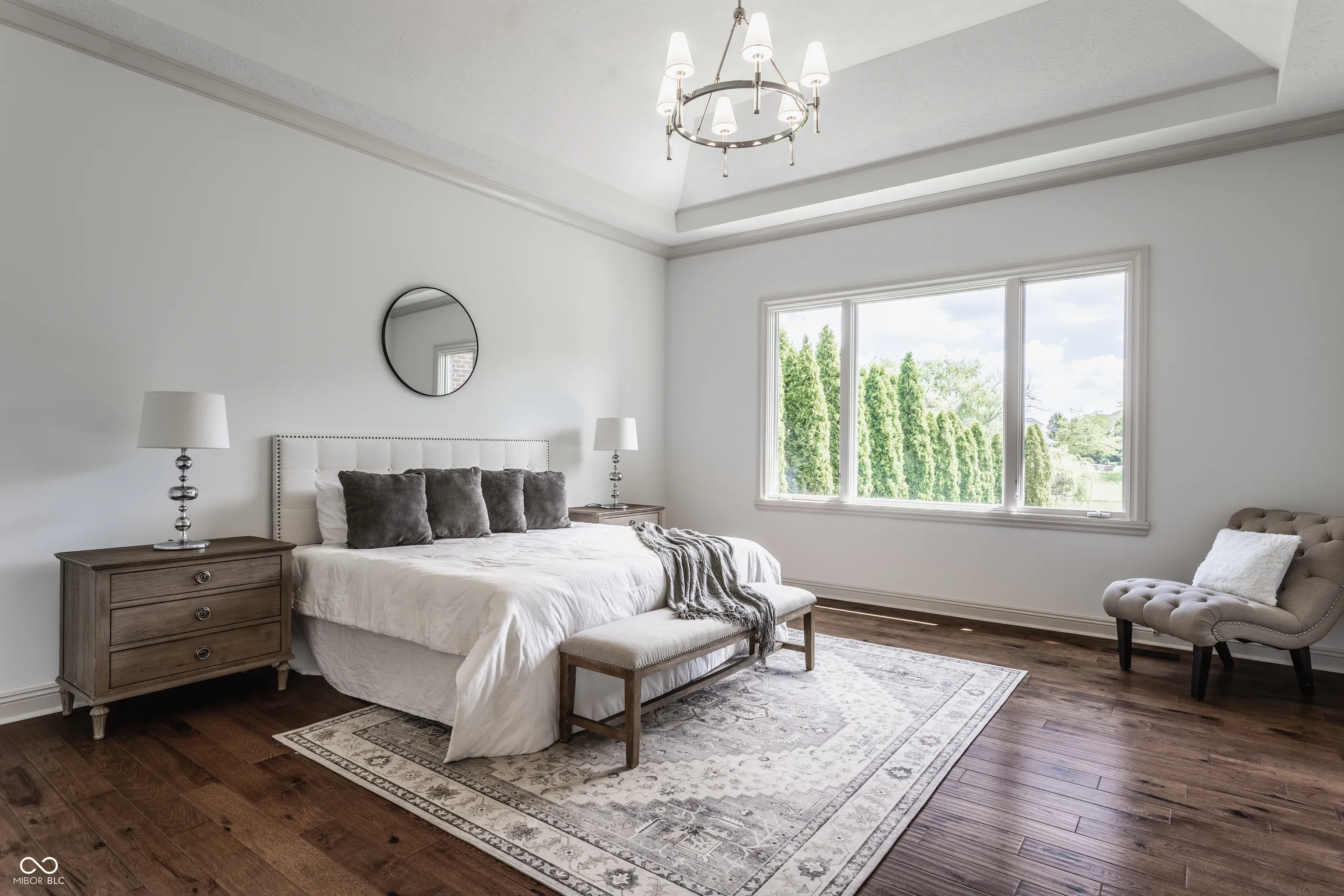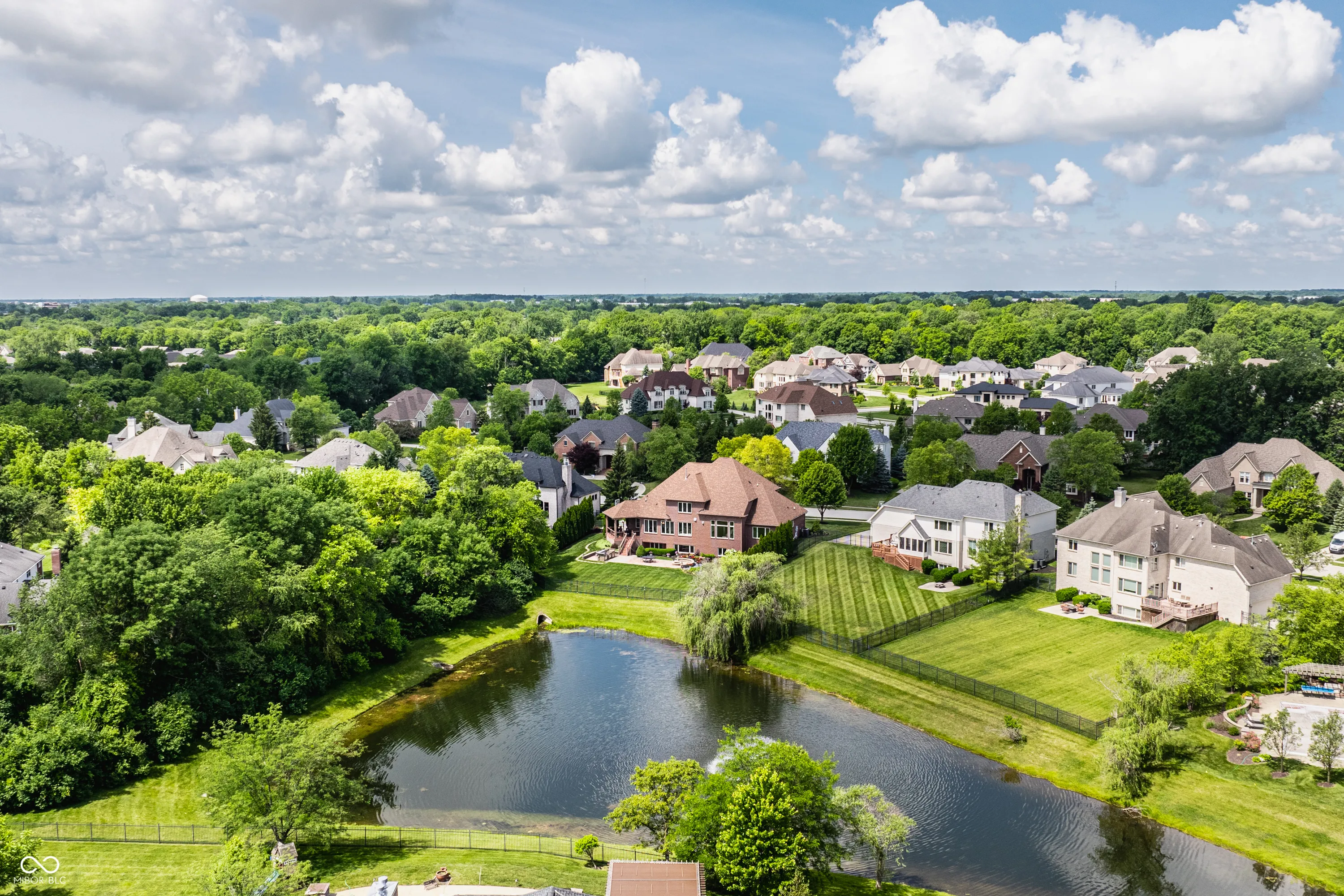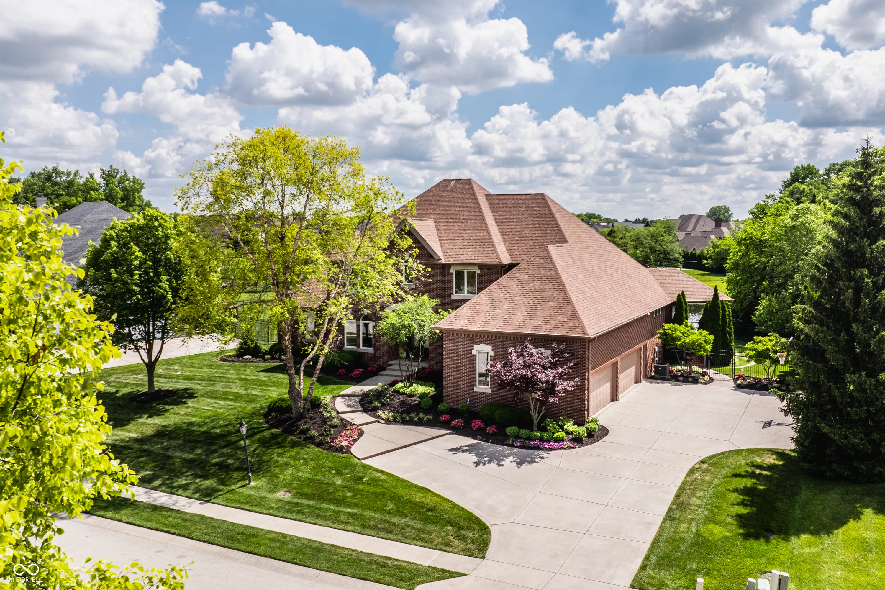 Nestled in Carmel’s prestigious Windsor Grove, this luxury home epitomizes elegance and convenience. Flooded with natural light and offering picturesque views of the private, lushly landscaped backyard and pond, the interior boasts high-end finishes, an open floor plan, and fabulous covered porch with new composite decking. The interior has undergone numerous updates, showcasing high-end custom finishes, top-quality countertops, and exquisite hardwood flooring. The open floor plan effortlessly connects the main living areas, creating an inviting space for both relaxation and entertainment. At the heart of the home lies the beautifully updated kitchen, equipped with stainless steel appliances and a sprawling island that overlooks the family room. The main level also boasts a serene primary suite, soaring great room with panoramic views of the backyard, and a den/study. Upstairs, you’ll discover three impressive bedrooms, two of which feature cozy sitting rooms. The lower level is a haven for leisure and entertainment, featuring luxury porcelain floor tiles throughout. Here, you’ll find a recreational wet bar, a guest bedroom, a home theater room, exercise room with abundant storage and plenty of room to grow, and convenient walkout access to the patio, outdoor grilling center and firepit. The home also boasts a 4-car garage, Control 4 home automation, and fenced backyard.