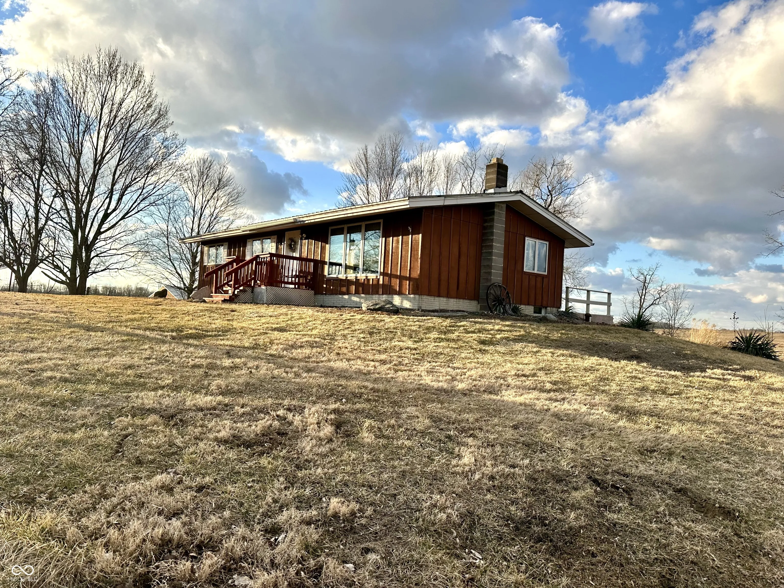 One owner home that sits atop a small hillcrest and overlooks farm ground for as far as the eye can see. True country living with this 3 bedroom, 1 1/2 bath home. A spacious kitchen/dining area and living room complete the main level. A full basement w/poured molded concrete walls is divided into 4 rooms-2 storage rooms, laundry, and a rec room. 30×40 pole barn has 2 sliding doors and is complete with a concrete floor, electricity, & loft storage. Seller welcomes inspections, but prefers to sell as is and wants to leave the few remaining contents in home & barn.