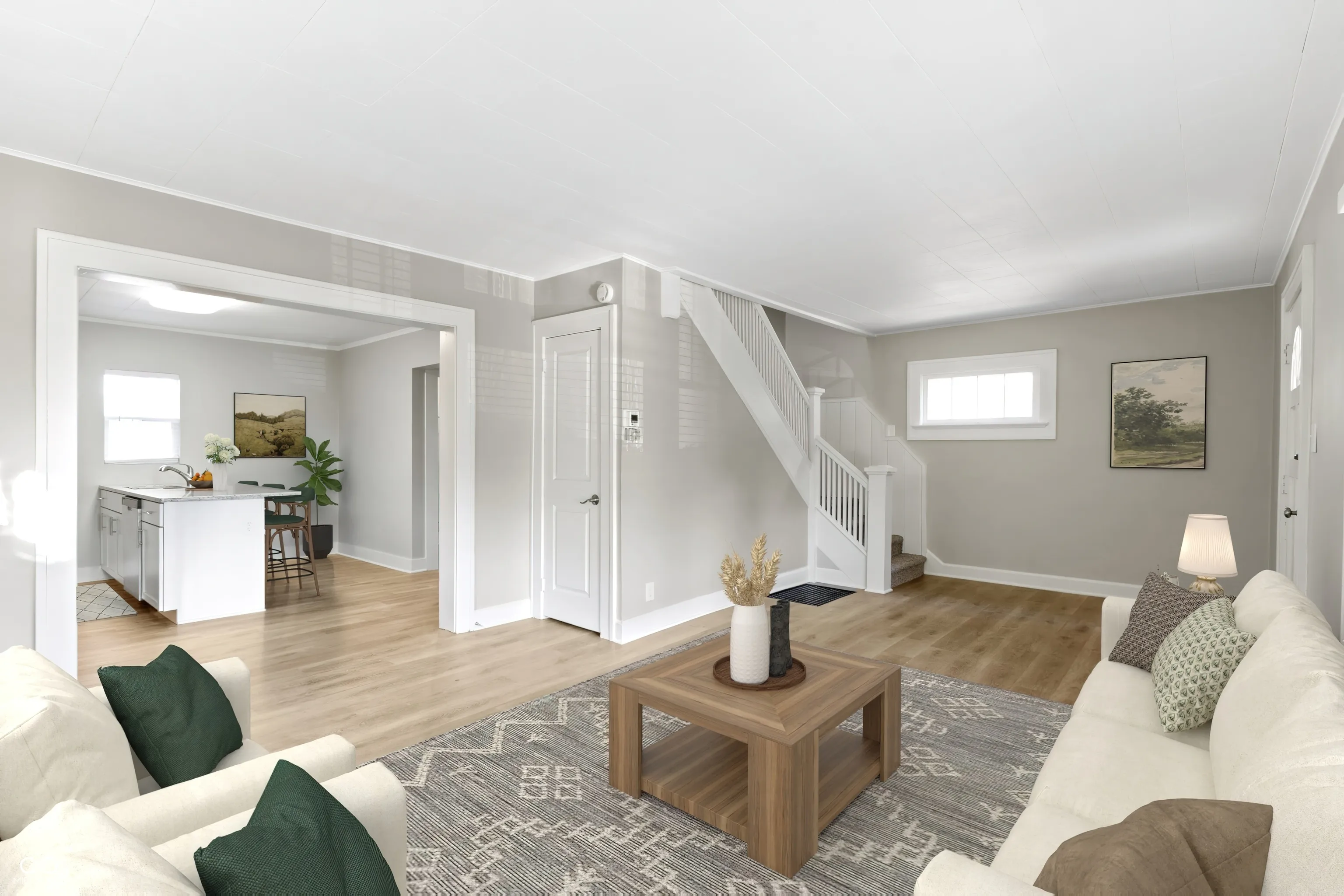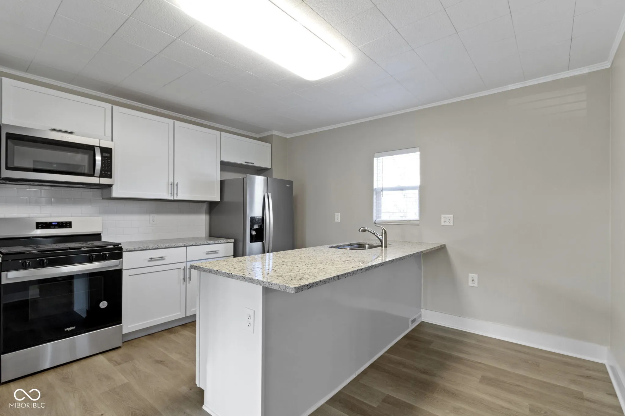 Desirable location of Emerson Heights with tree lined and landscaped median on Bancroft! Move in ready, completely remodeled 2 bedrooms, 2 bath home! Charming covered front porch greets you upon arrival. Open the door to BRAND NEW finishes such as Luxury Vinyl Plank flooring extending throughout the first floor, freshly painted throughout. Generous sized greatroom opens to the kitchen and dining space. Kitchen features NEW white cabinets, with plenty of storage, Quartz Counters, Stainless Steel Appliances, and complete with an expansive breakfast bar for more prep space! Located off the kitchen is the laundry/mudroom for convenience. Full bath with new vanity and fixtures on the main floor completes the space! Upstairs: Two generous sized bedrooms with walk in closets and another full bath! Brand NEW Carpet! Basement that’s great for storage! Step outside into your fully fenced backyard, just waiting for you to host your guests this spring! Close to shopping and Dining, Ellenberger Park for recreation!