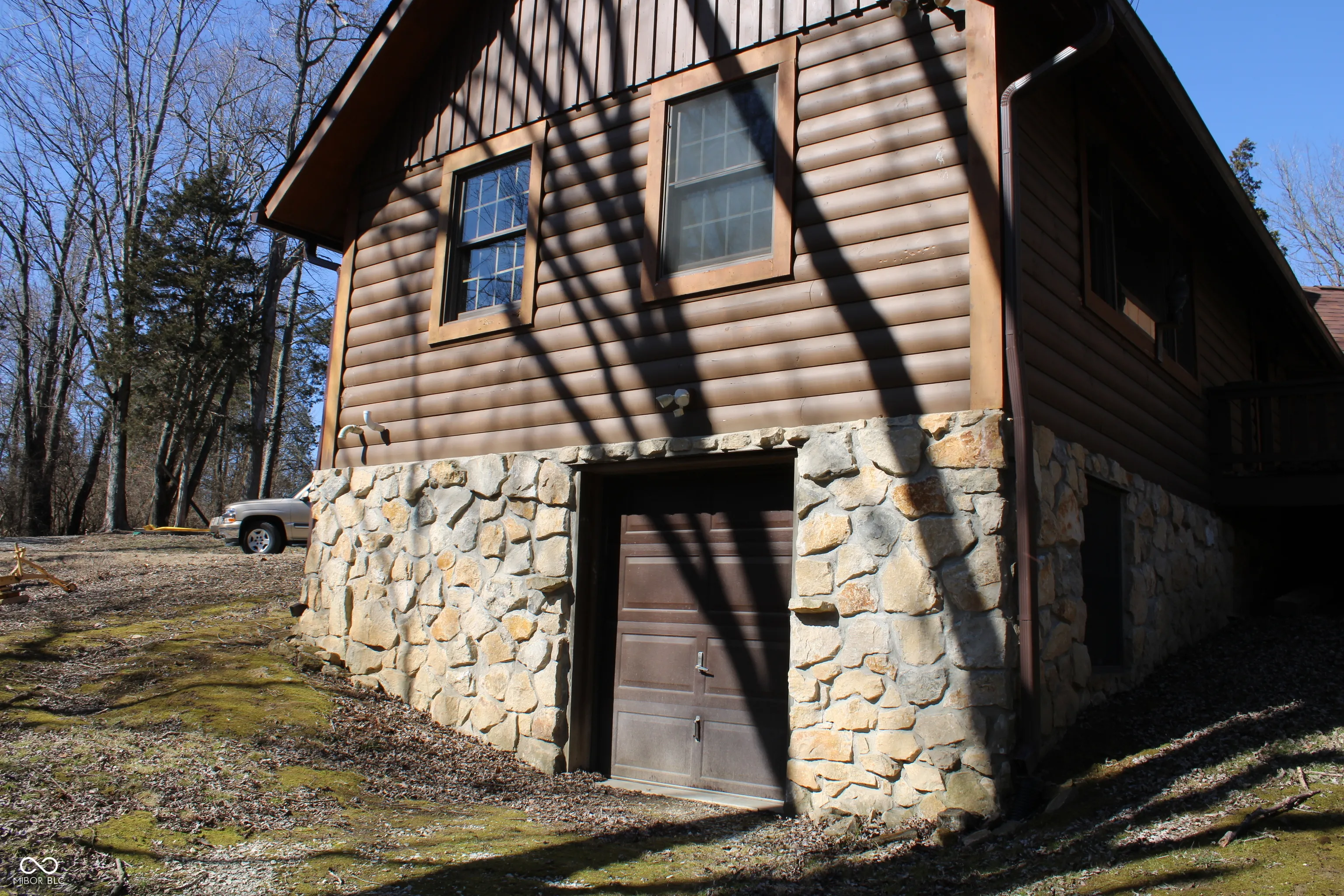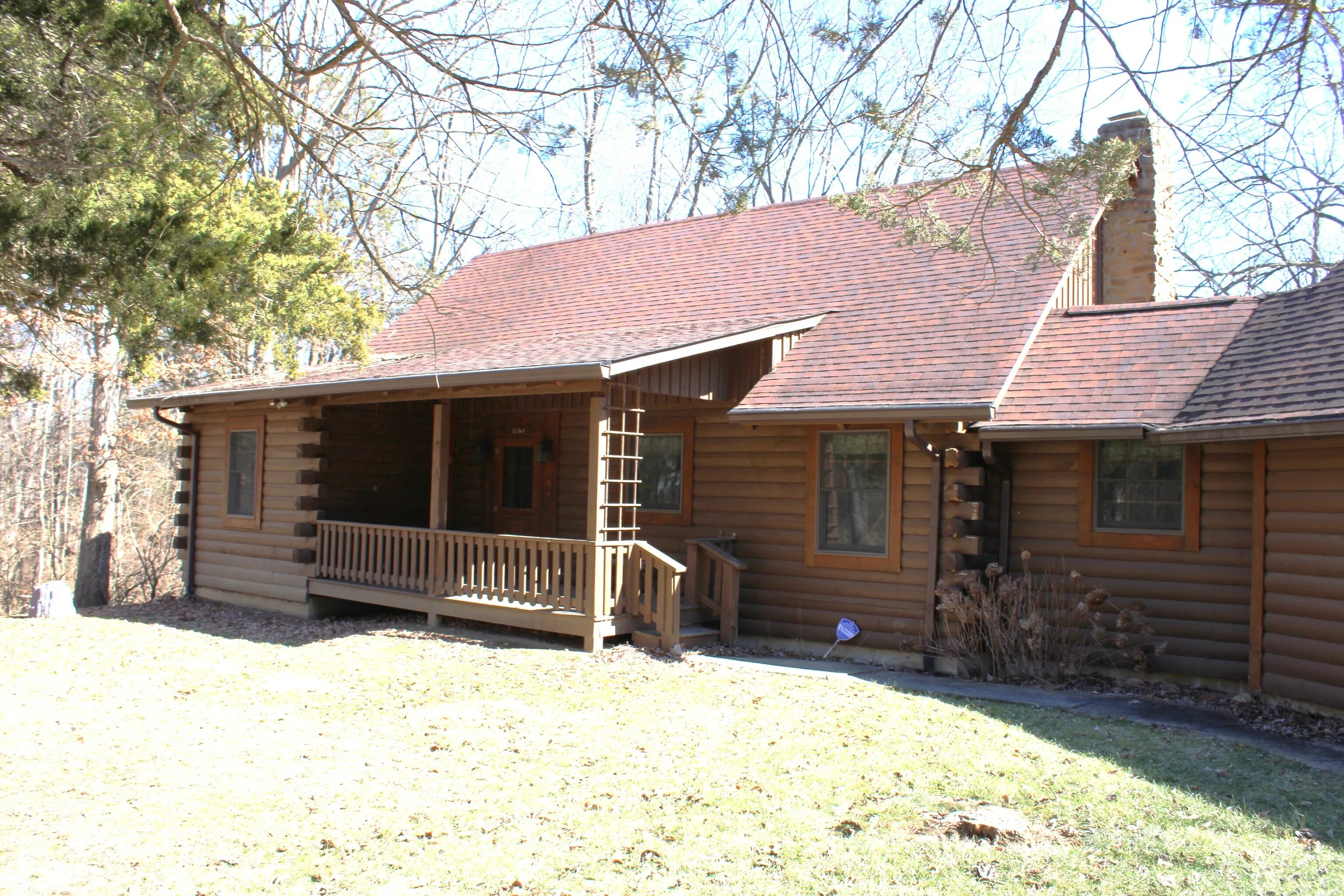A fantastic log home at Heritage Lake on 2 wooded & private lots with a water view! So many possibilities with this home…currently a 2 bedroom, but the loft could be made into a 3rd bedroom and the bonus/game room could be made into an awesome master bedroom suite! Don’t forget the walk-out basement that is currently unfinished that could be made into a rec-room + bedroom, etc! This home has awesome views from the covered front and back porches/decks. Don’t forget about the 2 car attached garage plus the basement storage room for your lawn & garden equipment. Home is currently wired for a whole house generator. This home is on Washington Ct. which is a cul-de-sac. Make this home yours today!