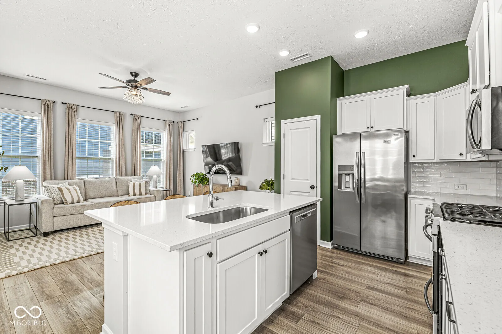 Looking for a new construction home that is within walking distance to downtown Carmel? This stunning David Weekly home could be it for you! This home is the Kinzer floor plan that was built in 2023. As you walk in the main level welcomes you with an open and inviting floor plan, featuring a spacious living room and dining area. Kitchen offers a large island with a gas stove and quartz countertops and a nice back splash. Upstairs, you will find the primary suite w/ tray ceilings and an ensuite bathroom with double sinks and a nicely tiled walk-in shower. Master walk-in closet is custom with plenty of storage. Two nicely size bedrooms, a full bath, and a convenient laundry area. Loft space upstairs that could be used for many things. Two car garage w/ epoxy flooring that is accessible through alley. Relax in the fully fenced in backyard. Additionally homeowner has added a water softener. Enjoy the pool and pool house that is within walking distance of this home. Minutes from Carmel’s Midtown, Arts District, Palladium, Monon Trail, Farmer’s Market. This location has it all!
