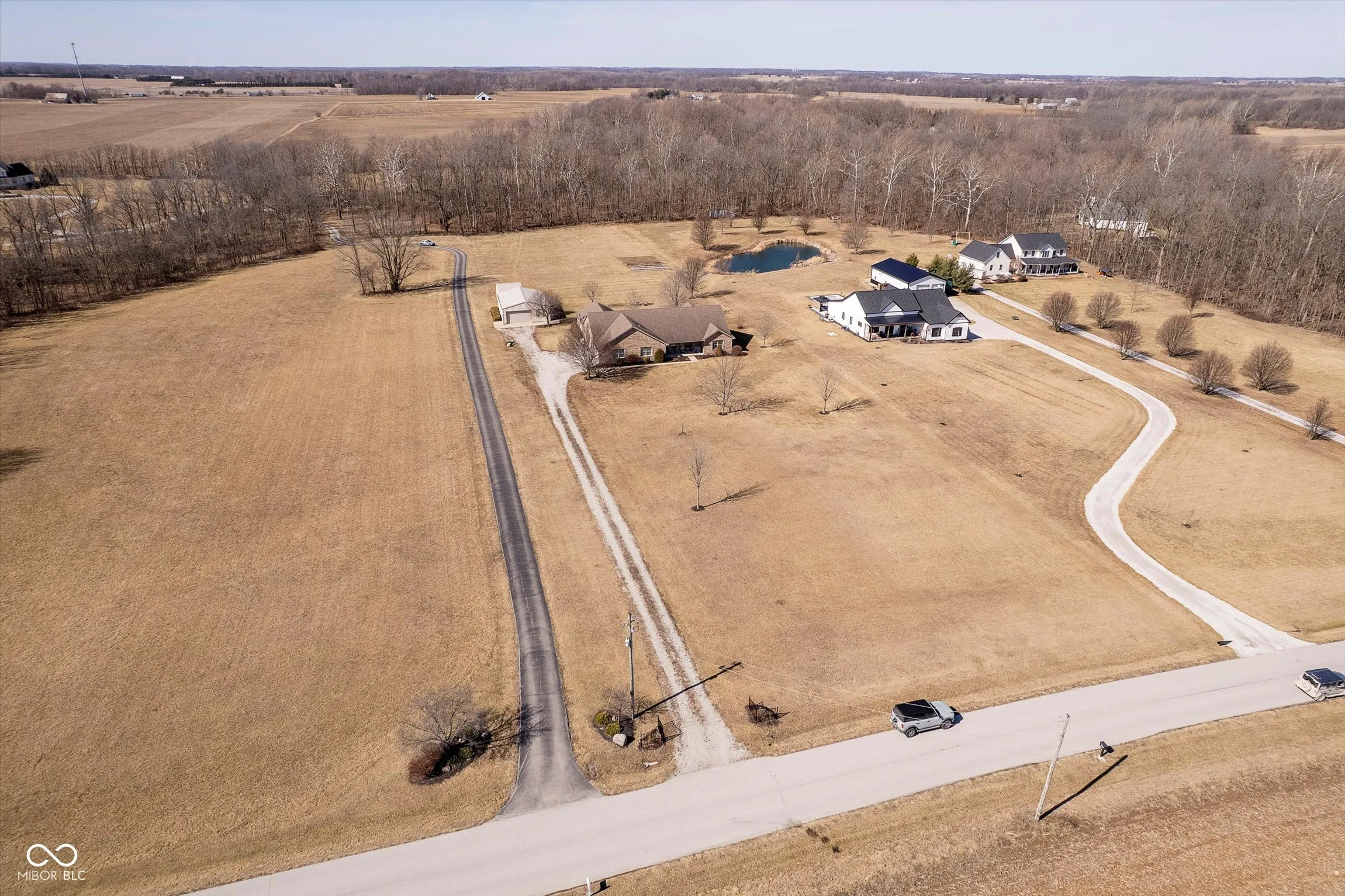 This well-maintained brick ranch home is nestled on nearly 5 acres of beautiful land, offering a peaceful and private setting. The home has 4 bedrooms and 3 full baths, with a deck and pergola in the rear, overlooking a pond and open grass. The back is surrounded by mature woods, with a serene creek running through, enhancing the natural beauty and tranquility of the property. The property features two barns, including one heated barn with an office and loft space, 30’x40′, with gas and electric. The second barn is 24’x16′, great for storage! Western Boone schools, just a short distance away. The home also has a 35 year shingled roof and dual heating and cooling systems, with a whole house generator! This property is ideal for those seeking space, comfort, and a connection to nature.